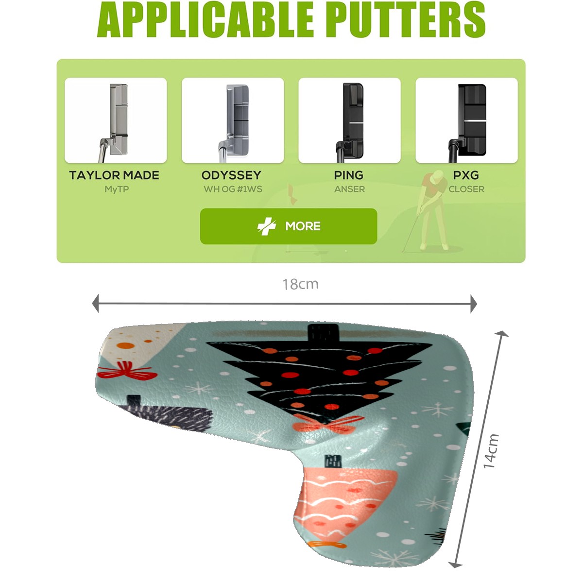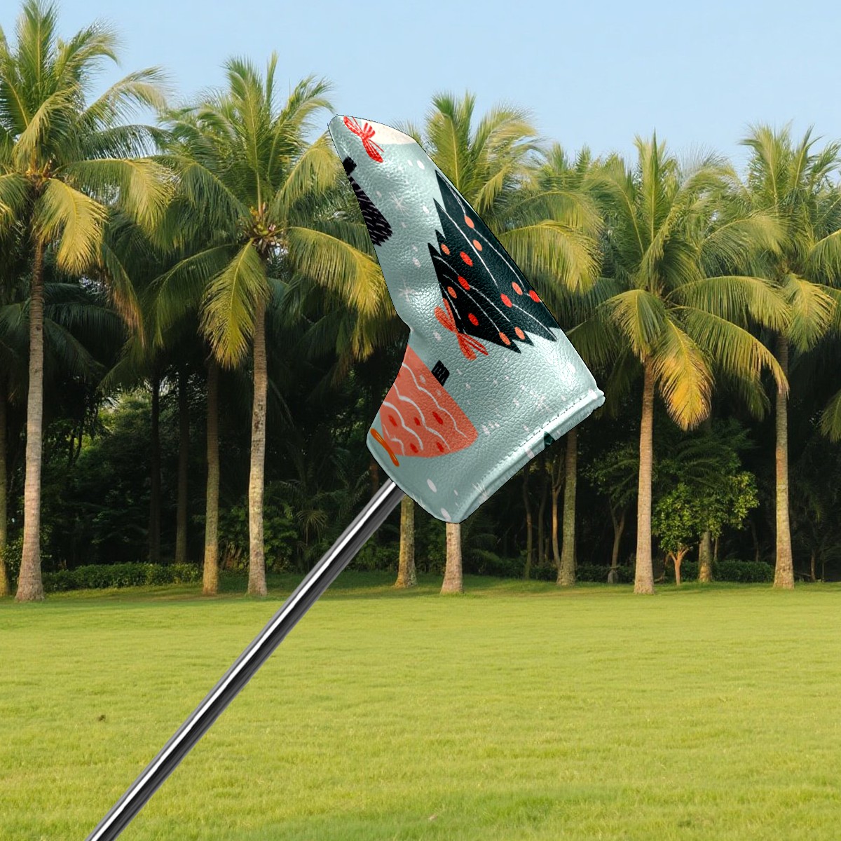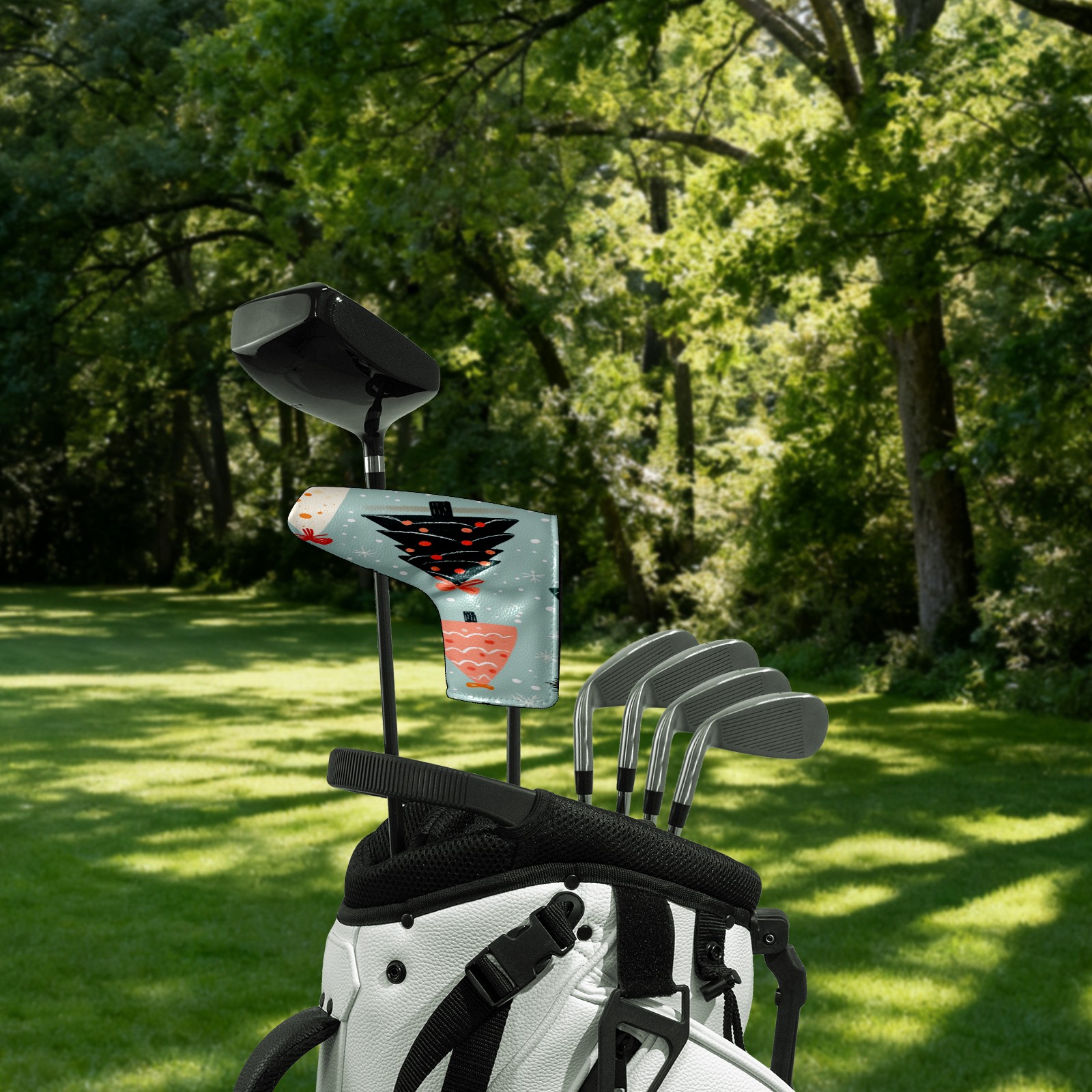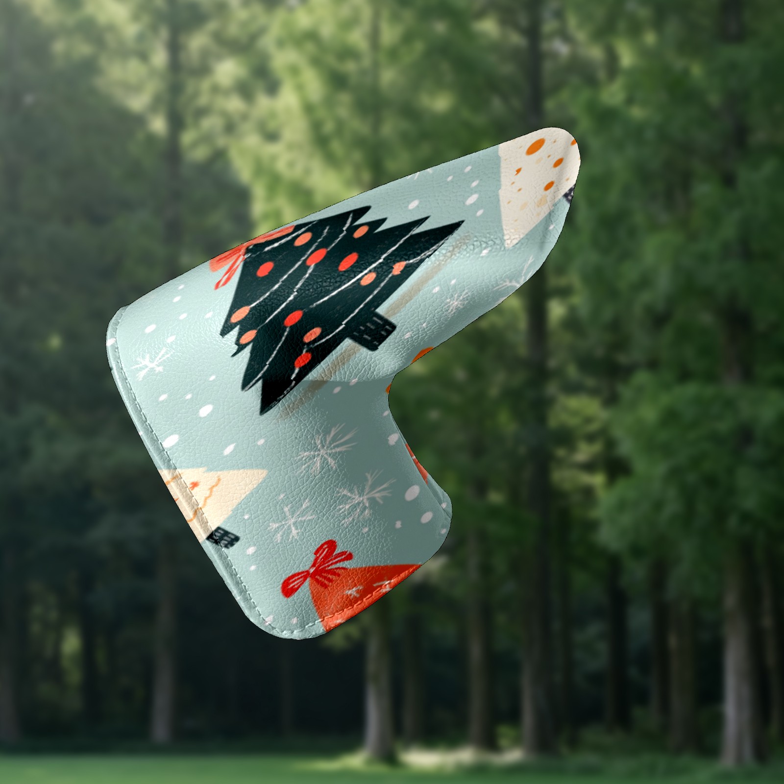 Lightweight Golf Putter Covers, Mid Mallet Putter Headcovers PU Leather Golf Club Covers for Man Women Golfer, Form Fitting Design Cute Christmas Tree Pattern