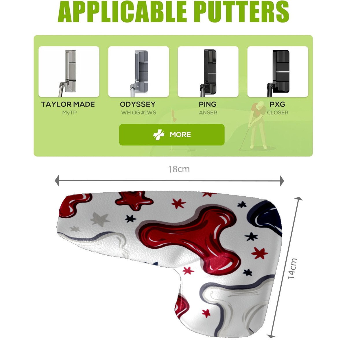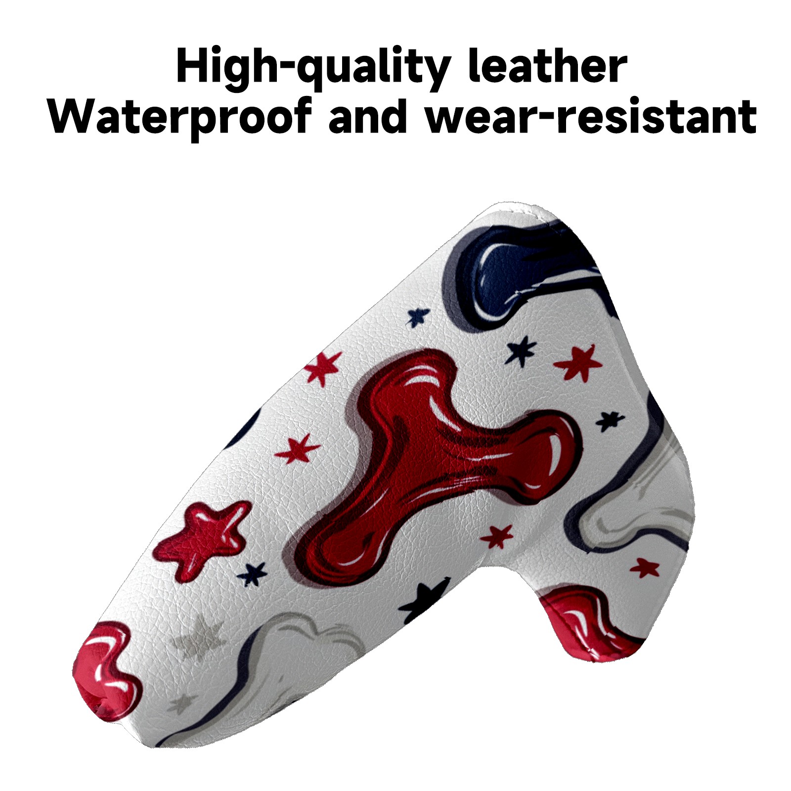 Lightweight Golf Putter Covers, Mid Mallet Putter Headcovers PU Leather Golf Club Covers for Man Women Golfer, Form Fitting Design Bone Star Pattern5