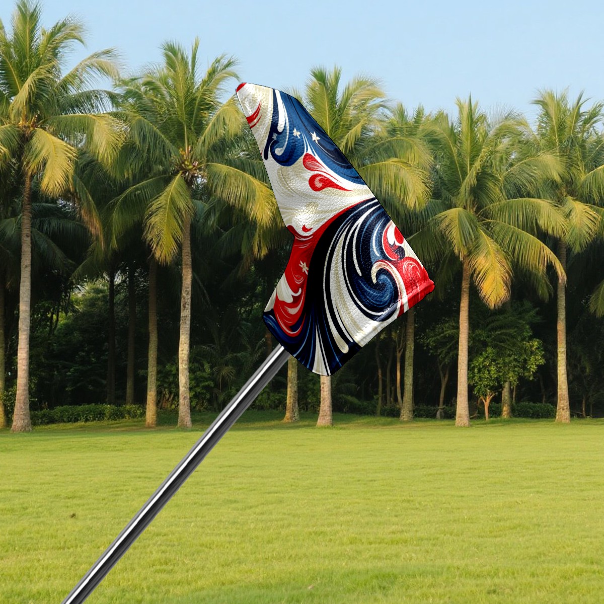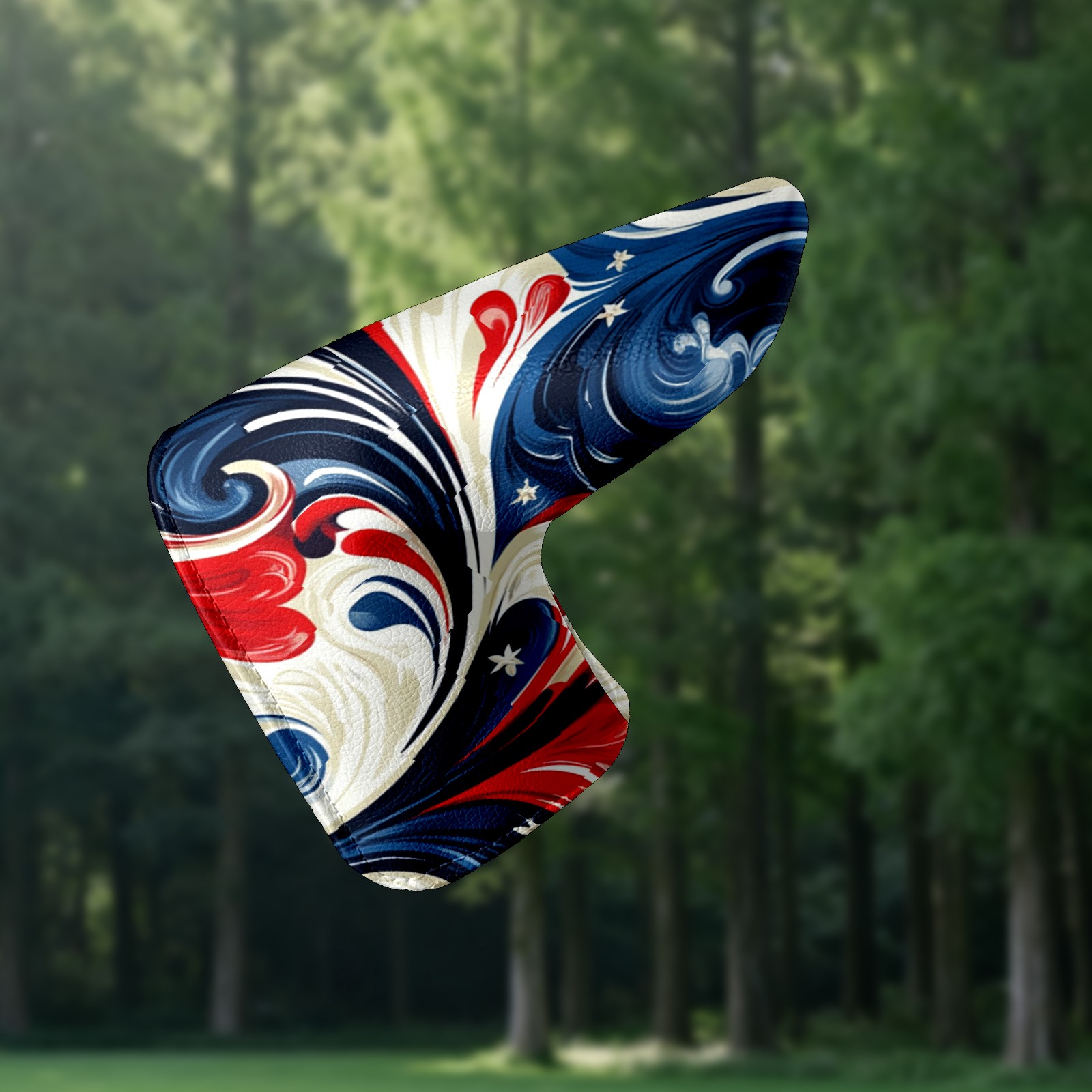 Lightweight Golf Putter Covers, Mid Mallet Putter Headcovers PU Leather Golf Club Covers for Man Women Golfer, Form Fitting Design Red Blue Swirling Pattern