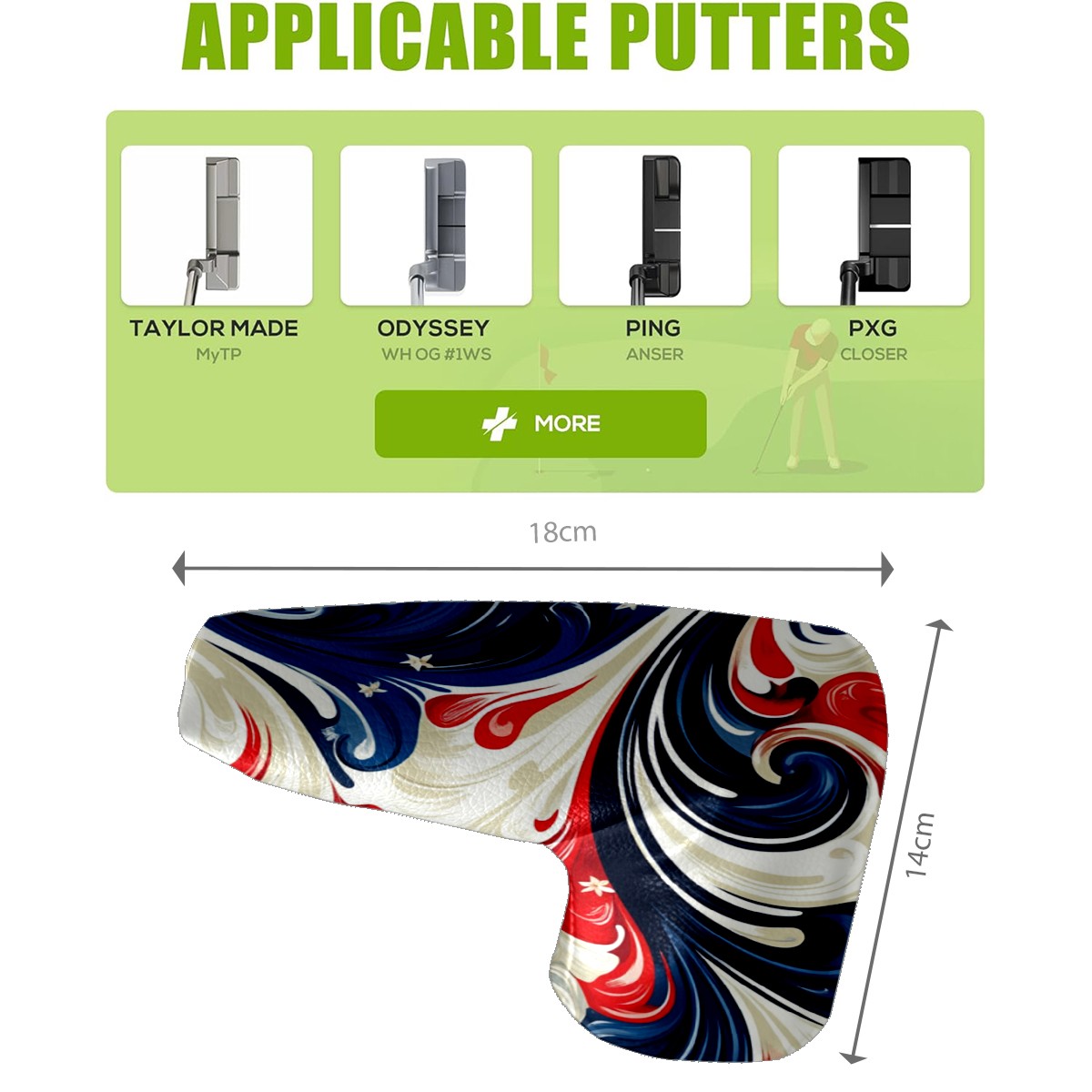 • <p>In the world of golfing equipment, the details often show professionalism and care. We carefully present this putter head protector as a classic golf accessory that will bring a new upgrade to your golf experience. It is a fusion of precision and fashion. The exterior is made of high-quality leather with a tough and textured texture that can effectively resist wear and tear and scratches from daily use. The soft inner lining wraps a gentle protective film around the putter head, avoiding minor scratches and damages caused by collisions and prolonging the life of the putter. The unique closure design is the finishing touch, super strong adhesive force, no matter how you walk on the course, bumps, it is as stable as a mountain, will not easily fall off. It is very convenient to take off the putter cover and put it into the stroke with just one pull, so that every operation is smooth and natural. It is the crystallization of retro and practical. With a strong retro flavor, it pays tribute to the classic tradition of golf. Its shape perfectly fits the unique shape of a mallet putter, providing all-around wrap-around protection for the putter head. The design of the mallet putter head protector is inspired by the golden age of golf, and the retro pattern and color combination make people feel as if they have traveled through time and space to experience the deep historical heritage of the game of golf. Whether on a traditional style golf course or a modern and fashionable course, it fits perfectly and adds a unique charm to your clubs.<br></p>