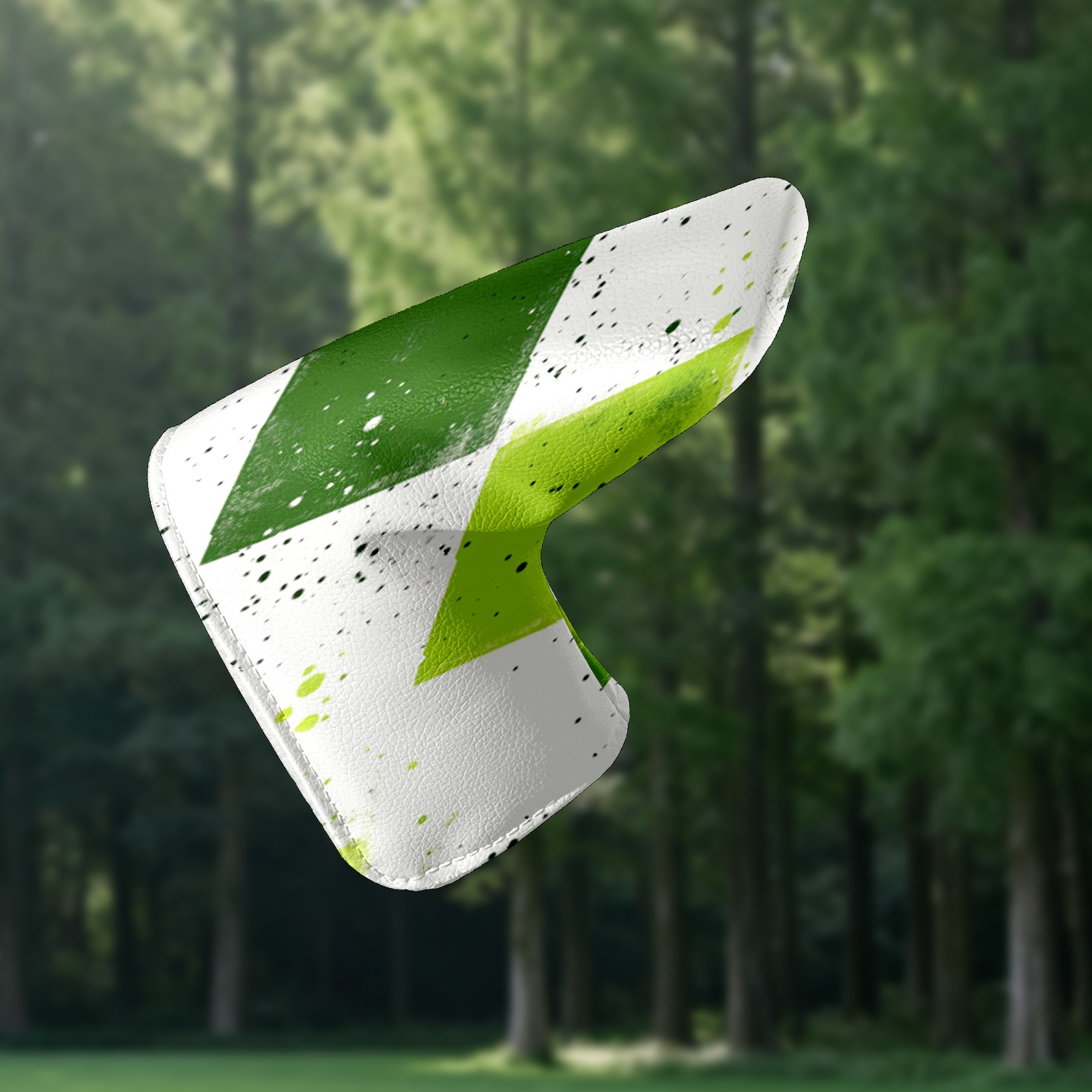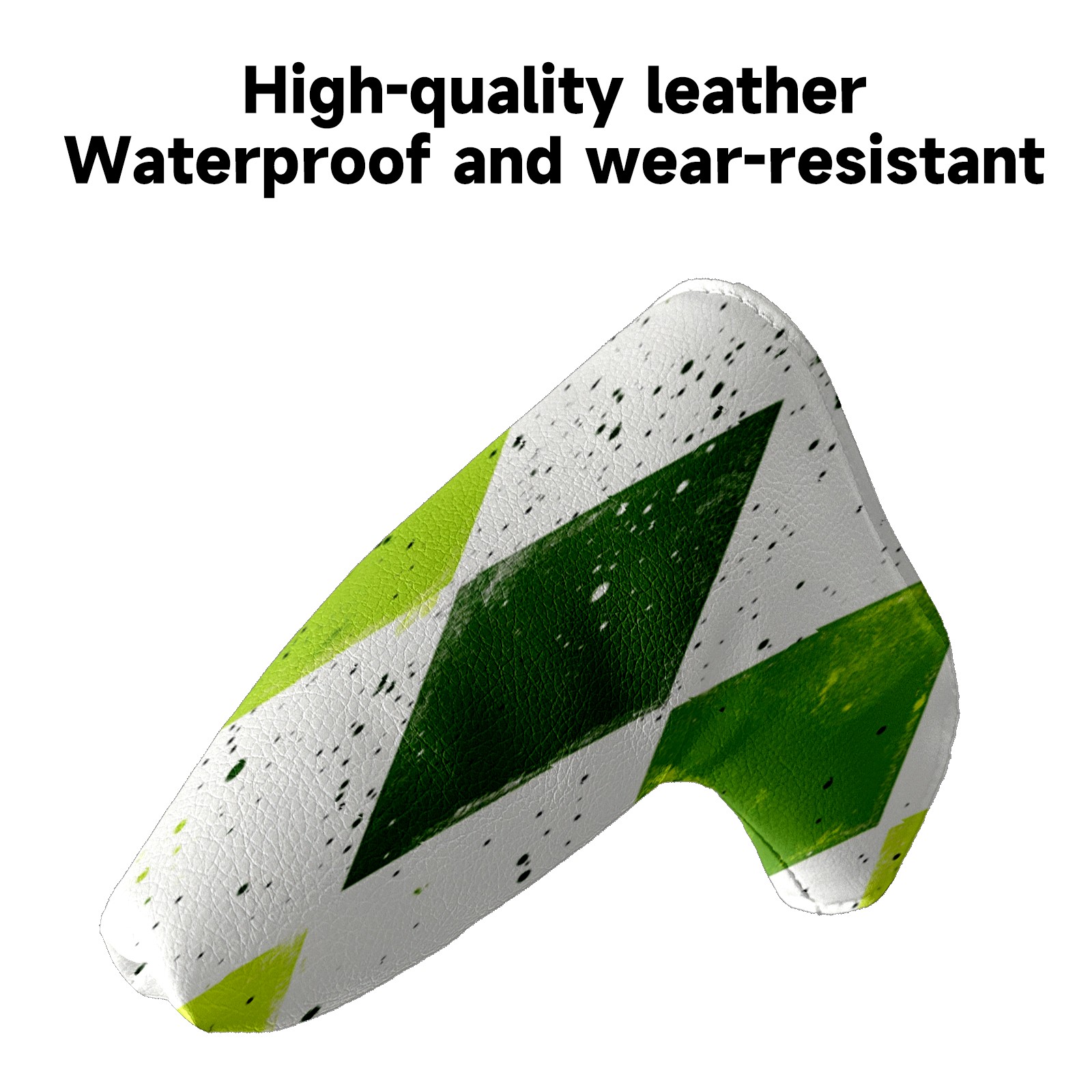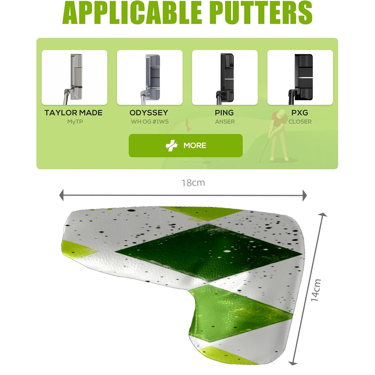 Lightweight Golf Putter Covers, Mid Mallet Putter Headcovers PU Leather Golf Club Covers for Man Women Golfer, Form Fitting Design Green Plaid Pattern