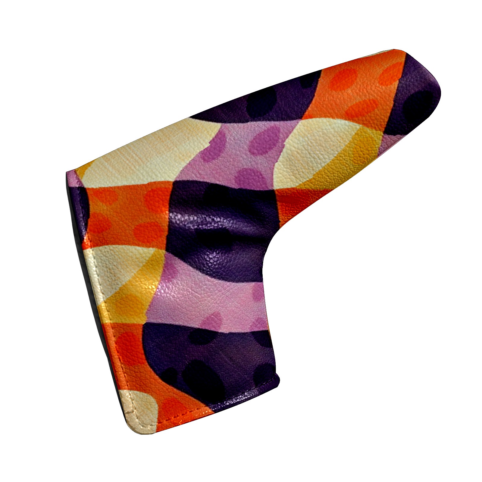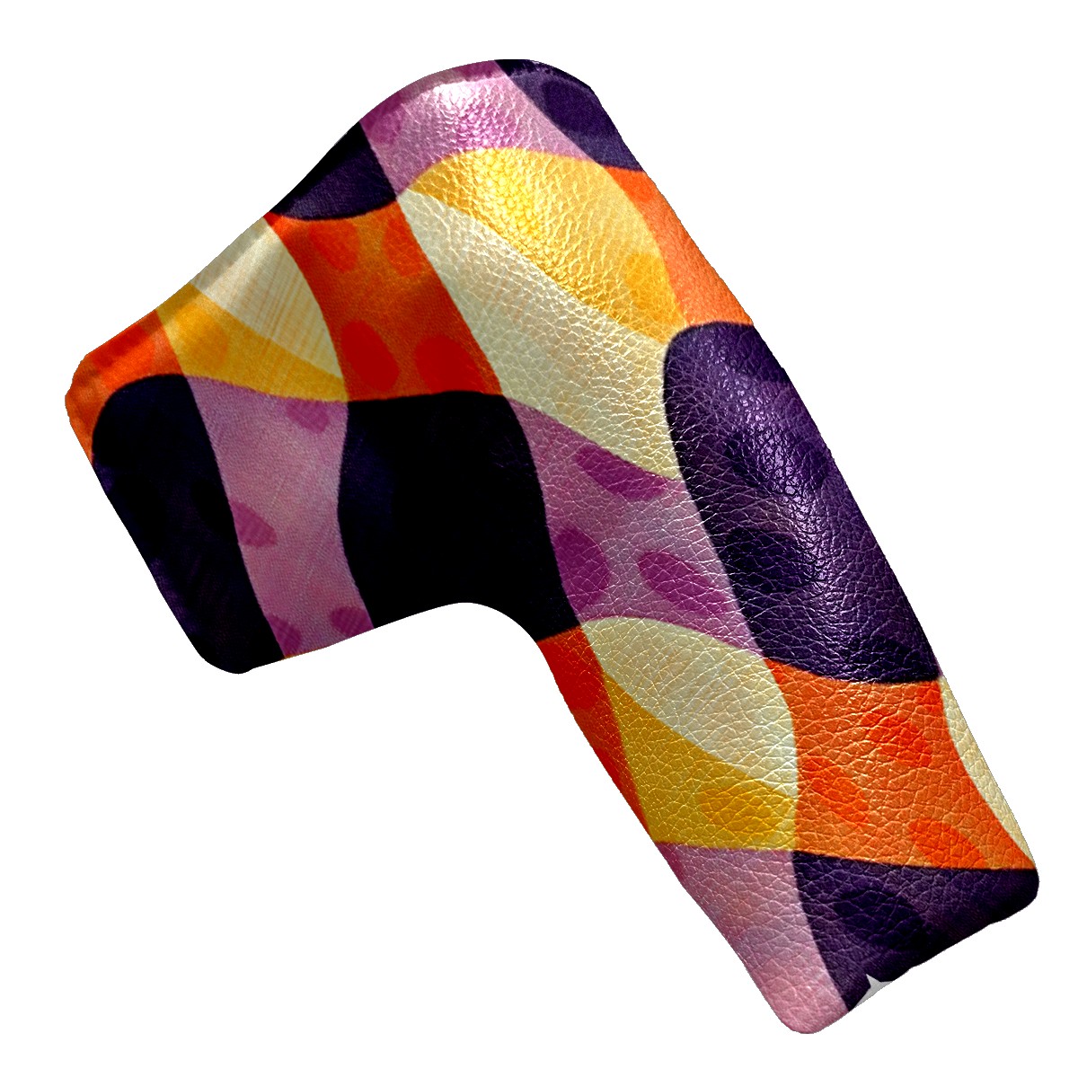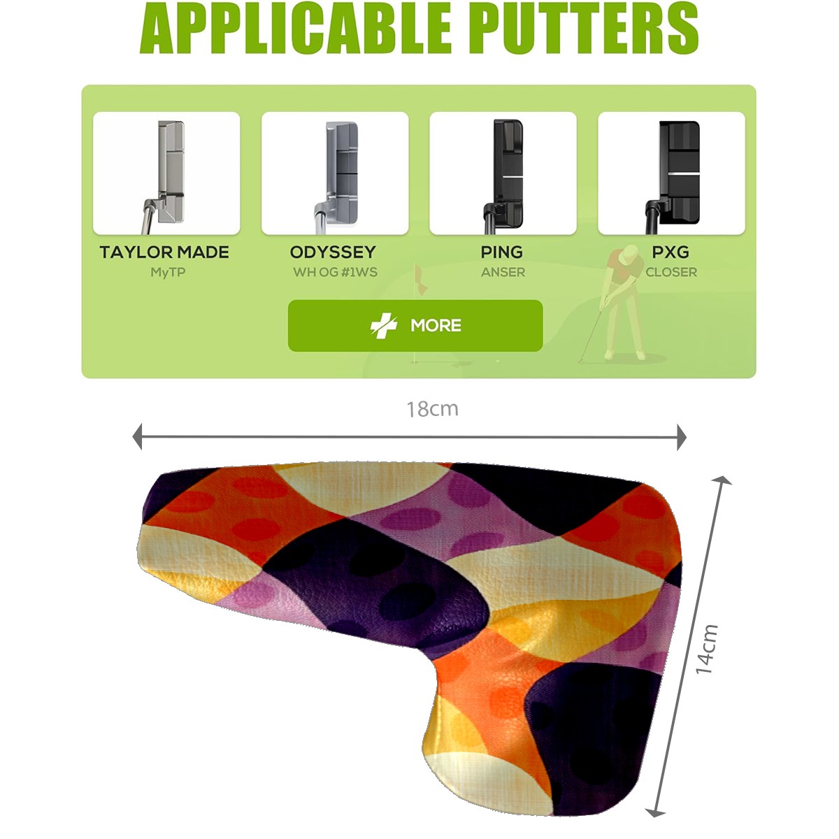 Lightweight Golf Putter Covers, Mid Mallet Putter Headcovers PU Leather Golf Club Covers for Man Women Golfer, Form Fitting Design Purple Swirling Pattern