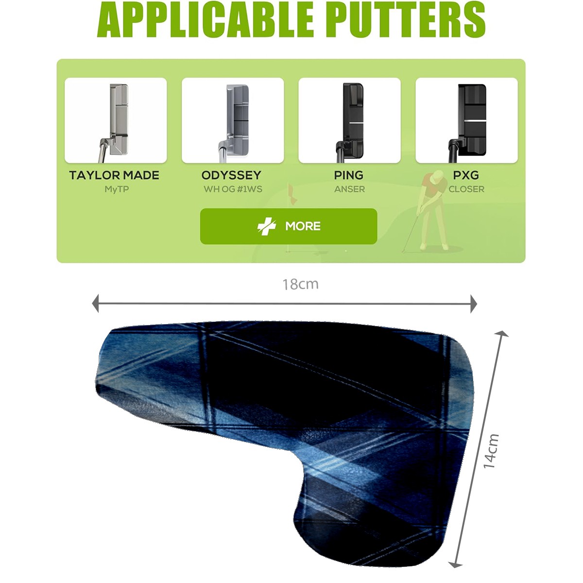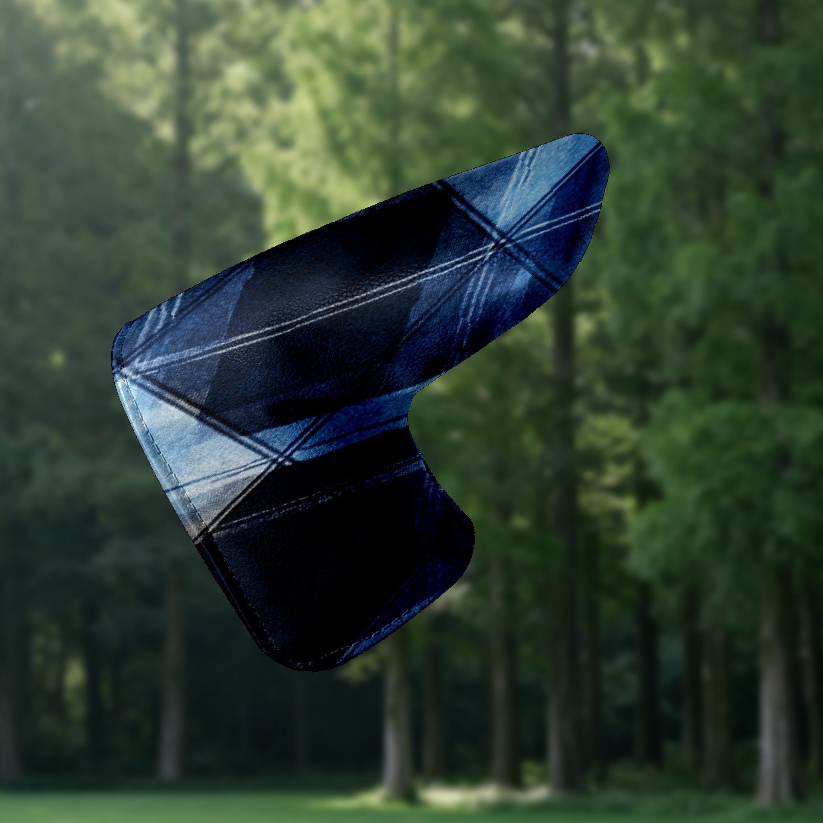 Lightweight Golf Putter Covers, Mid Mallet Putter Headcovers PU Leather Golf Club Covers for Man Women Golfer, Form Fitting Design Dark Blue Plaid Pattern