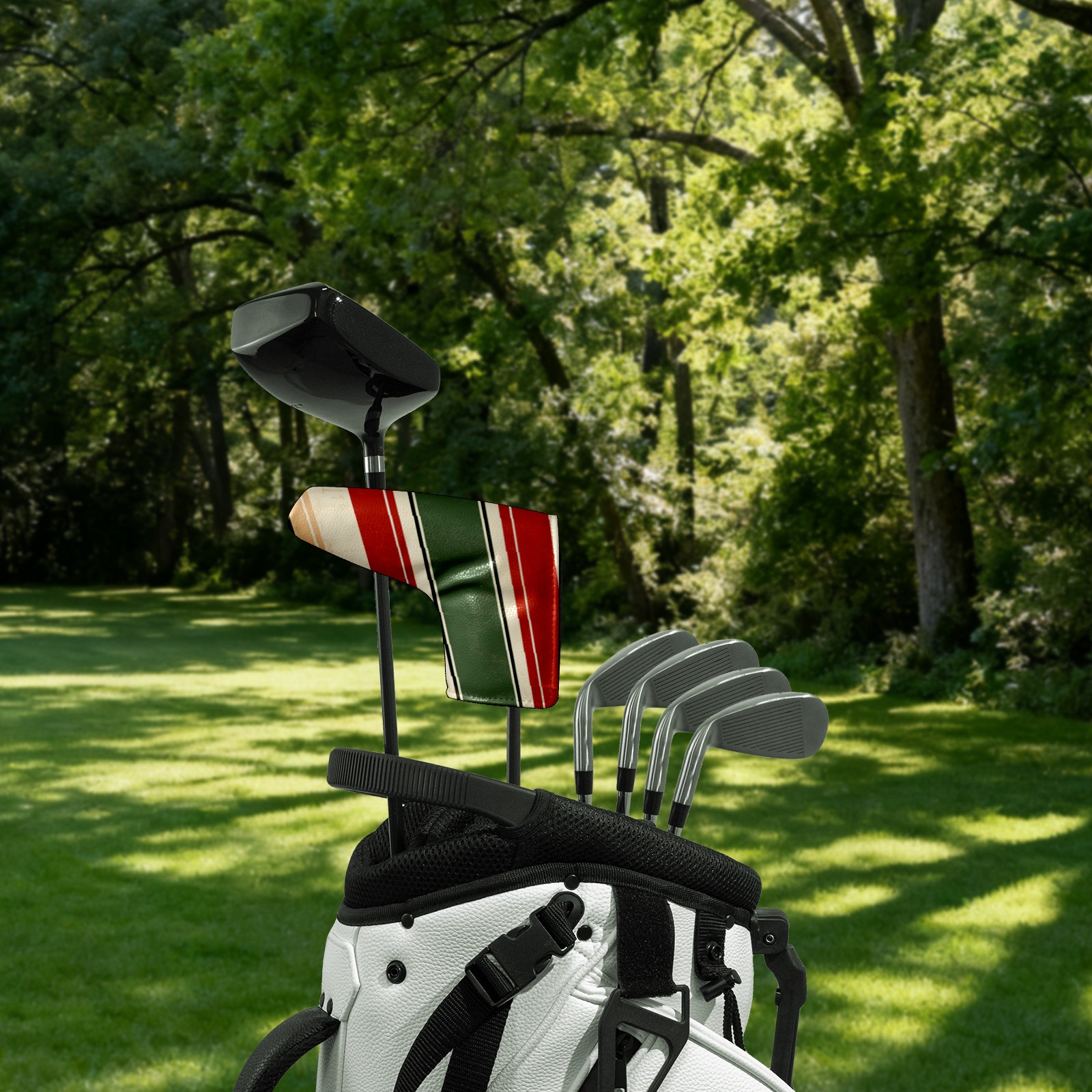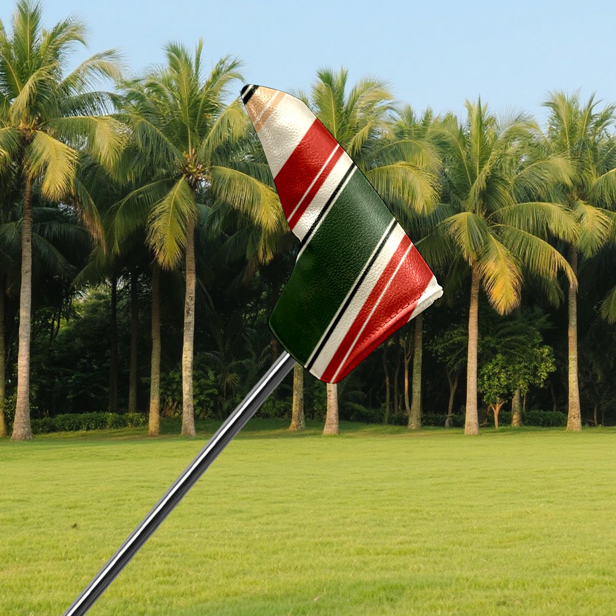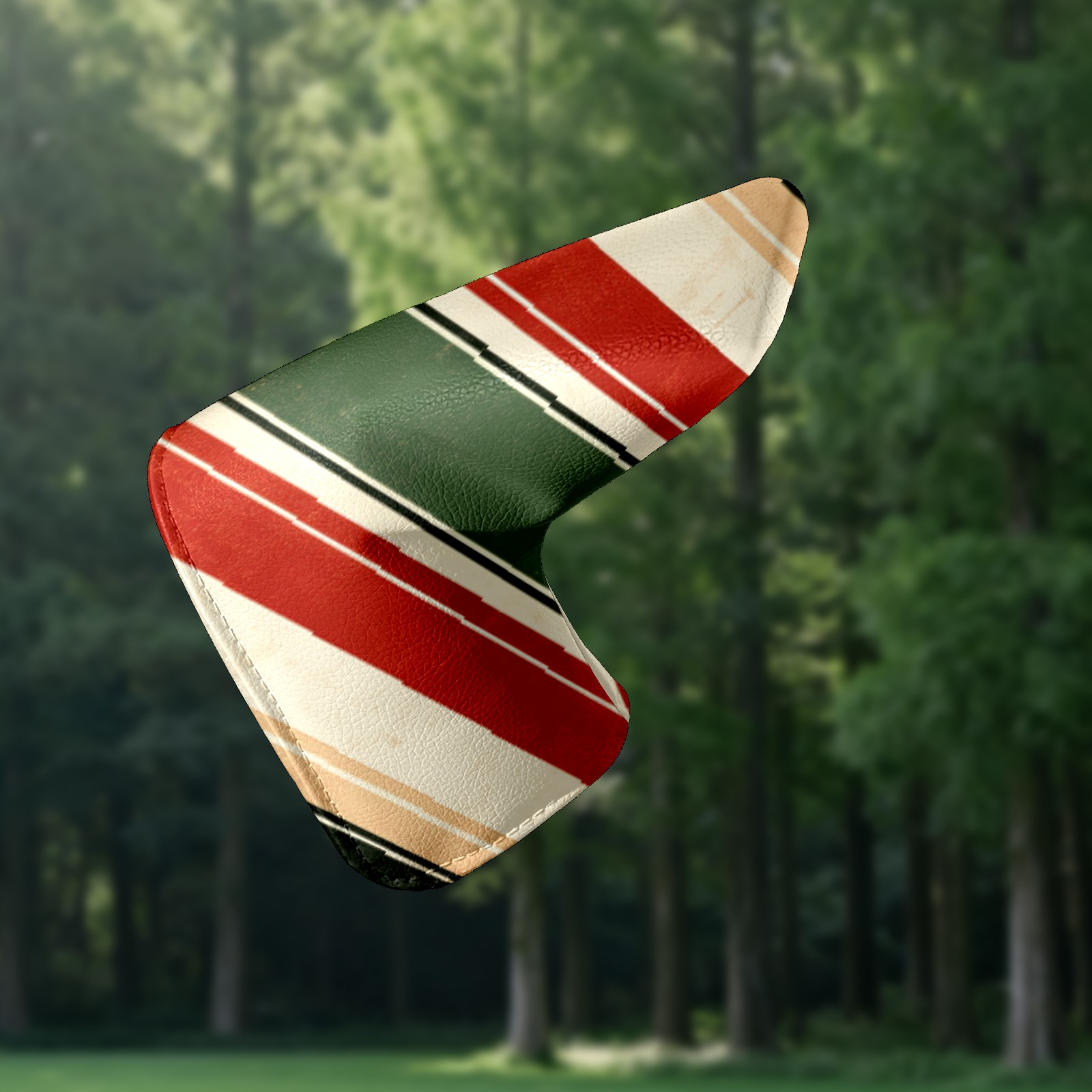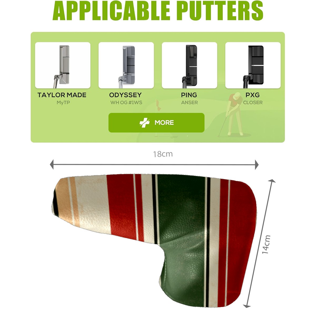 Lightweight Golf Putter Covers, Mid Mallet Putter Headcovers PU Leather Golf Club Covers for Man Women Golfer, Form Fitting Design Red Green Striped Pattern