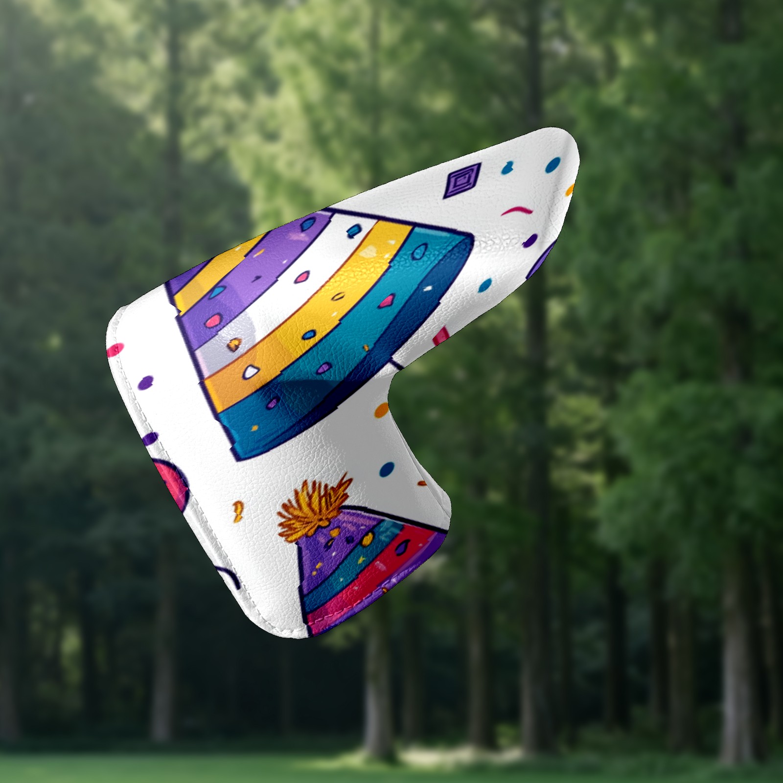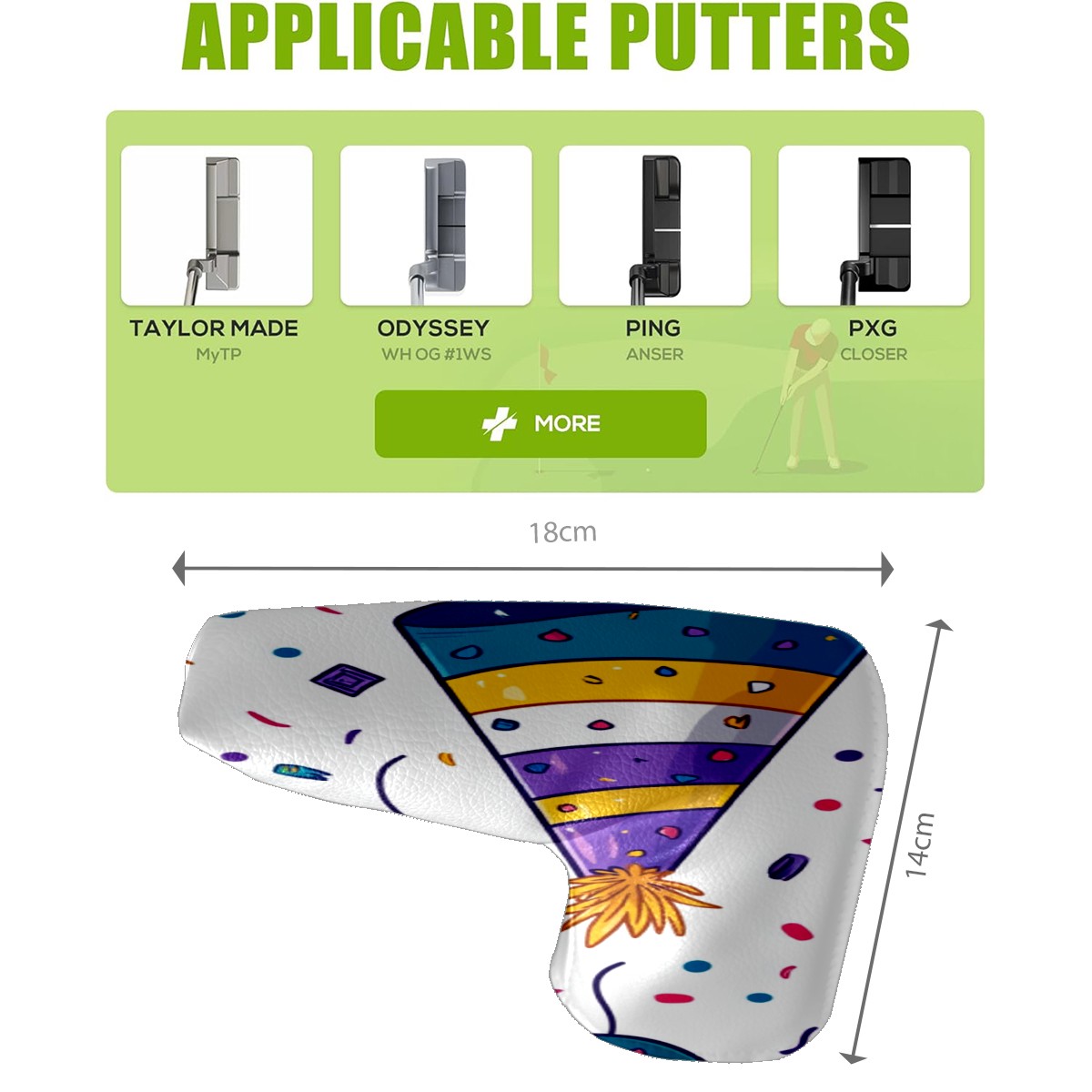 Lightweight Golf Putter Covers, Mid Mallet Putter Headcovers PU Leather Golf Club Covers for Man Women Golfer, Form Fitting Design Birthday Hat Pattern