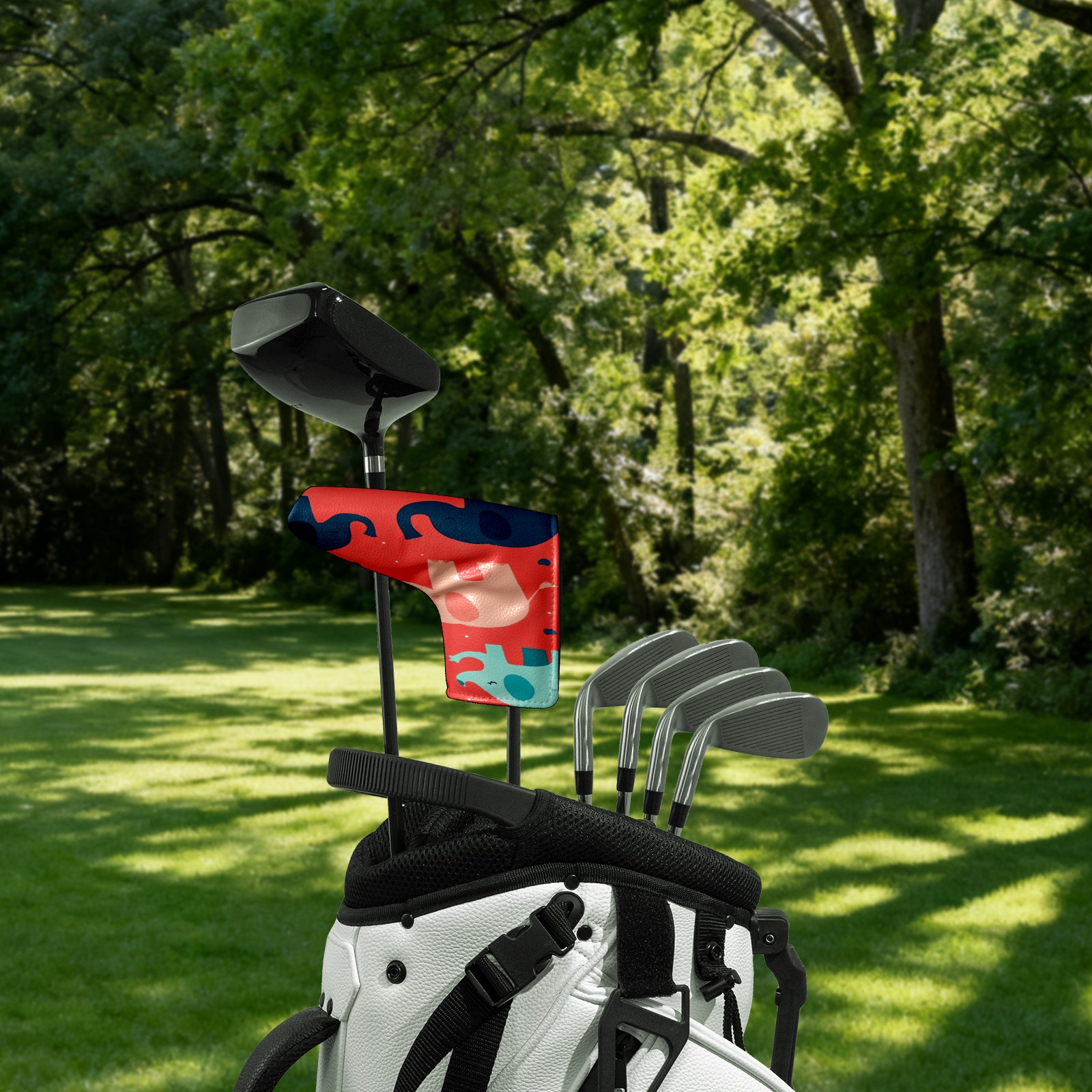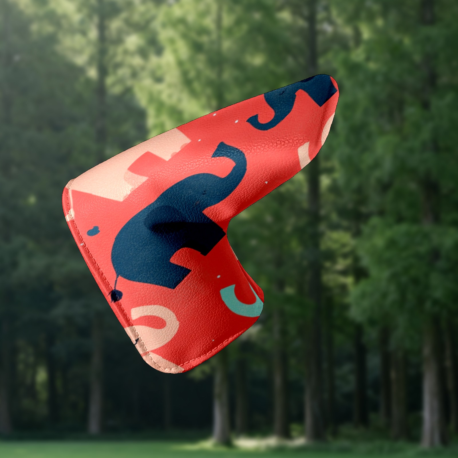 Lightweight Golf Putter Covers, Mid Mallet Putter Headcovers PU Leather Golf Club Covers for Man Women Golfer, Form Fitting Design Cartoon Elephant Pattern