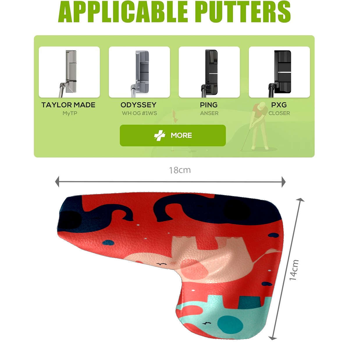 • <p>In the world of golfing equipment, the details often show professionalism and care. We carefully present this putter head protector as a classic golf accessory that will bring a new upgrade to your golf experience. It is a fusion of precision and fashion. The exterior is made of high-quality leather with a tough and textured texture that can effectively resist wear and tear and scratches from daily use. The soft inner lining wraps a gentle protective film around the putter head, avoiding minor scratches and damages caused by collisions and prolonging the life of the putter. The unique closure design is the finishing touch, super strong adhesive force, no matter how you walk on the course, bumps, it is as stable as a mountain, will not easily fall off. It is very convenient to take off the putter cover and put it into the stroke with just one pull, so that every operation is smooth and natural. It is the crystallization of retro and practical. With a strong retro flavor, it pays tribute to the classic tradition of golf. Its shape perfectly fits the unique shape of a mallet putter, providing all-around wrap-around protection for the putter head. The design of the mallet putter head protector is inspired by the golden age of golf, and the retro pattern and color combination make people feel as if they have traveled through time and space to experience the deep historical heritage of the game of golf. Whether on a traditional style golf course or a modern and fashionable course, it fits perfectly and adds a unique charm to your clubs.<br></p>