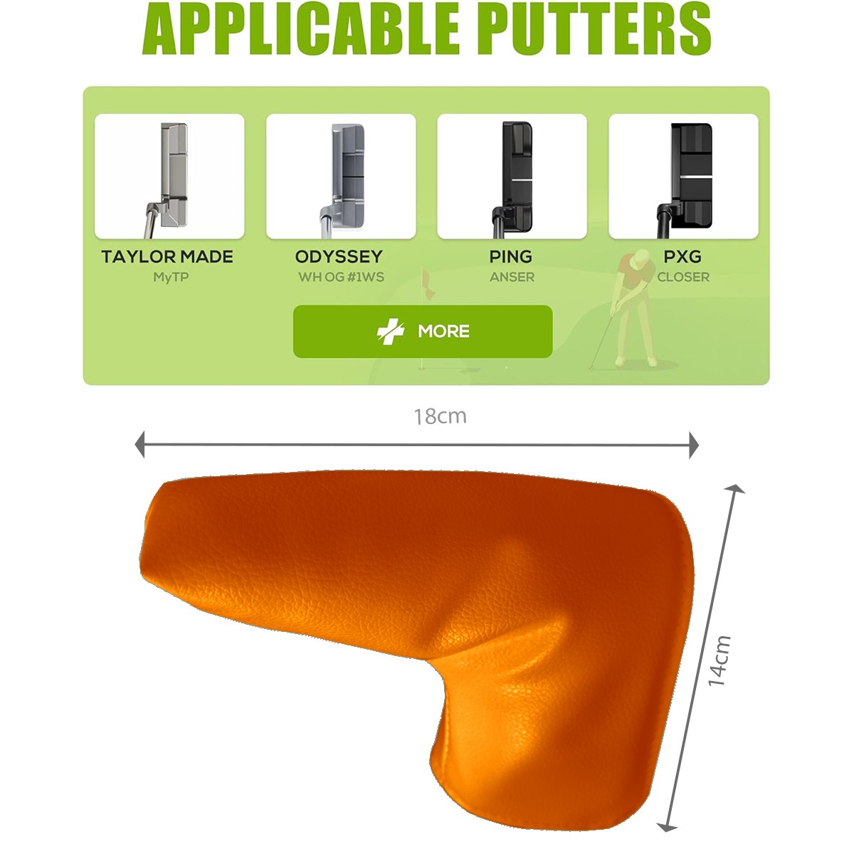 Lightweight Golf Putter Covers, Mid Mallet Putter Headcovers PU Leather Golf Club Covers for Man Women Golfer, Form Fitting Design Orange2