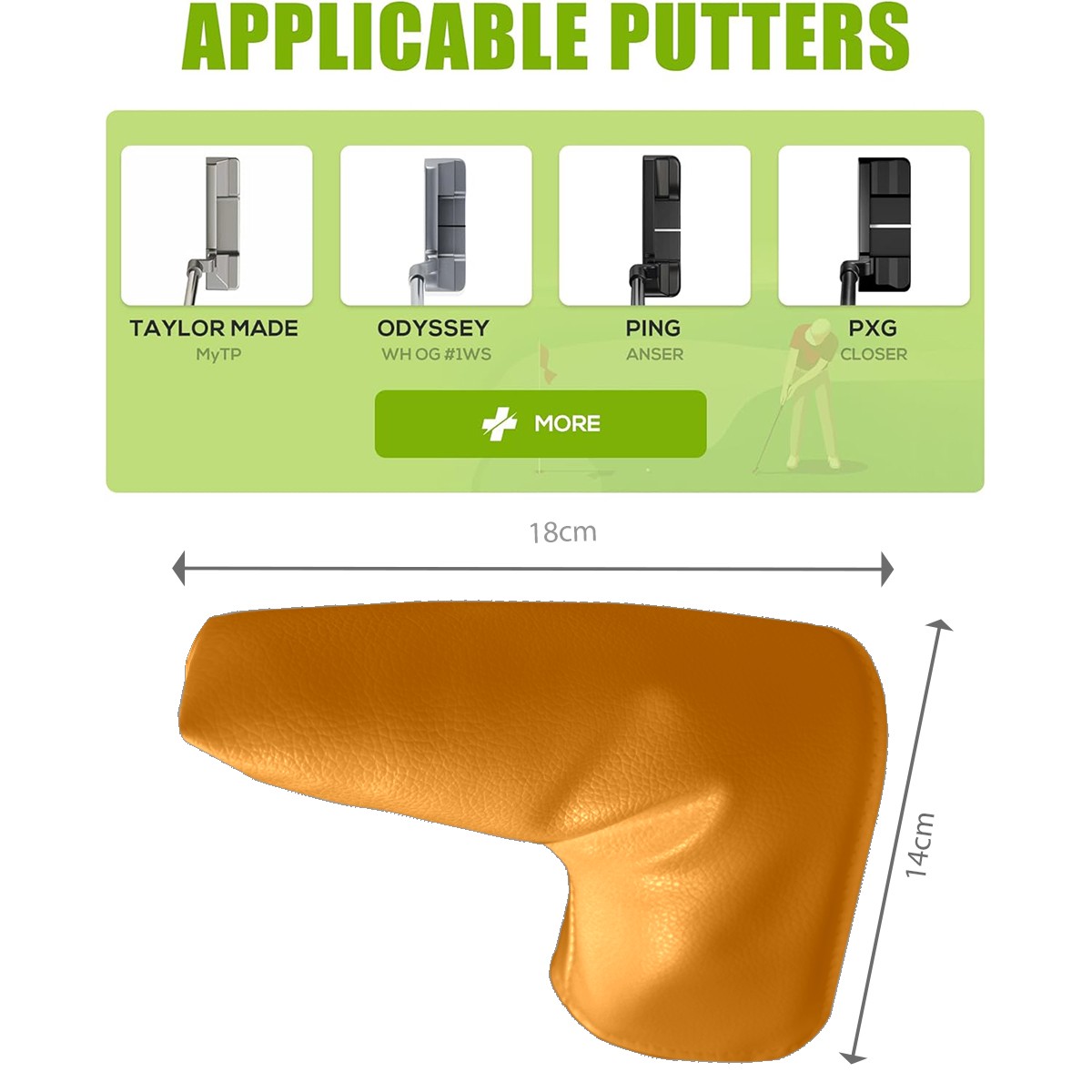 Lightweight Golf Putter Covers, Mid Mallet Putter Headcovers PU Leather Golf Club Covers for Man Women Golfer, Form Fitting Design Orange1