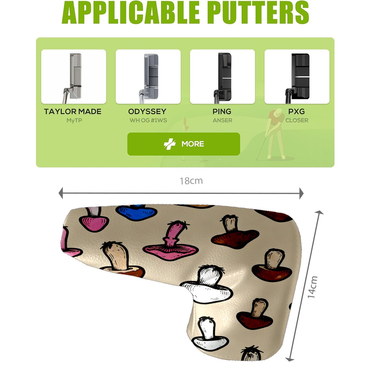 • <p>In the world of golfing equipment, the details often show professionalism and care. We carefully present this putter head protector as a classic golf accessory that will bring a new upgrade to your golf experience. It is a fusion of precision and fashion. The exterior is made of high-quality leather with a tough and textured texture that can effectively resist wear and tear and scratches from daily use. The soft inner lining wraps a gentle protective film around the putter head, avoiding minor scratches and damages caused by collisions and prolonging the life of the putter. The unique closure design is the finishing touch, super strong adhesive force, no matter how you walk on the course, bumps, it is as stable as a mountain, will not easily fall off. It is very convenient to take off the putter cover and put it into the stroke with just one pull, so that every operation is smooth and natural. It is the crystallization of retro and practical. With a strong retro flavor, it pays tribute to the classic tradition of golf. Its shape perfectly fits the unique shape of a mallet putter, providing all-around wrap-around protection for the putter head. The design of the mallet putter head protector is inspired by the golden age of golf, and the retro pattern and color combination make people feel as if they have traveled through time and space to experience the deep historical heritage of the game of golf. Whether on a traditional style golf course or a modern and fashionable course, it fits perfectly and adds a unique charm to your clubs.<br></p>