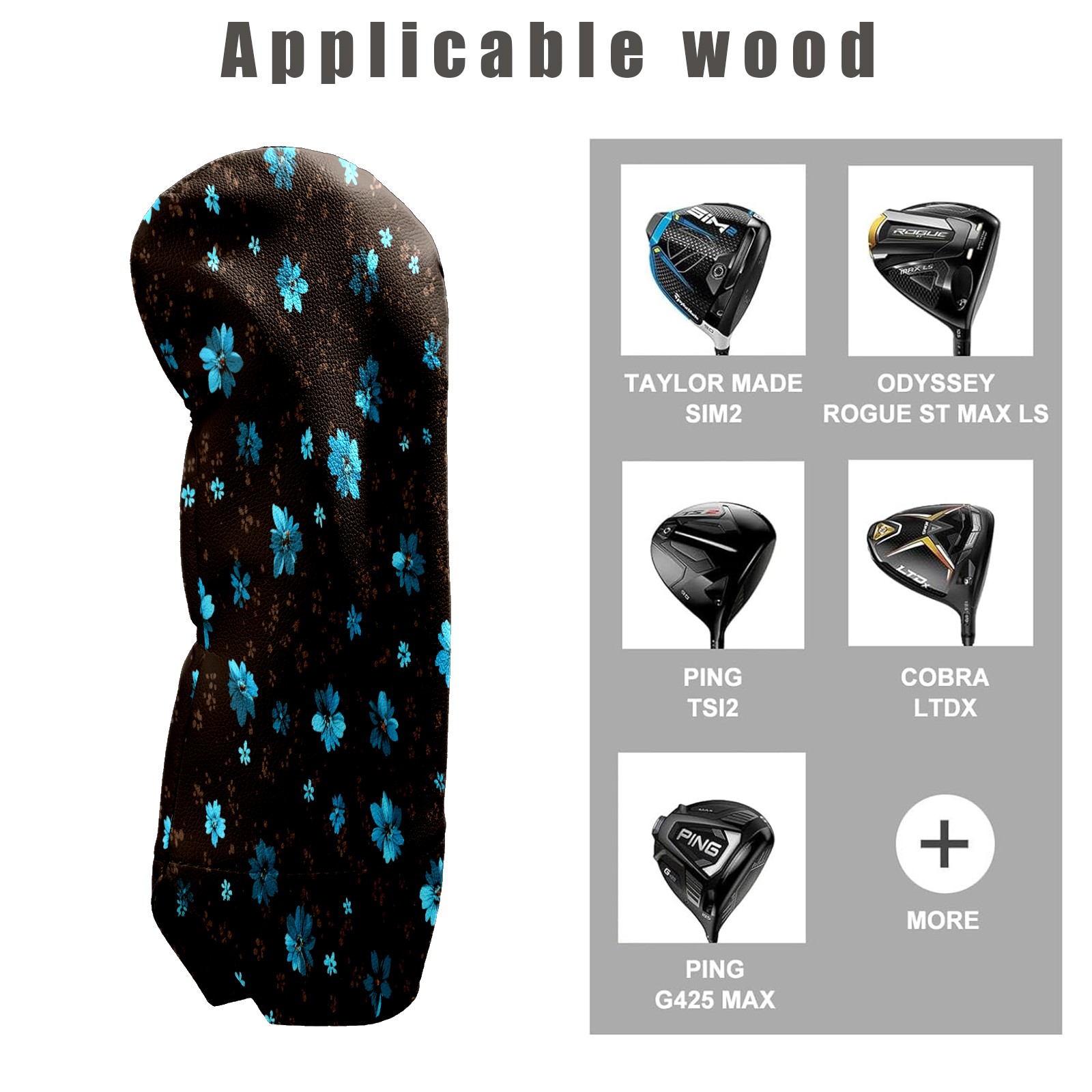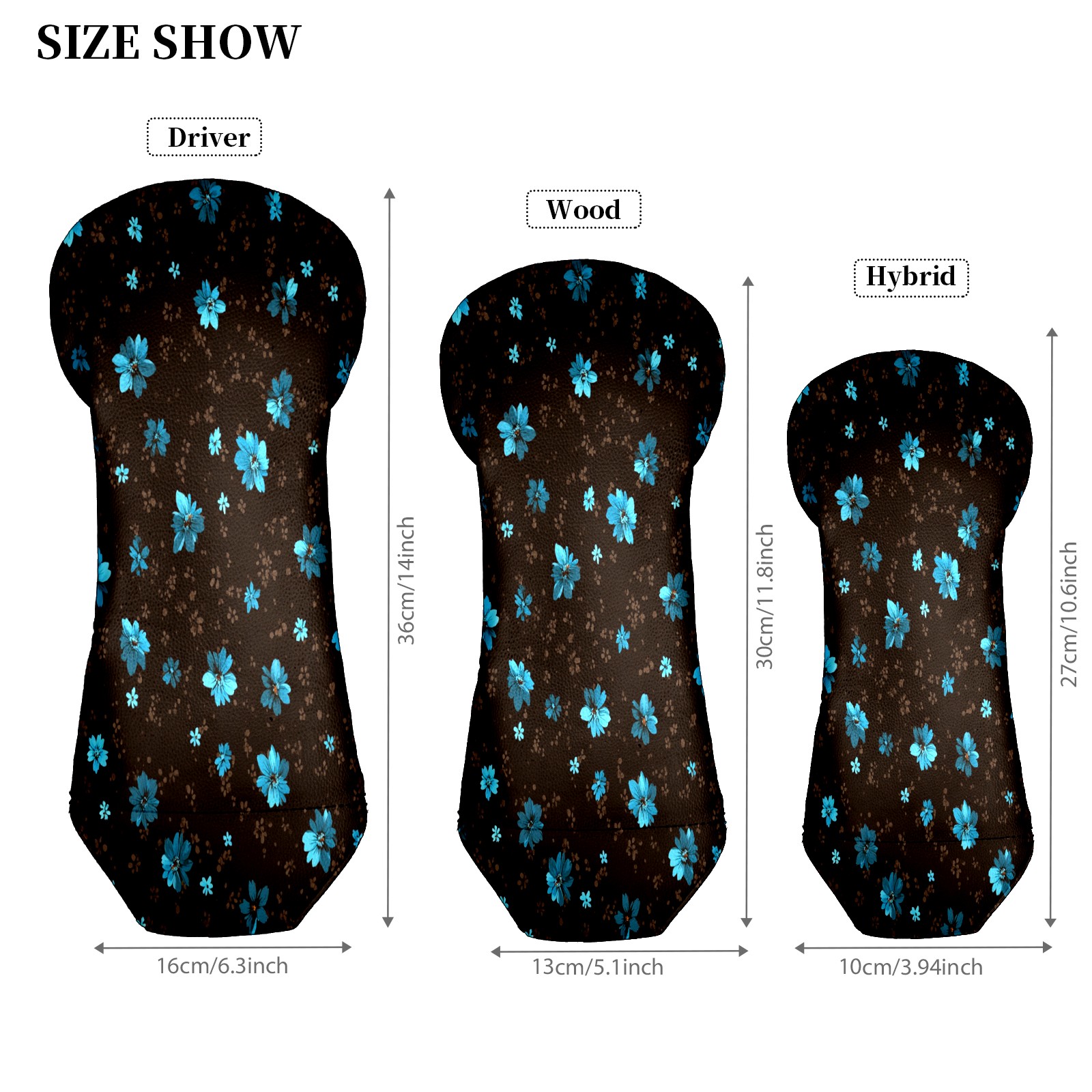 Waterproof Golf Club Headcover for Driver/Fairway/Hybrid - Counullo Elegant Flower Brown Design, Premium PU Leather with Velvet Lining, Lightweight Golf Gift for Men/Women (3 Sizes)