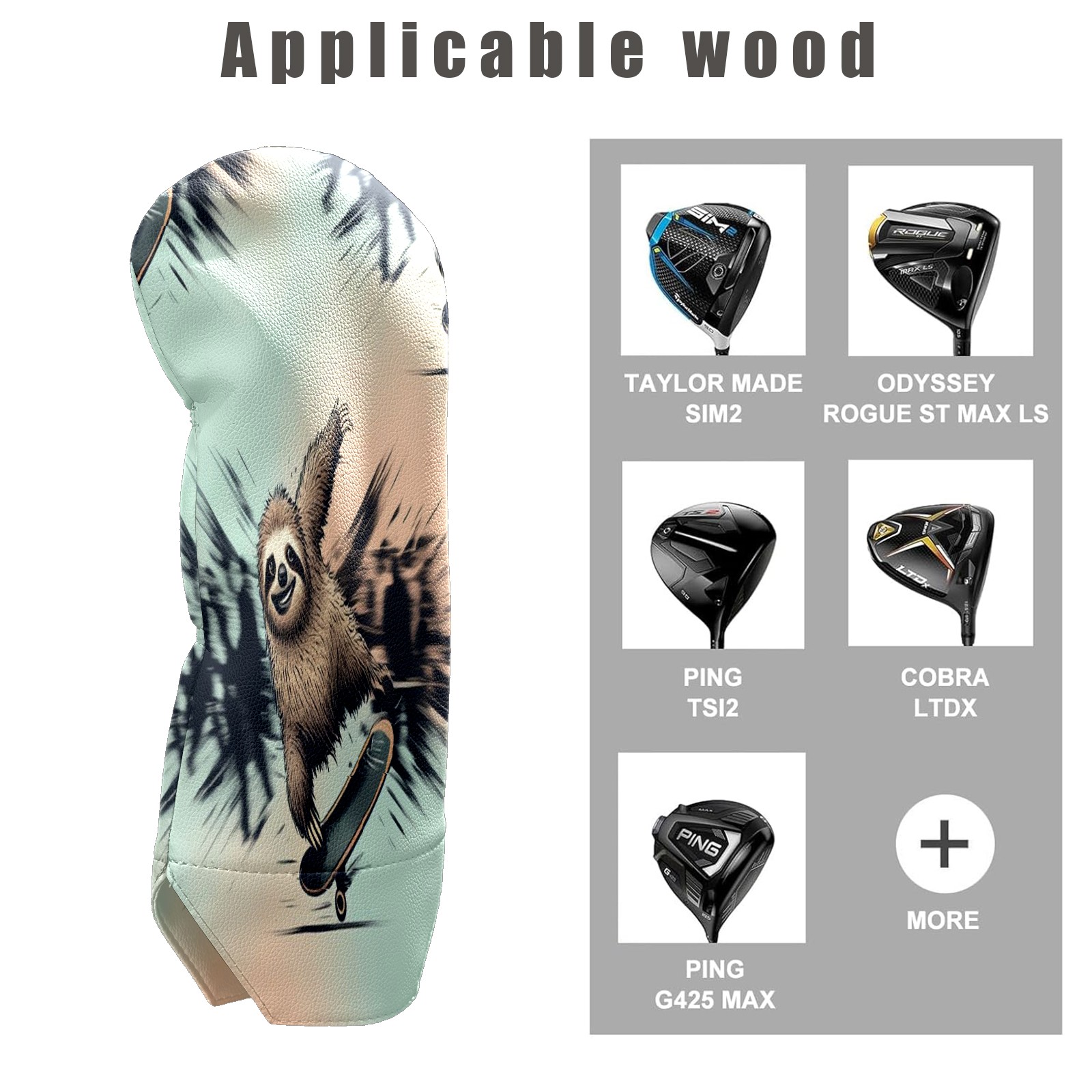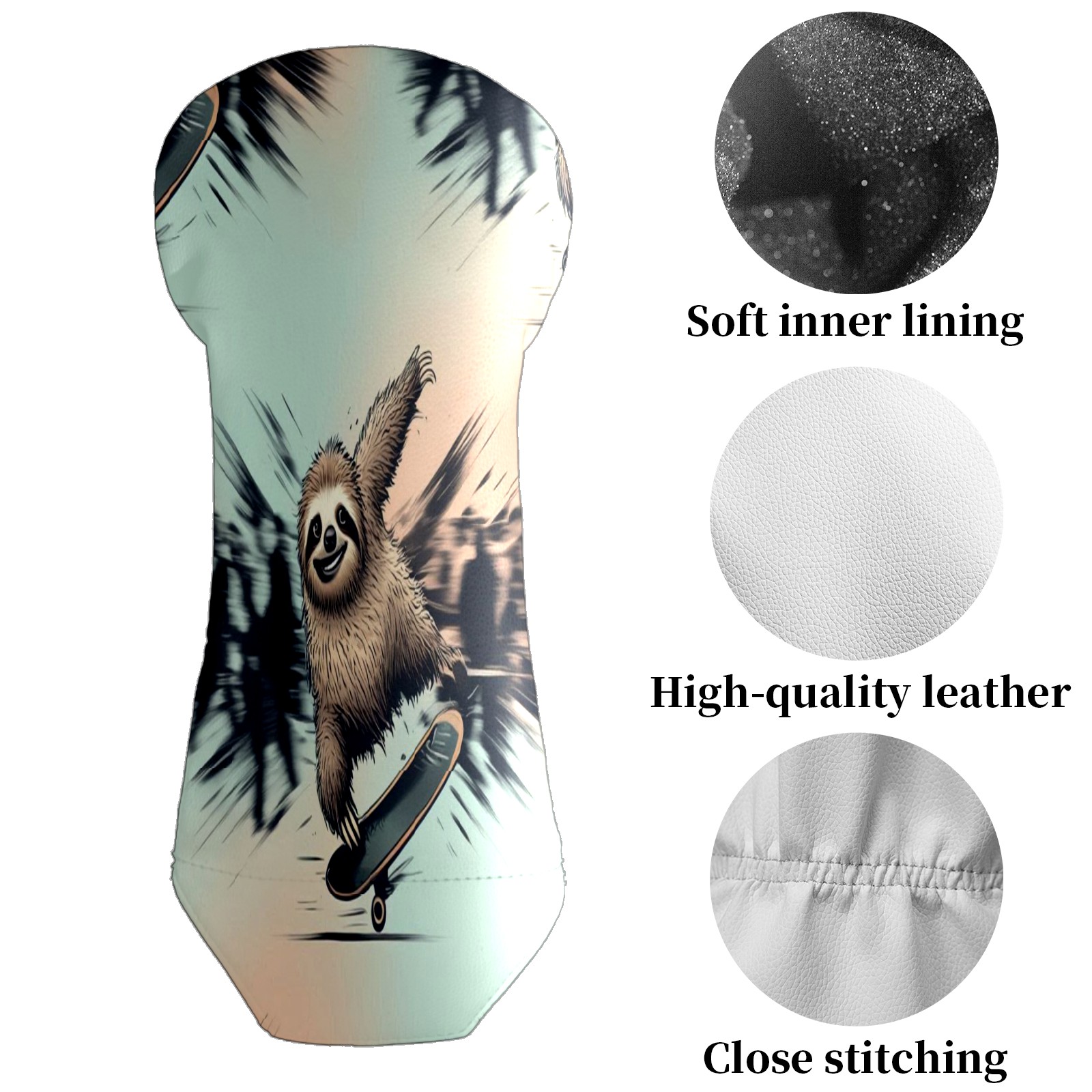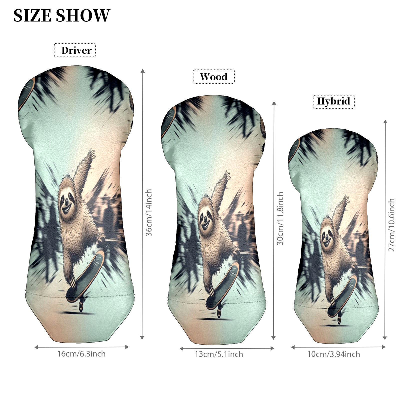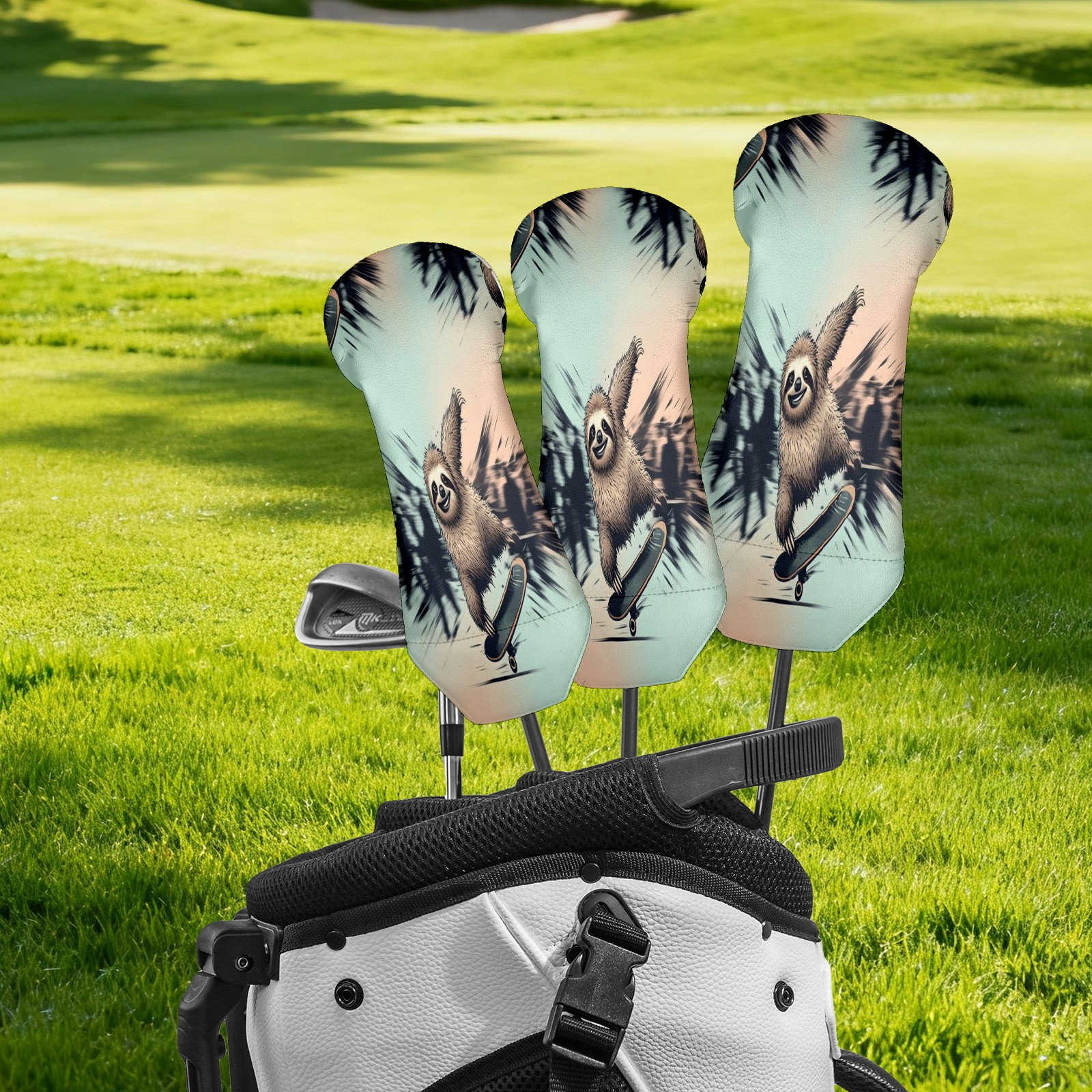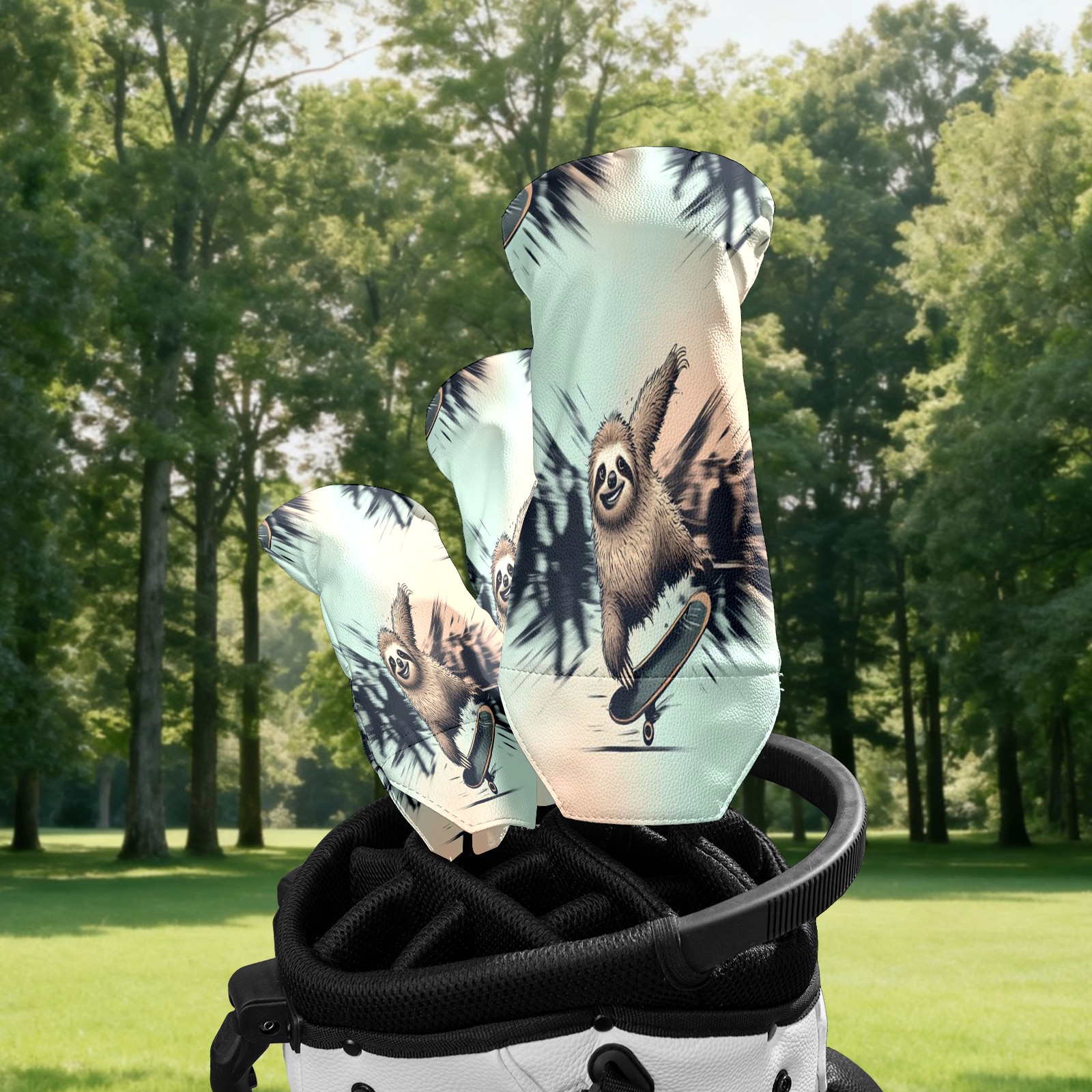 Waterproof Golf Club Headcover for Driver/Fairway/Hybrid - Counullo Cool Sloth Blue Design, Premium PU Leather with Velvet Lining, Lightweight Golf Gift for Men/Women (3 Sizes)