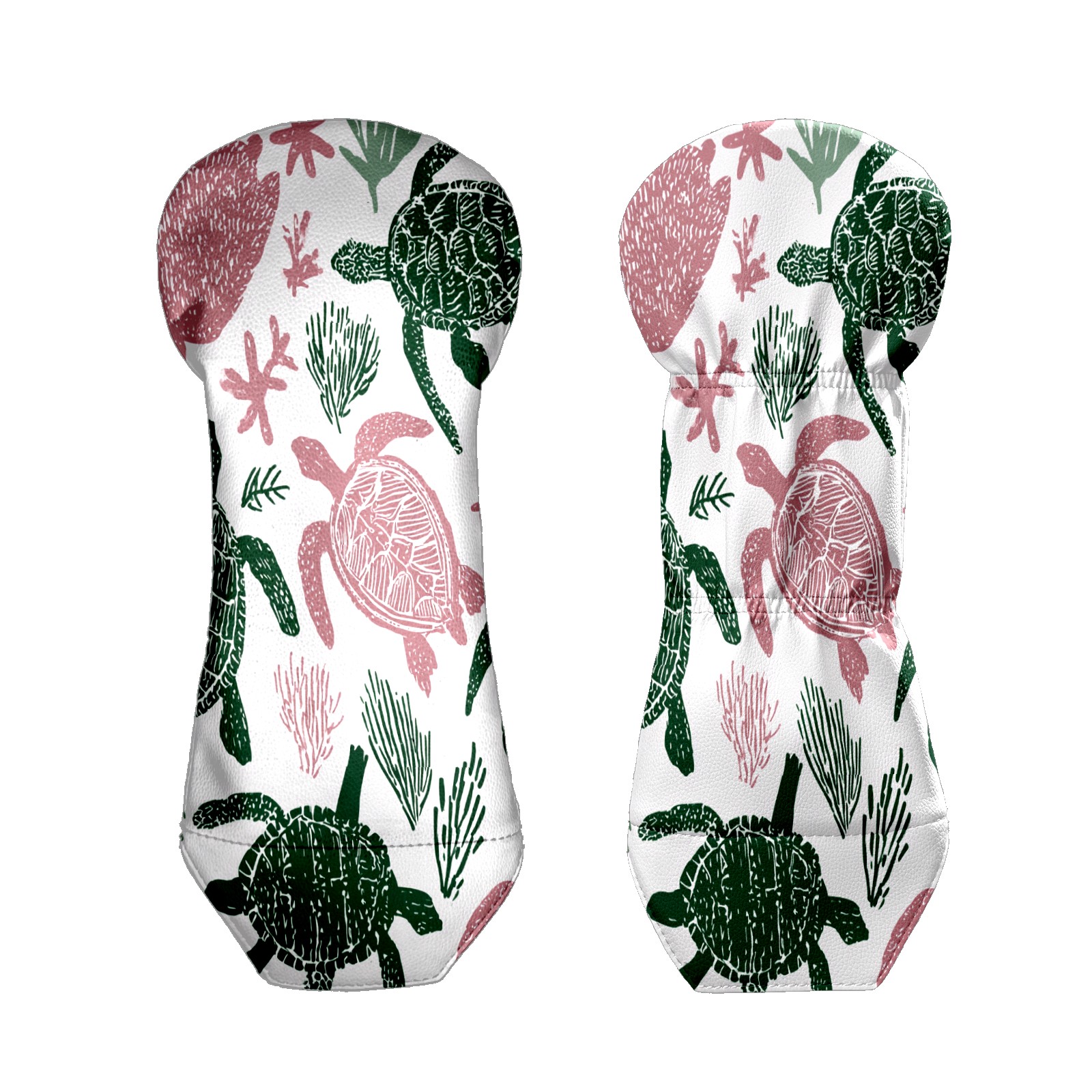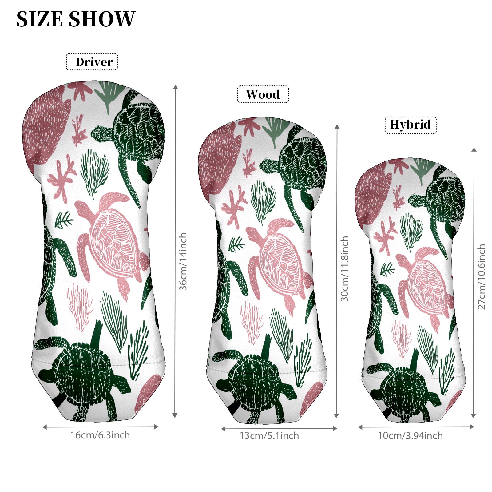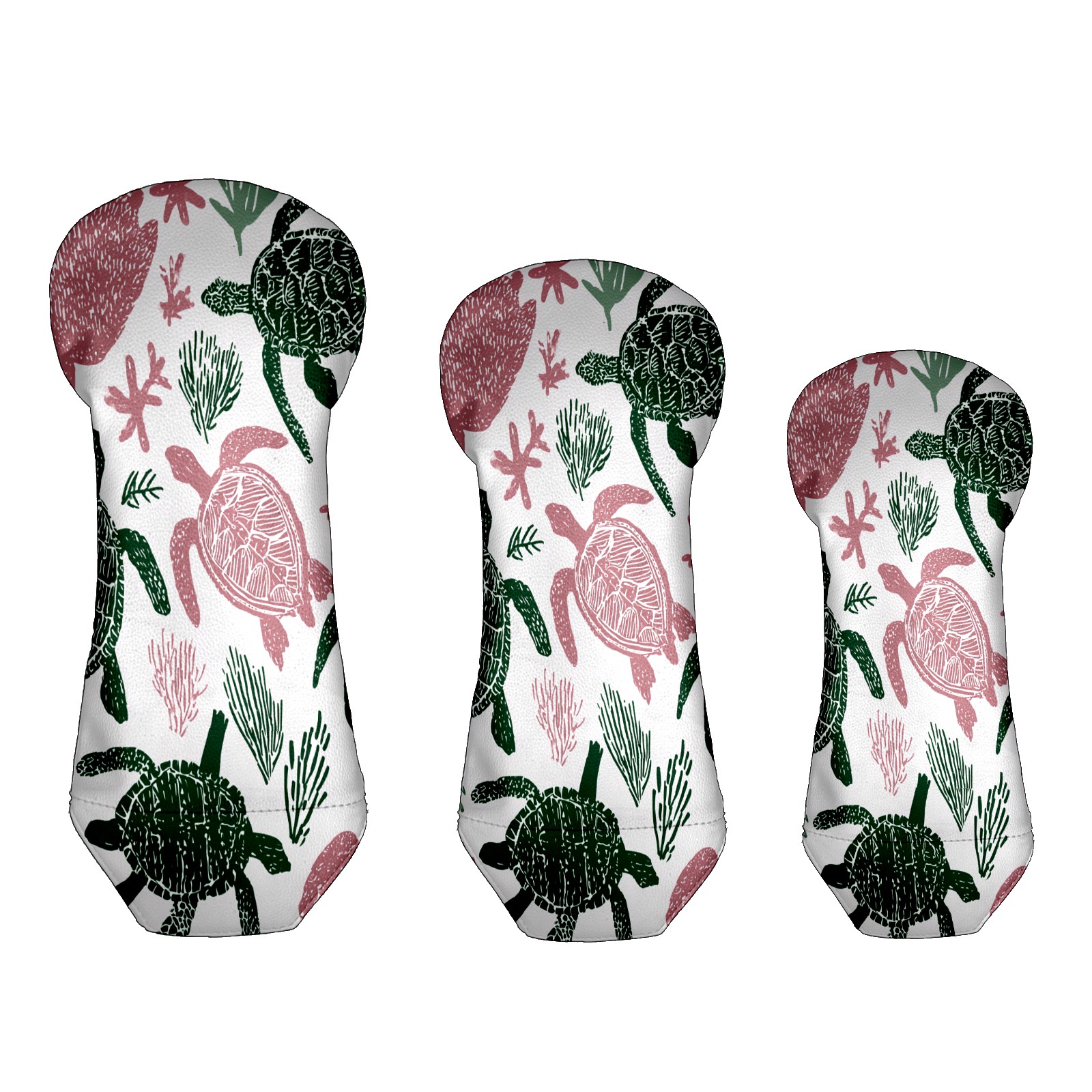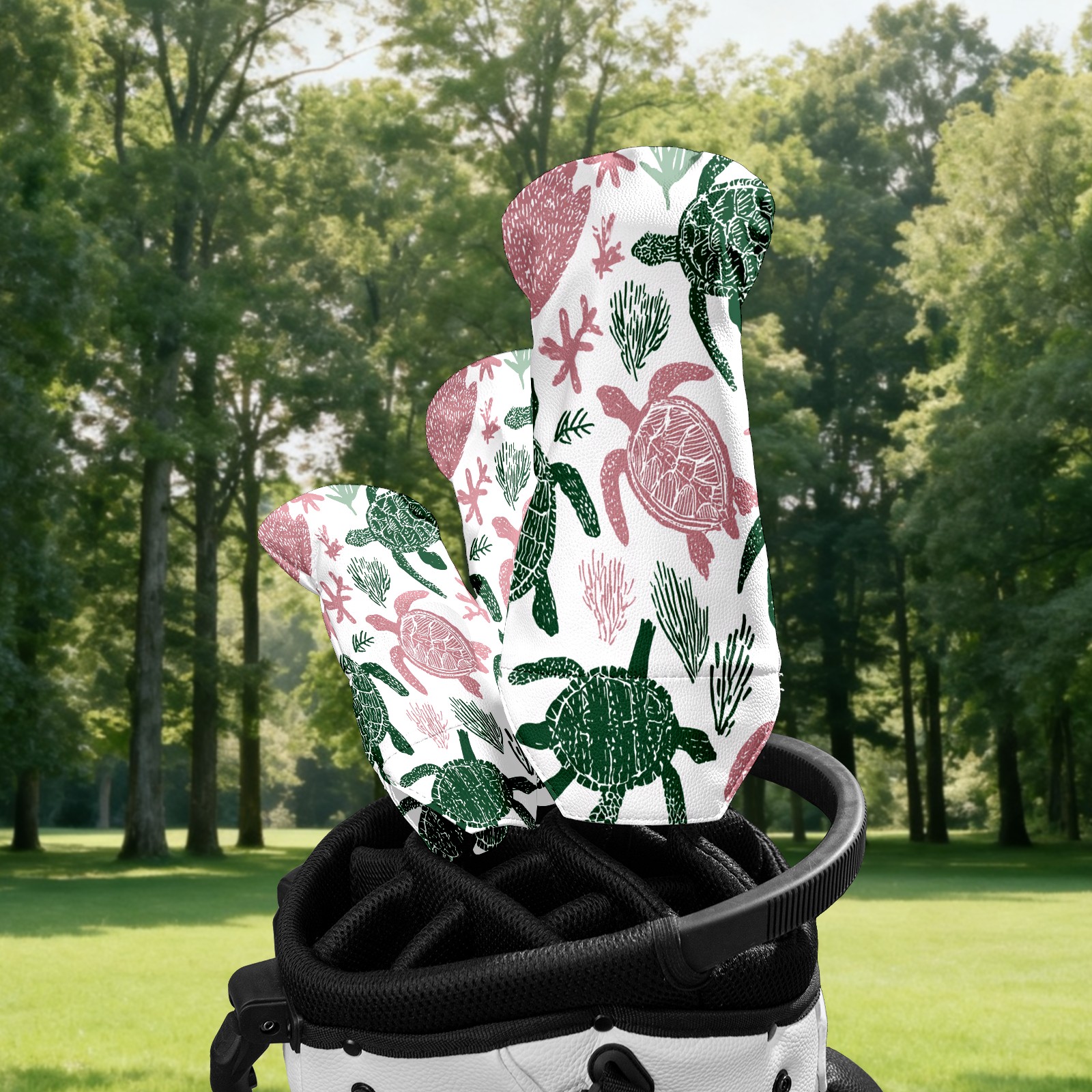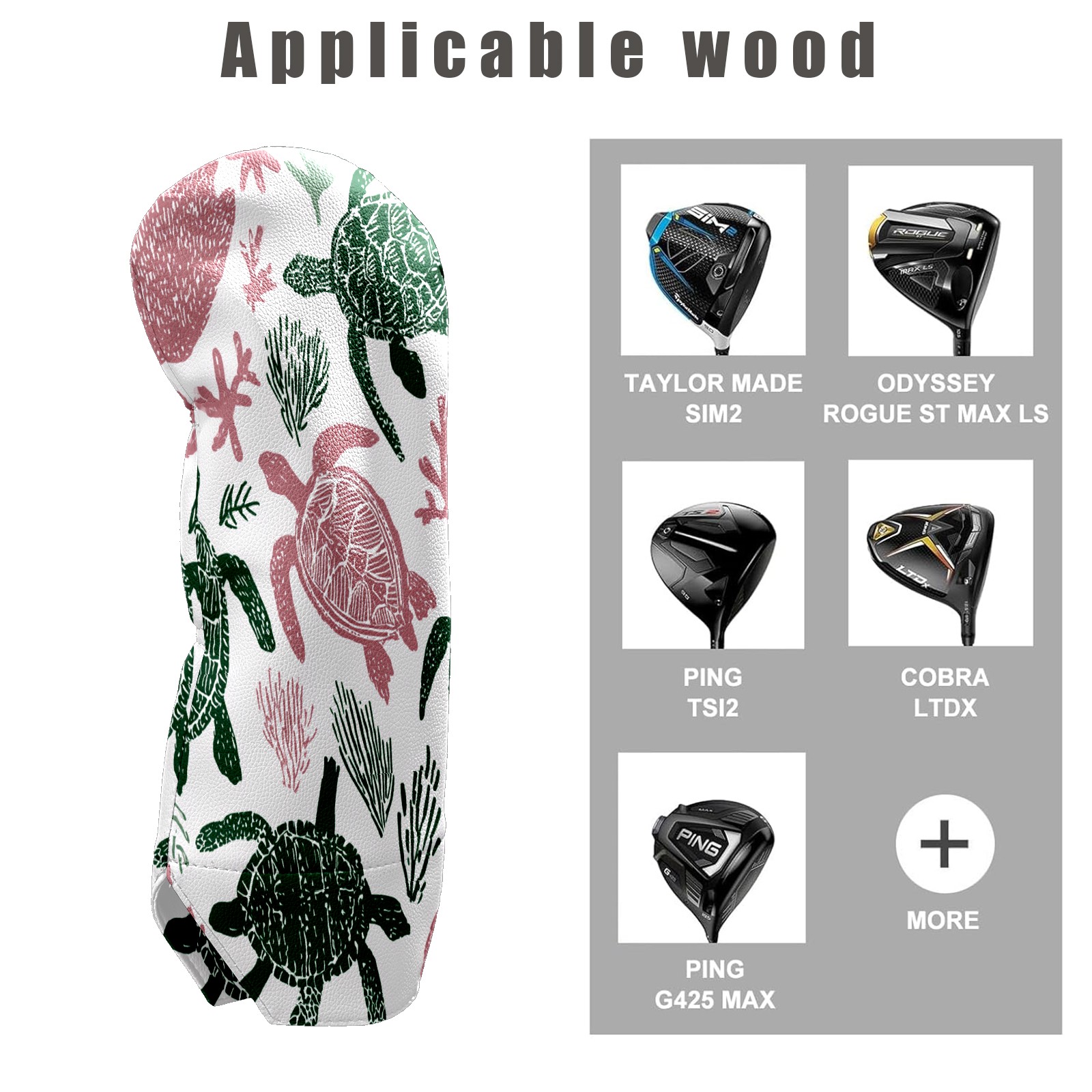 Waterproof Golf Club Headcover for Driver/Fairway/Hybrid - Counullo Fresh Turtle Pink Design, Premium PU Leather with Velvet Lining, Lightweight Golf Gift for Men/Women (3 Sizes)