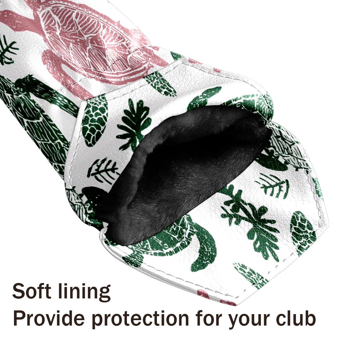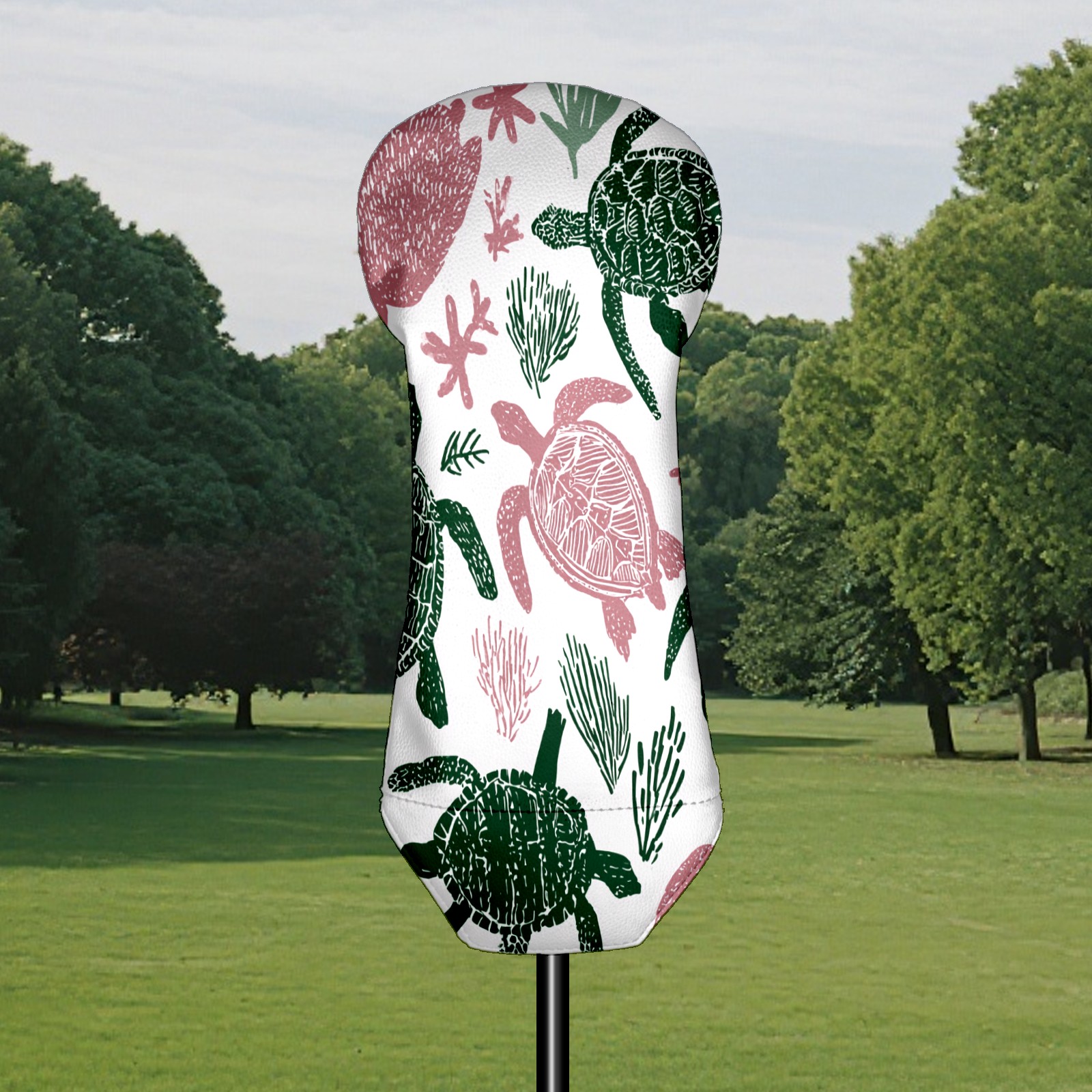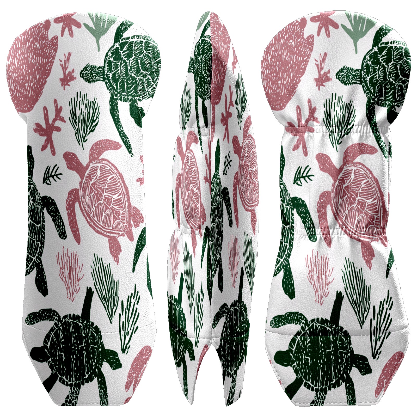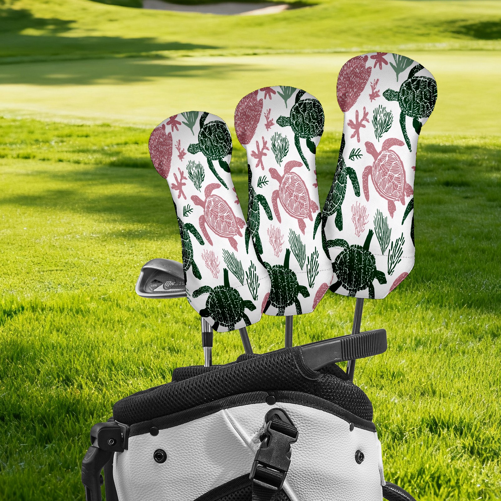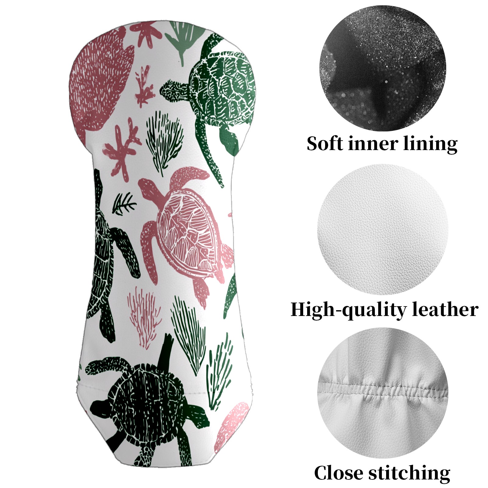 Waterproof Golf Club Headcover for Driver/Fairway/Hybrid - Counullo Fresh Turtle Pink Design, Premium PU Leather with Velvet Lining, Lightweight Golf Gift for Men/Women (3 Sizes)