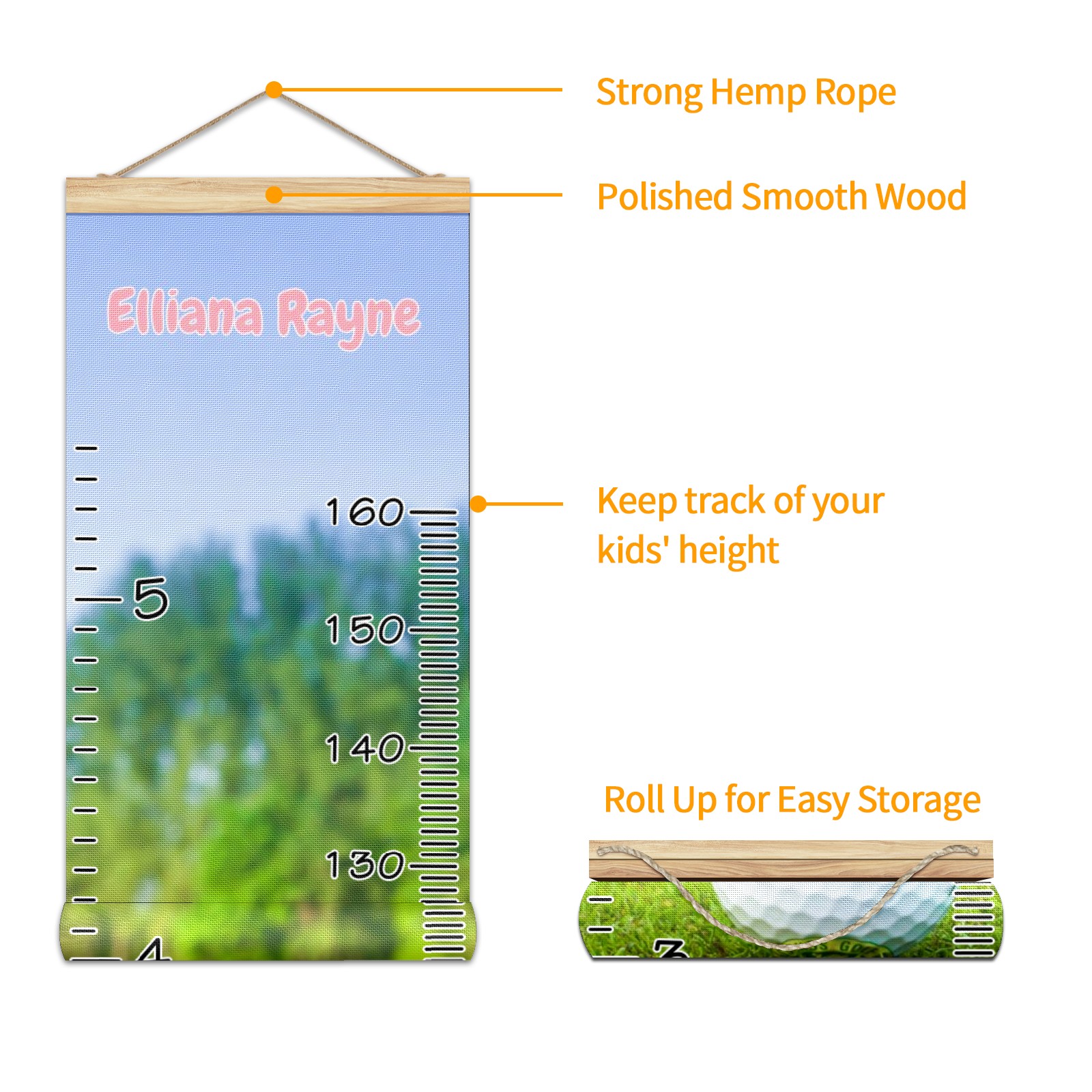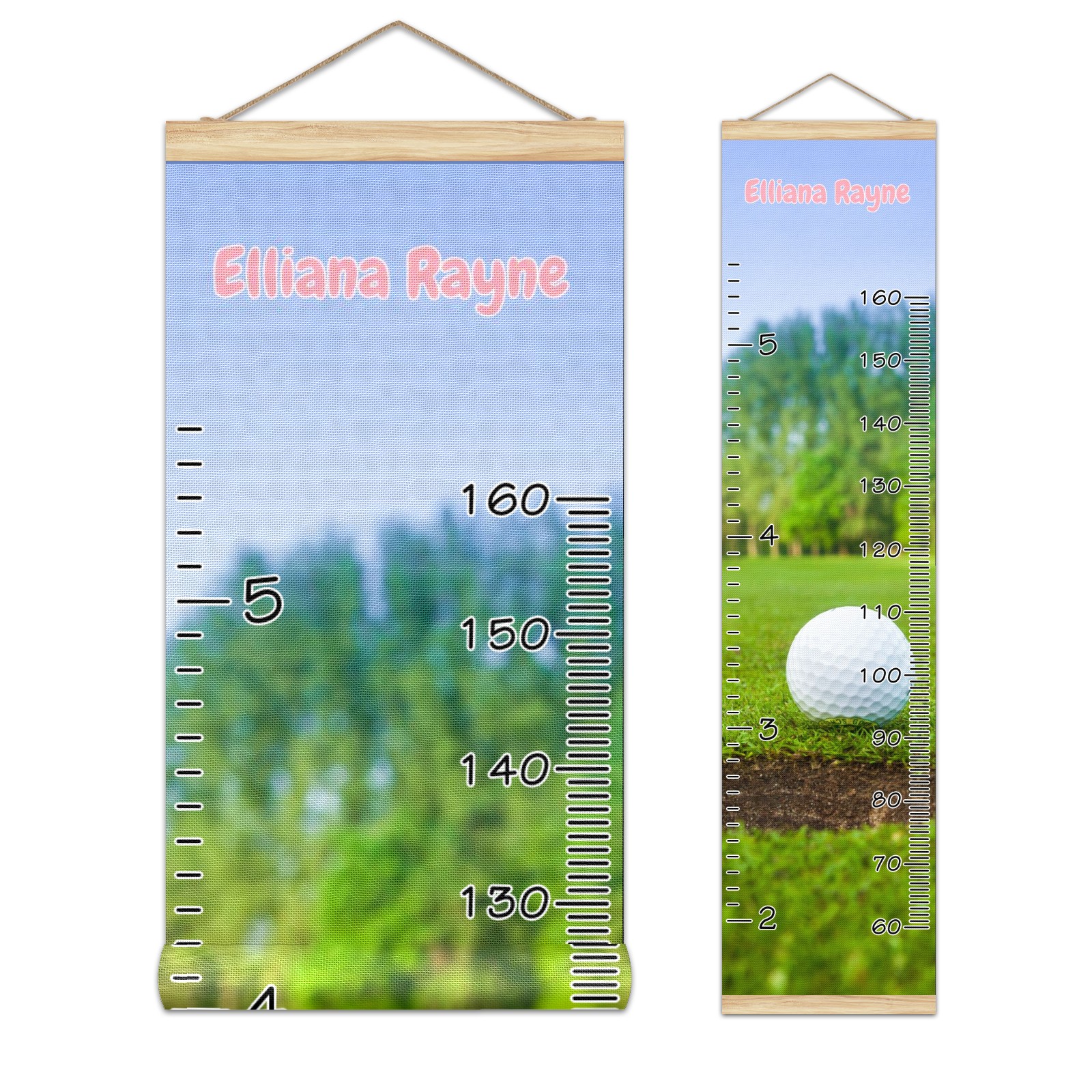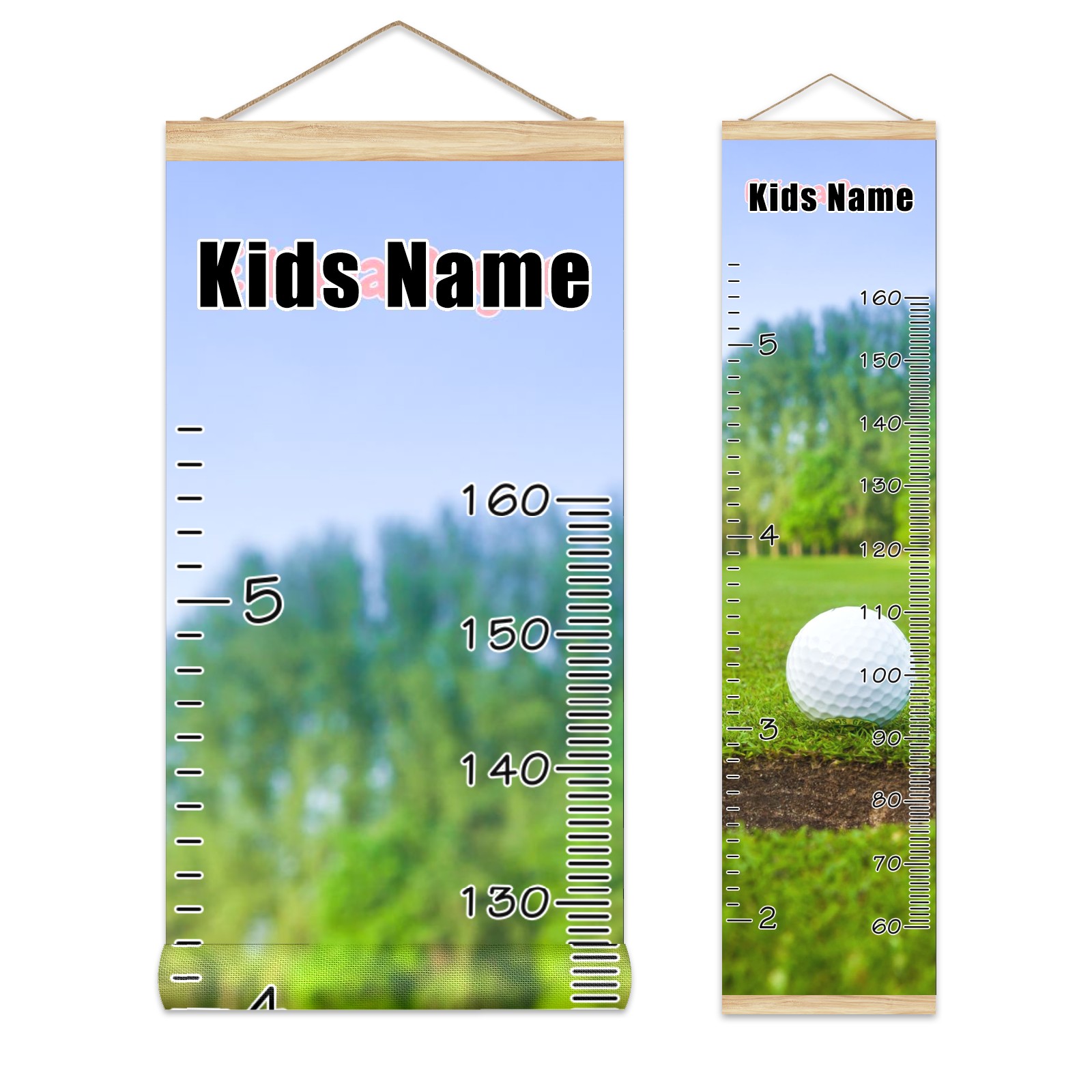 Personalized Kids Name Growth Chart Ruler for Wall Wood Frame Canvas Height Measure Chart 13.4x56 in Hanging Growth Chart Golf12.12 Boys Girls Room Decor