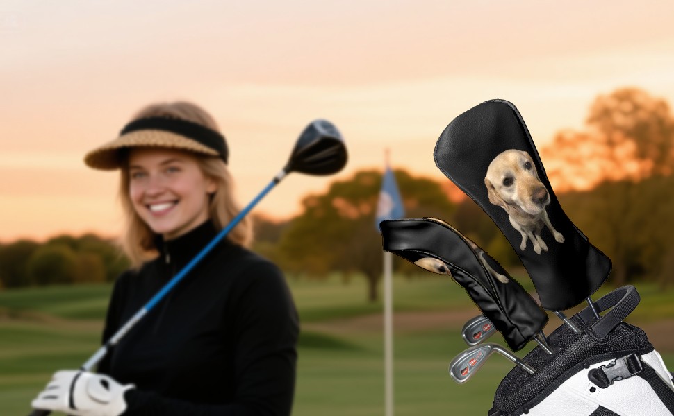 PU Leather Golf Head Covers Set – Fits Drivers/Fairway Woods/Hybrids, Ideal Gifts for Male & Female Golfers Fairway狗