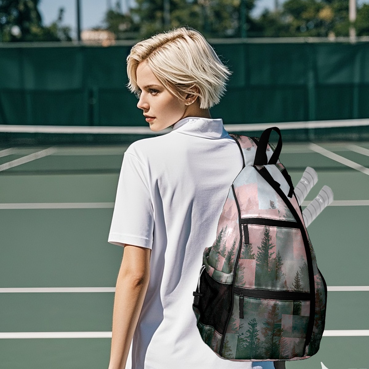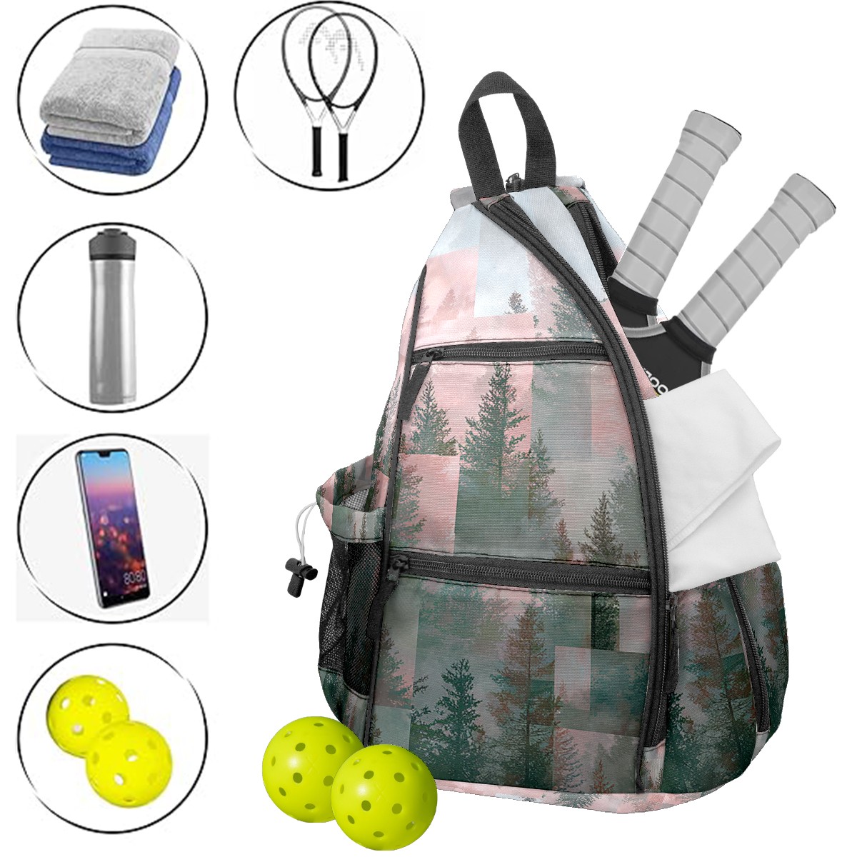 Pickleball Backpack Hazy Forest Gray for Women Men - Multi-Pocket Sports Bag with Shoe Compartment | Versatile Tennis Bag & Gifts for Pickleball Lovers
