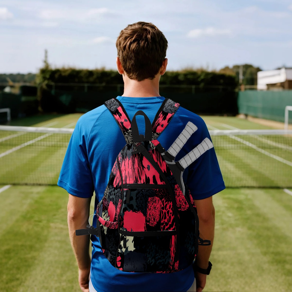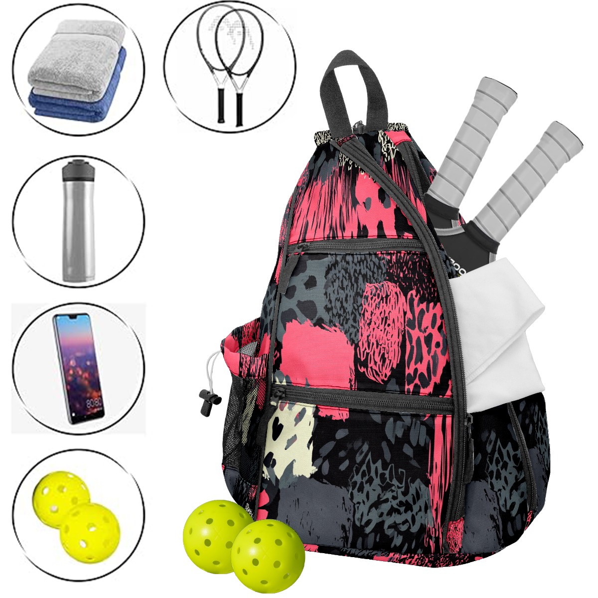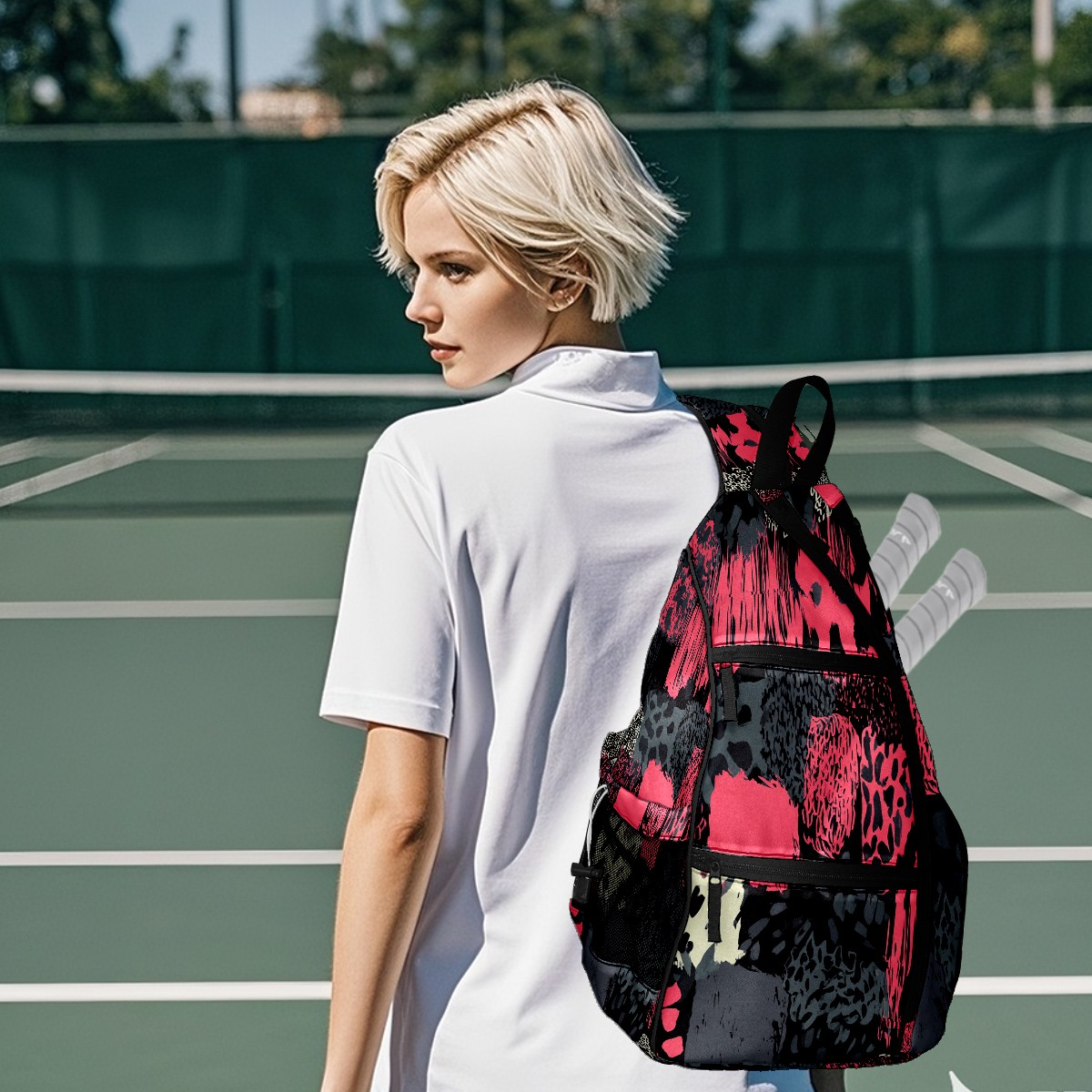 Pickleball Backpack Stylish Graffiti Pink for Women Men - Multi-Pocket Sports Bag with Shoe Compartment | Versatile Tennis Bag & Gifts for Pickleball Lovers