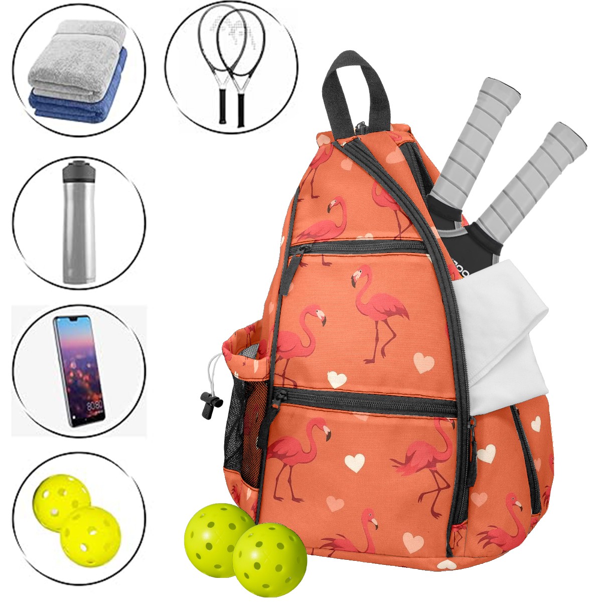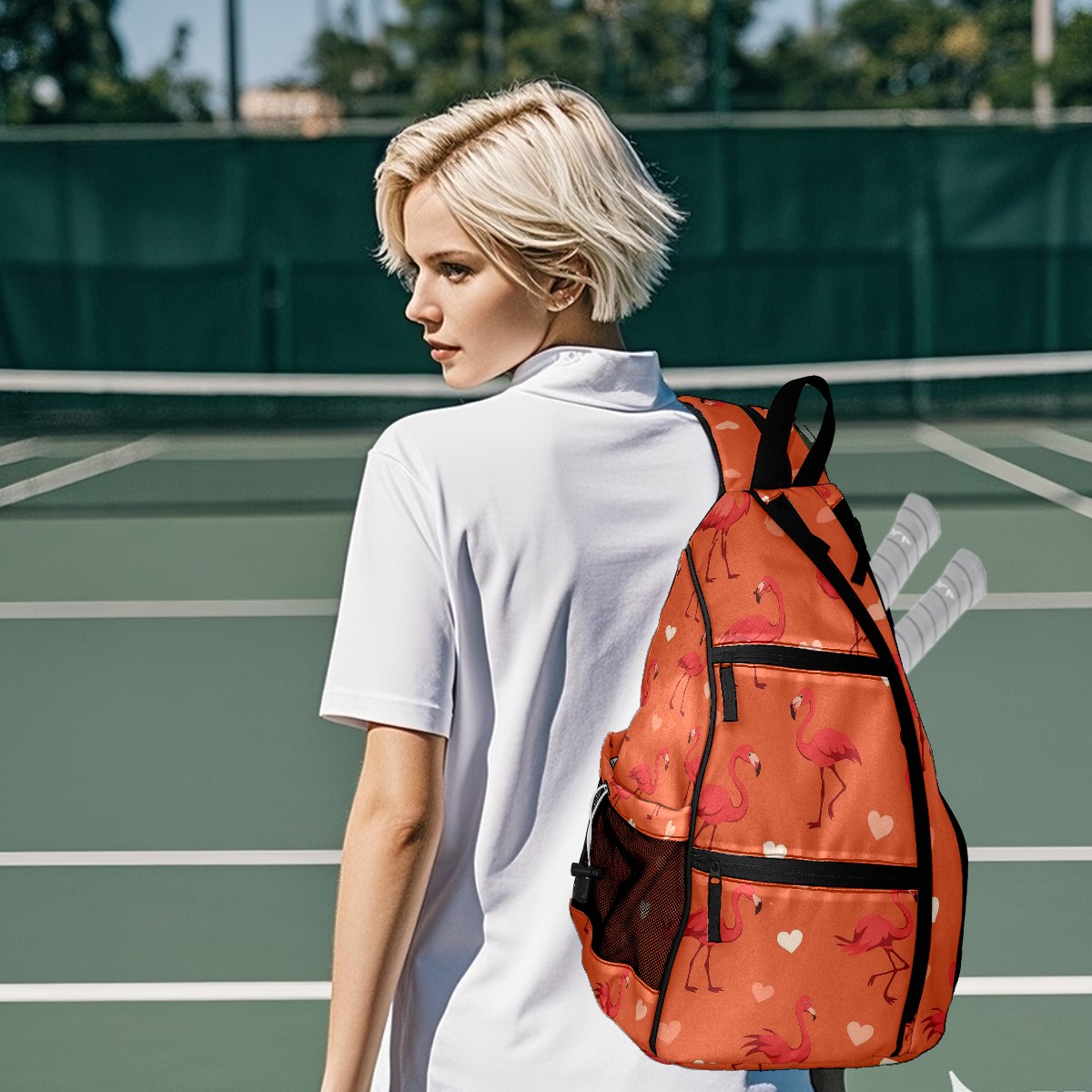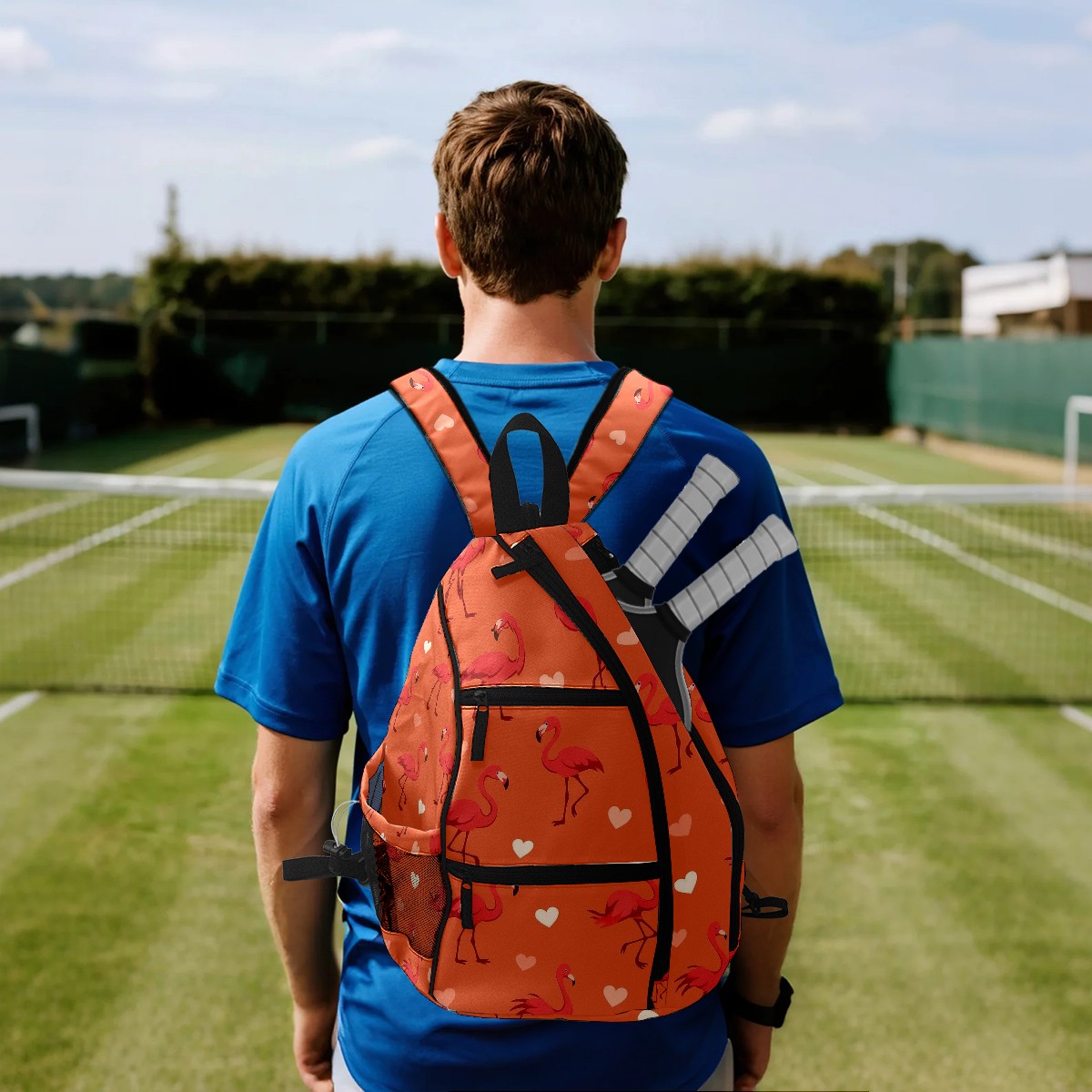 Pickleball Backpack Romantic Flamingo Orange for Women Men - Multi-Pocket Sports Bag with Shoe Compartment | Versatile Tennis Bag & Gifts for Pickleball Lovers