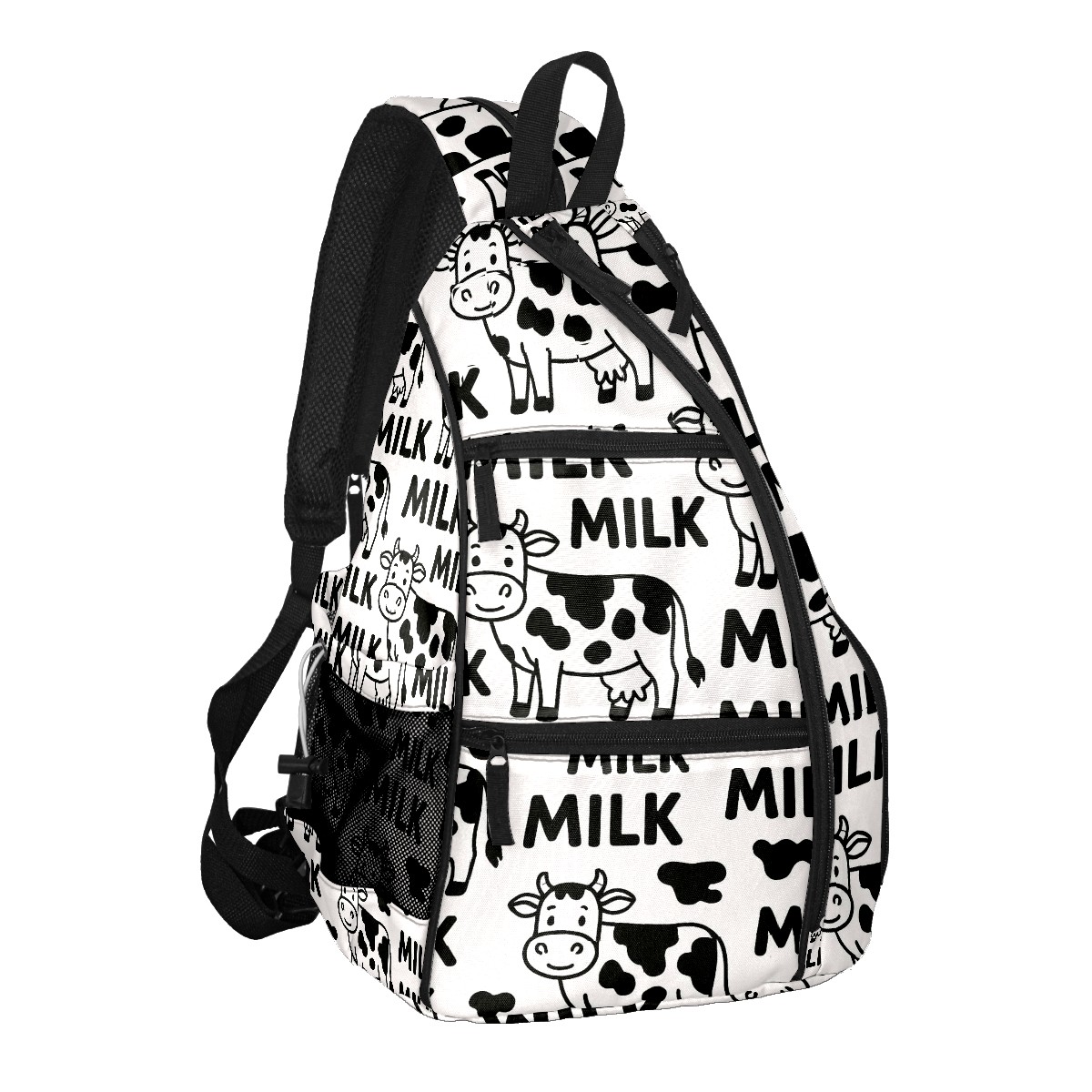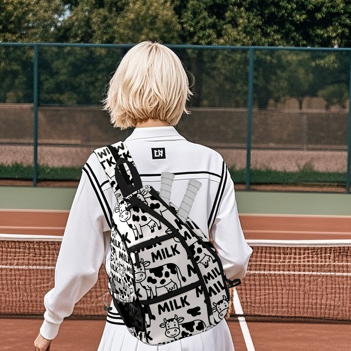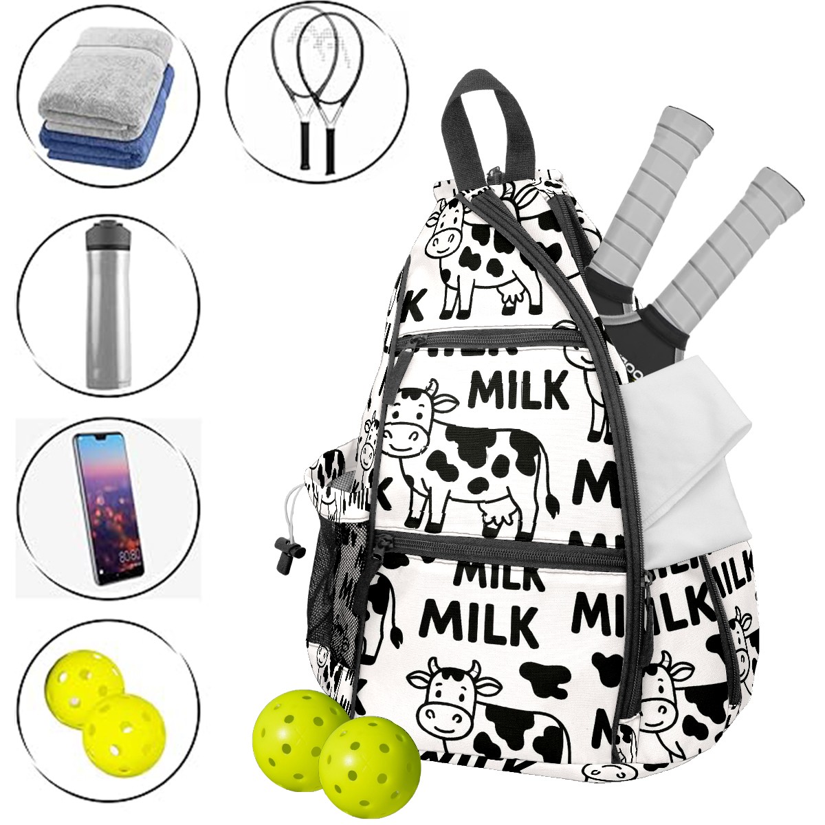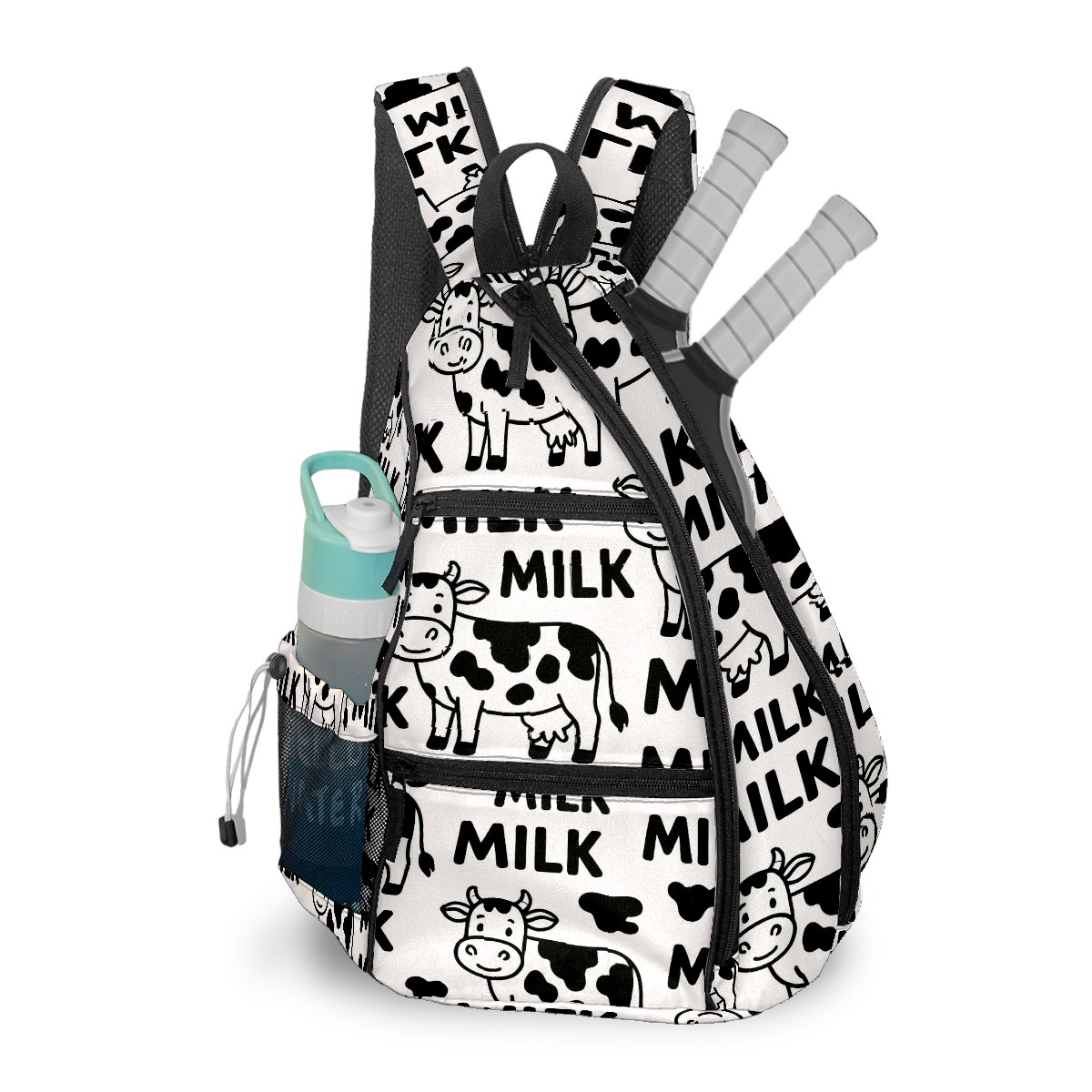 Pickleball Backpack Trendy Cow Black for Women Men - Multi-Pocket Sports Bag with Shoe Compartment | Versatile Tennis Bag & Gifts for Pickleball Lovers