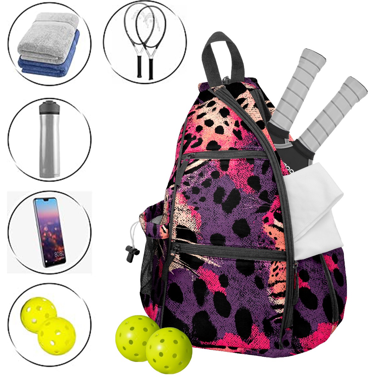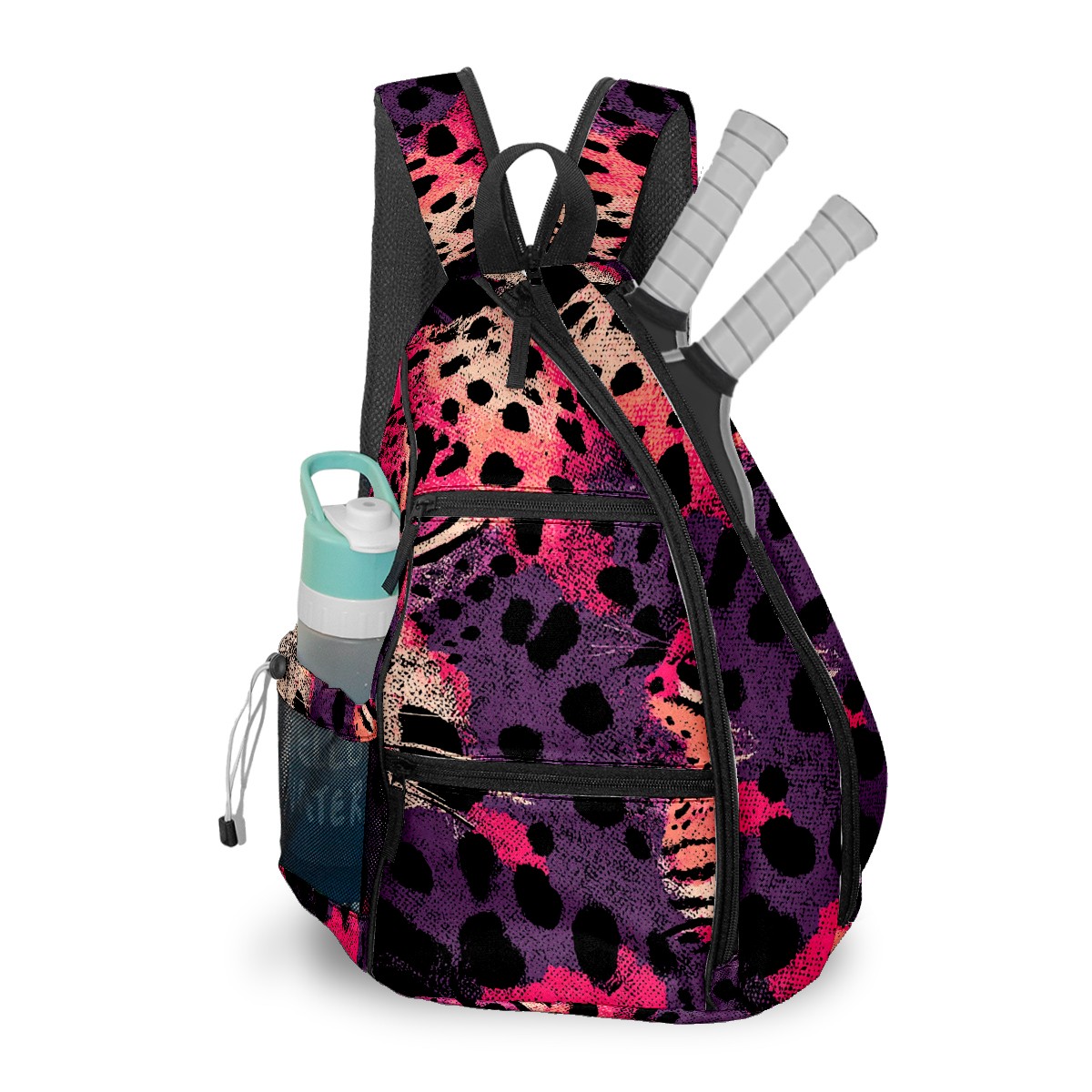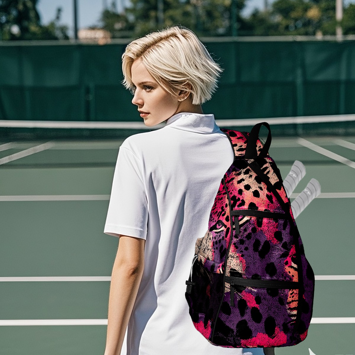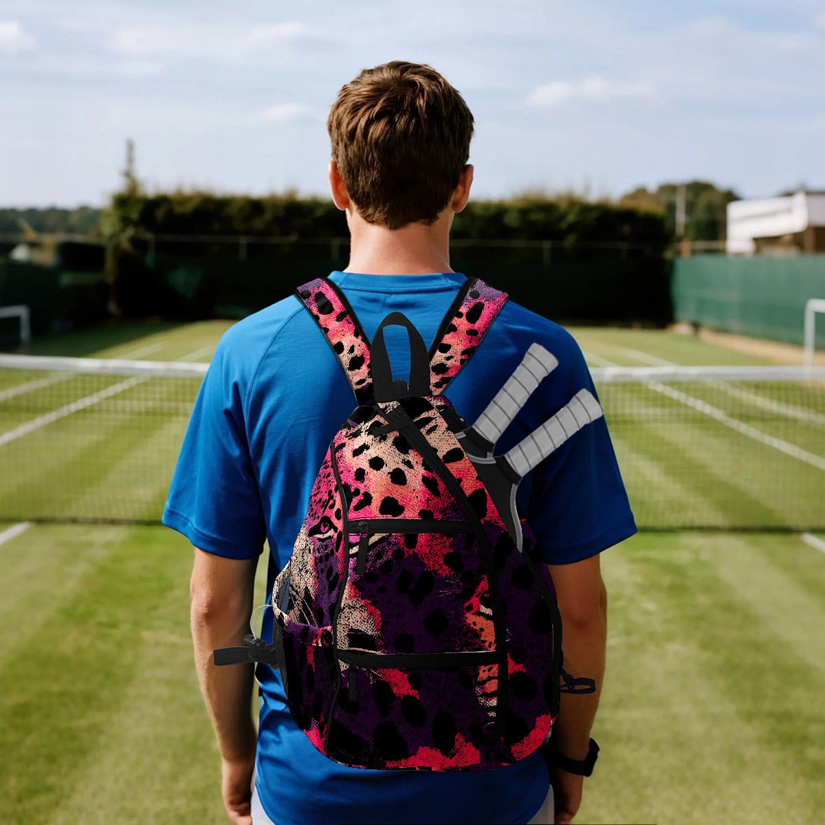 Pickleball Backpack Wild Leopard Pink for Women Men - Multi-Pocket Sports Bag with Shoe Compartment | Versatile Tennis Bag & Gifts for Pickleball Lovers