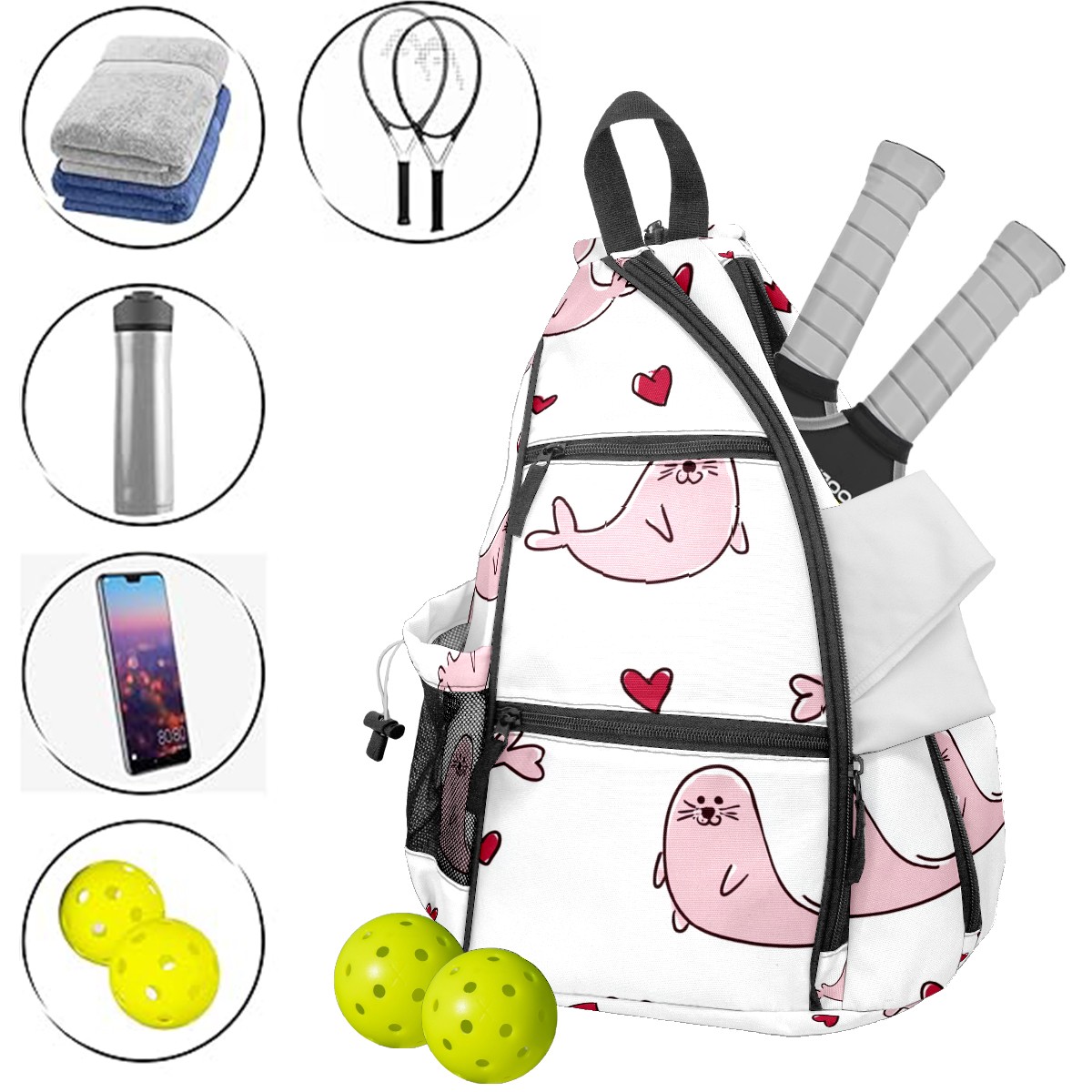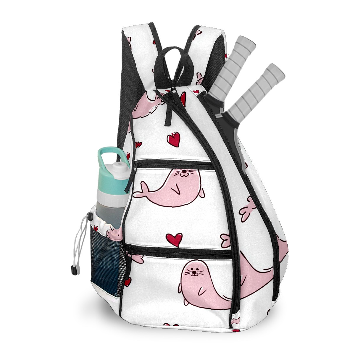 Pickleball Backpack Cute Seal Pink for Women Men - Multi-Pocket Sports Bag with Shoe Compartment | Versatile Tennis Bag & Gifts for Pickleball Lovers