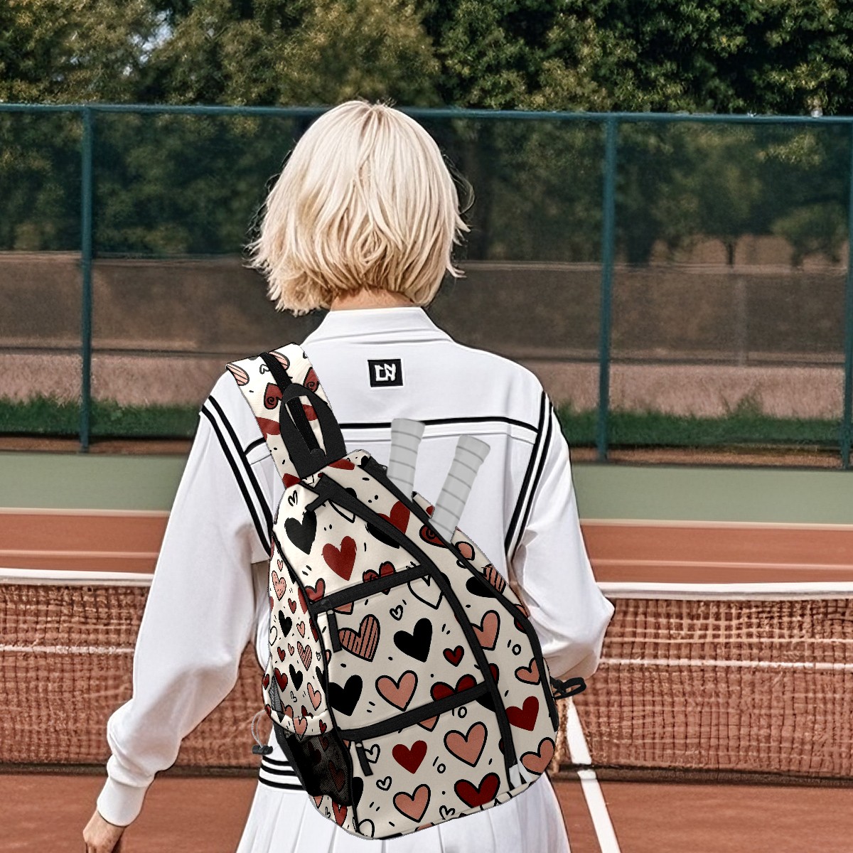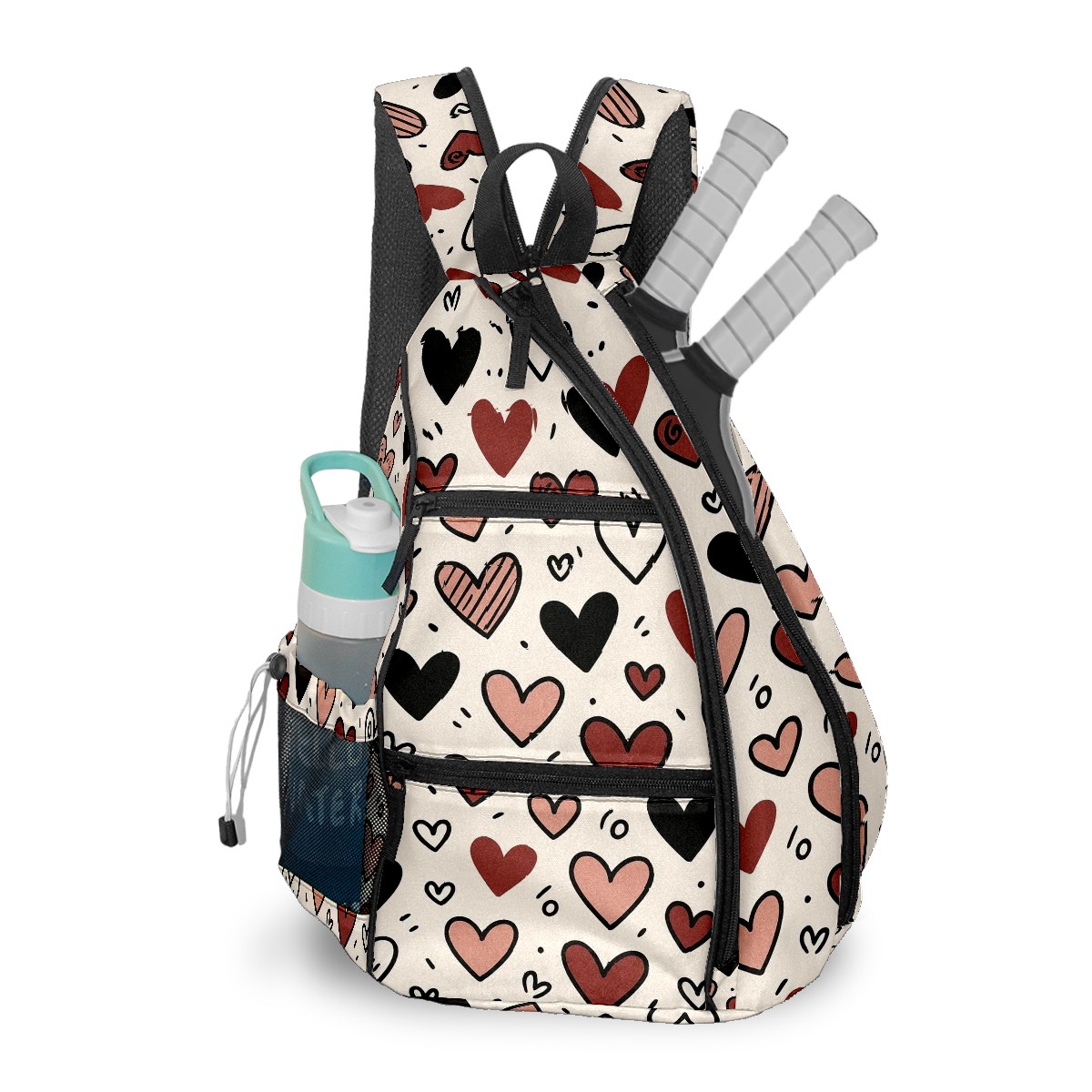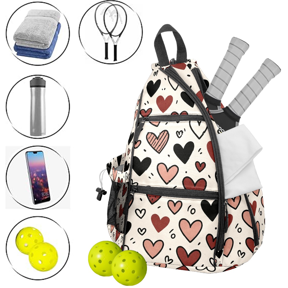 Pickleball Backpack Loving Heart Black for Women Men - Multi-Pocket Sports Bag with Shoe Compartment | Versatile Tennis Bag & Gifts for Pickleball Lovers
