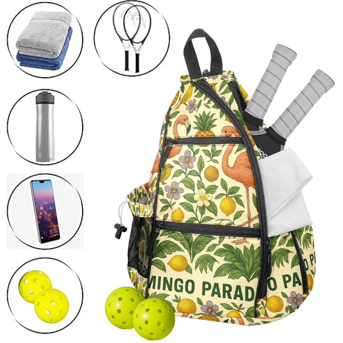 Pickleball Backpack Romantic Flamingo Yellow for Women Men - Multi-Pocket Sports Bag with Shoe Compartment | Versatile Tennis Bag & Gifts for Pickleball Lovers
