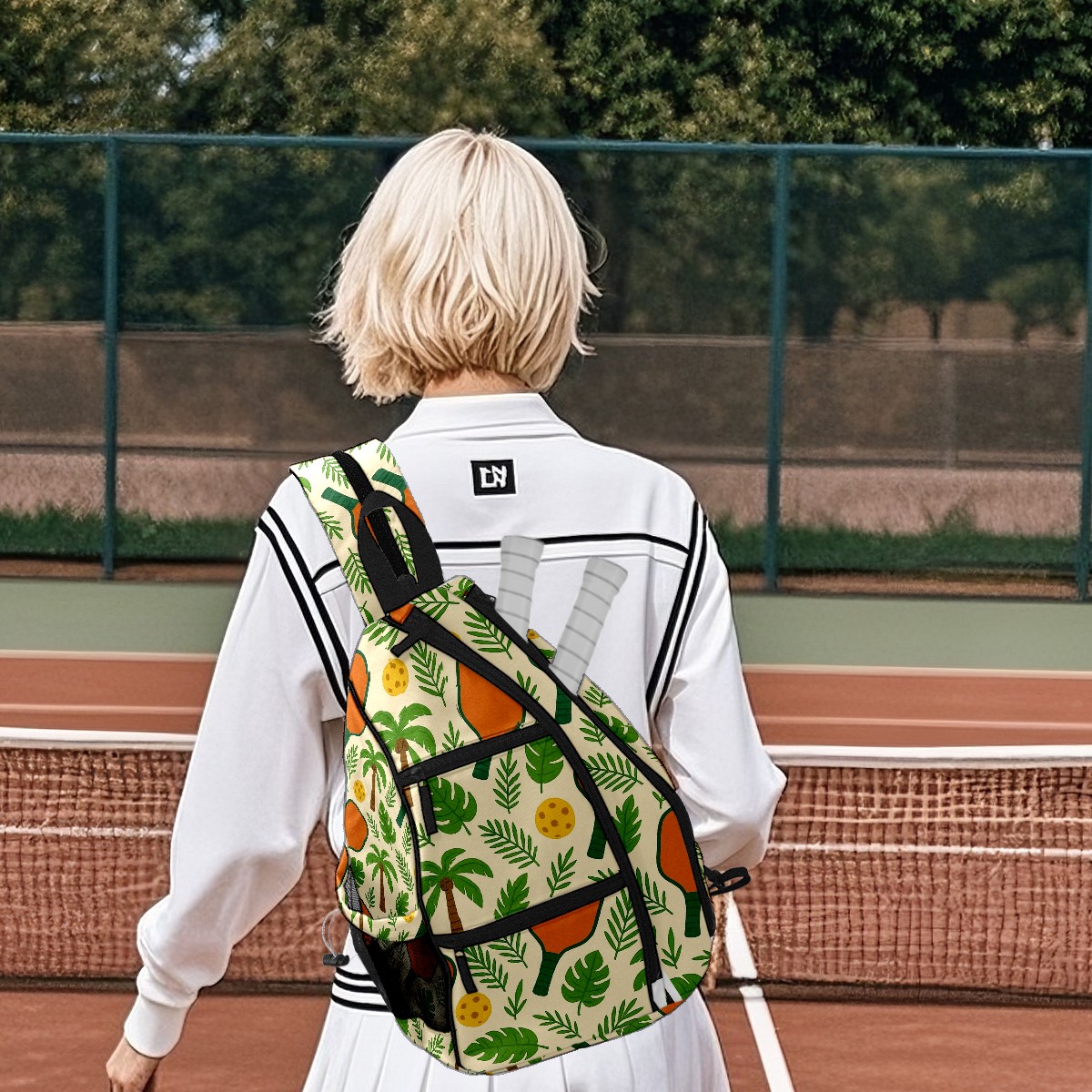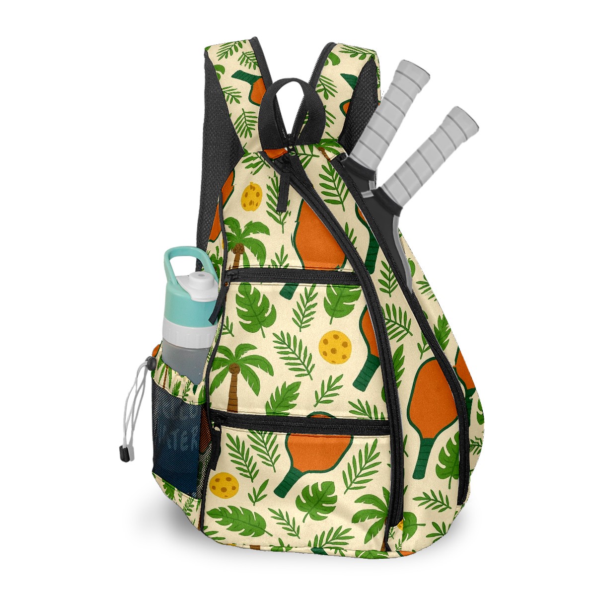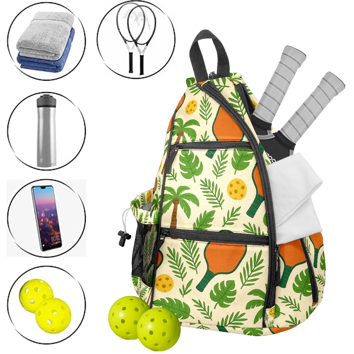 Pickleball Backpack Tropical Palm Orange for Women Men - Multi-Pocket Sports Bag with Shoe Compartment | Versatile Tennis Bag & Gifts for Pickleball Lovers