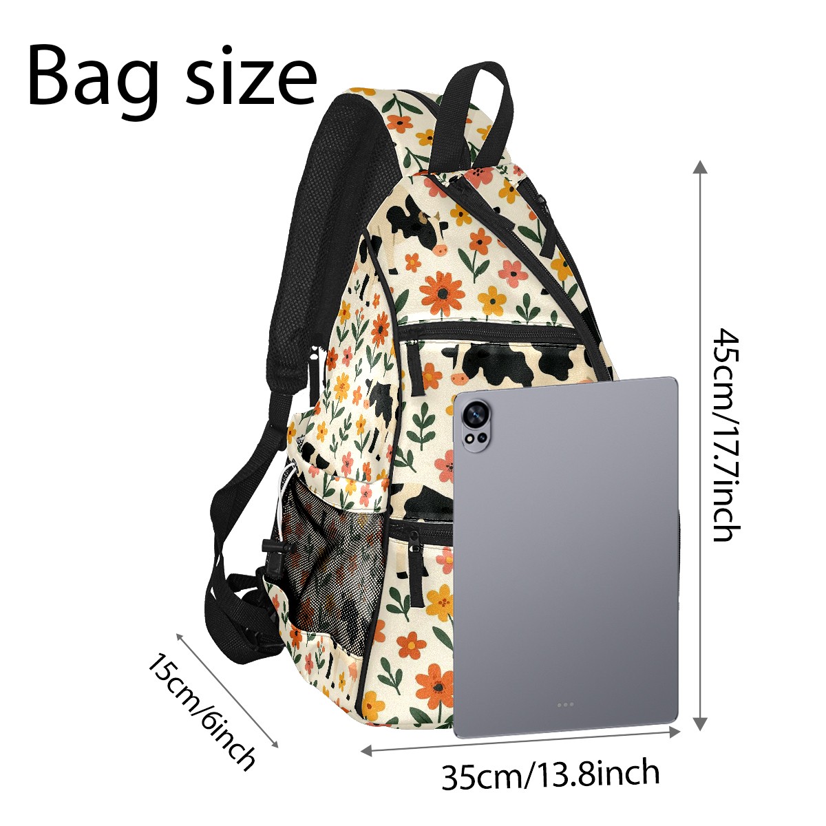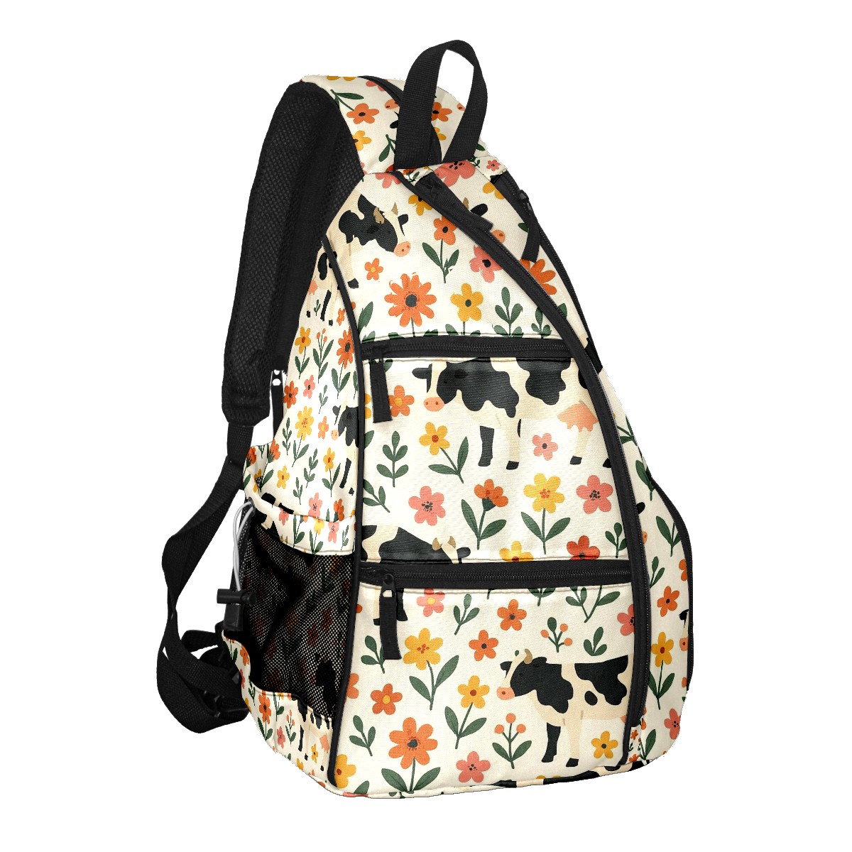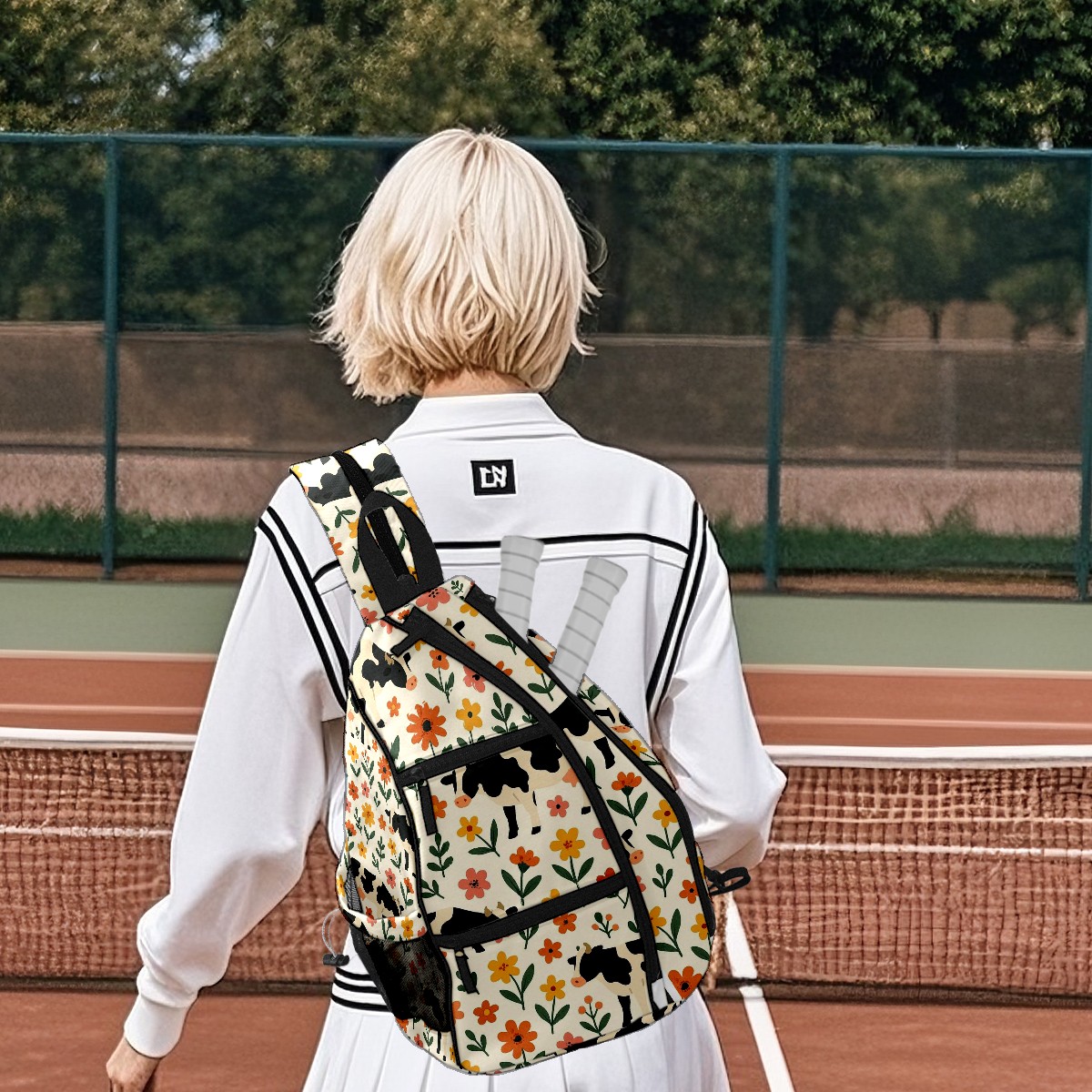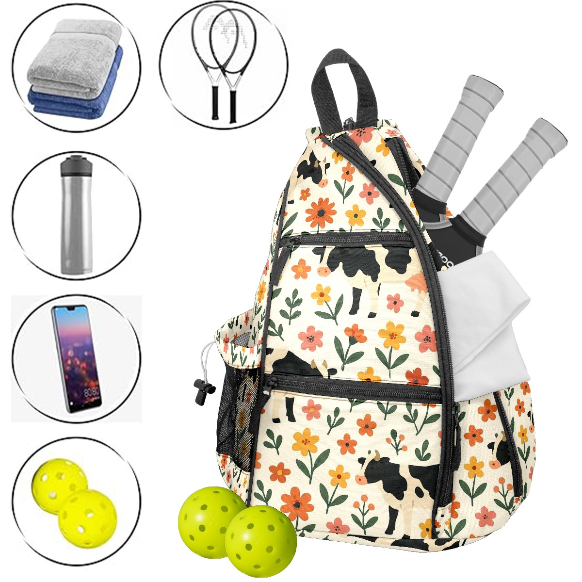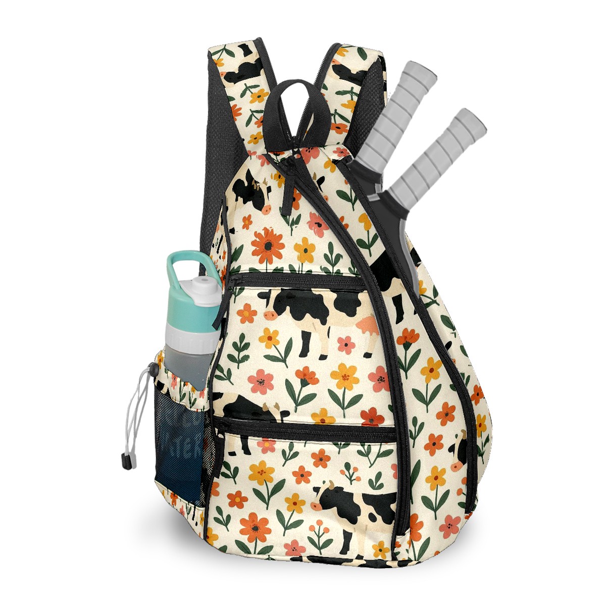 Pickleball Backpack Warm Flower Cow Beige for Women Men - Multi-Pocket Sports Bag with Shoe Compartment | Versatile Tennis Bag & Gifts for Pickleball Lovers