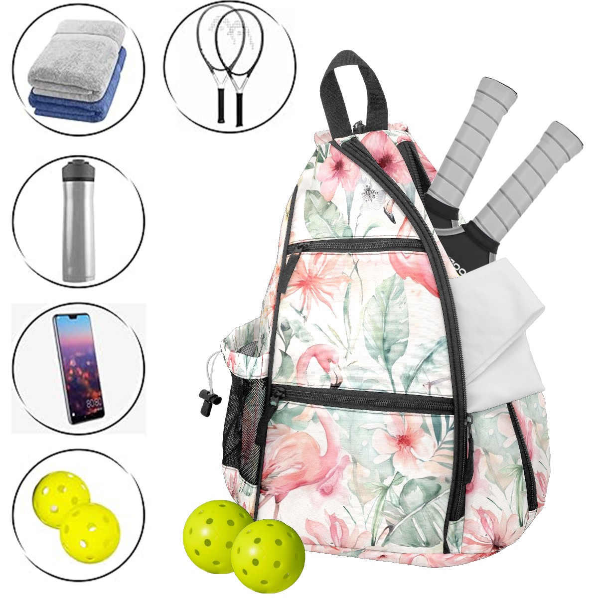 Pickleball Backpack Romantic Flamingo Pink for Women Men - Multi-Pocket Sports Bag with Shoe Compartment | Versatile Tennis Bag & Gifts for Pickleball Lovers