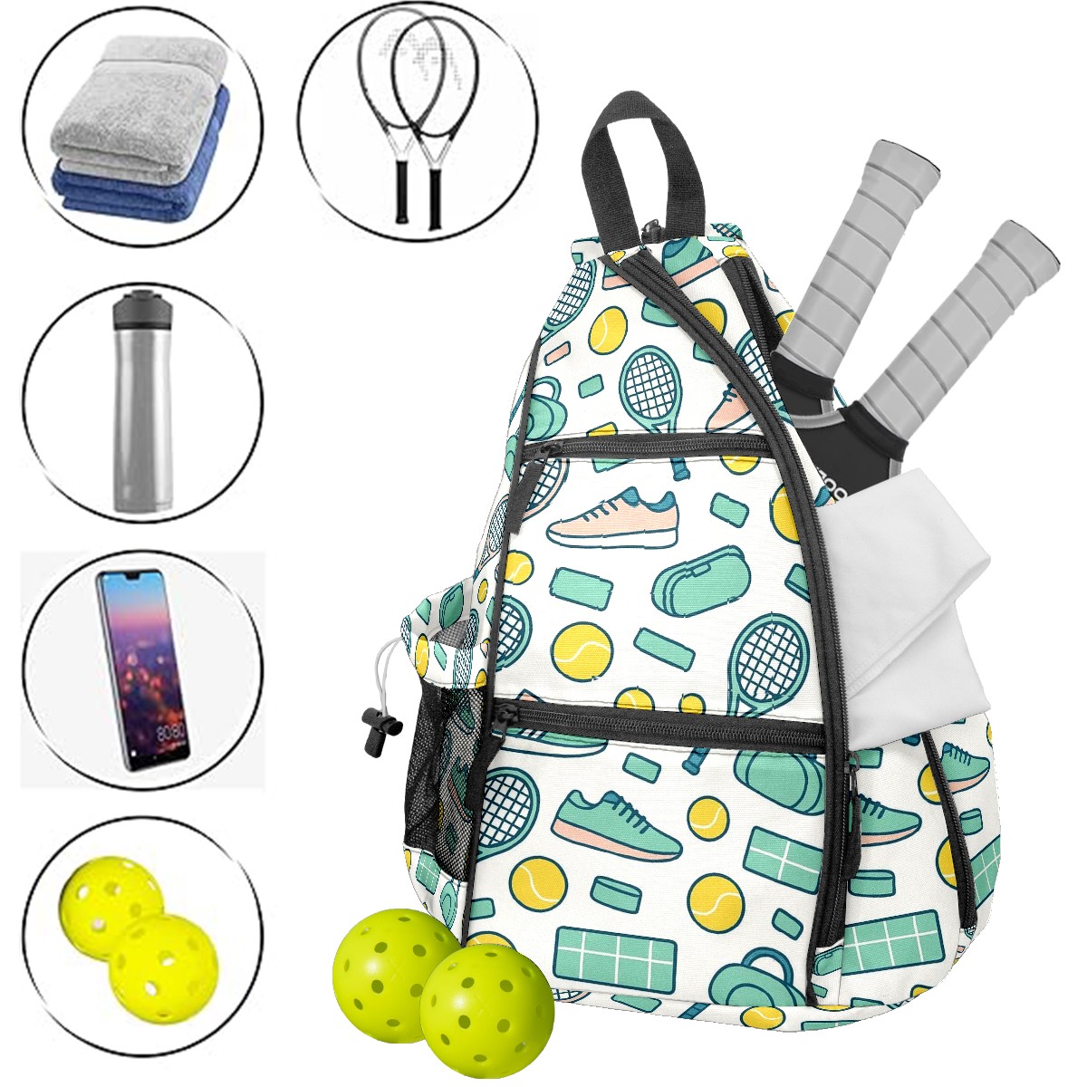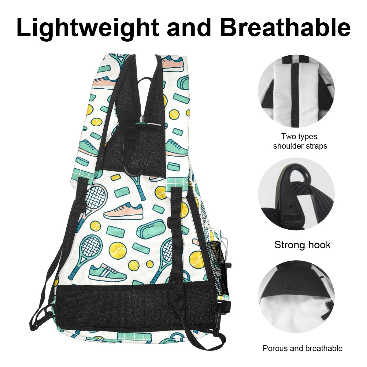 Pickleball Backpack Sport White for Women Men - Multi-Pocket Sports Bag with Shoe Compartment | Versatile Tennis Bag & Gifts for Pickleball Lovers