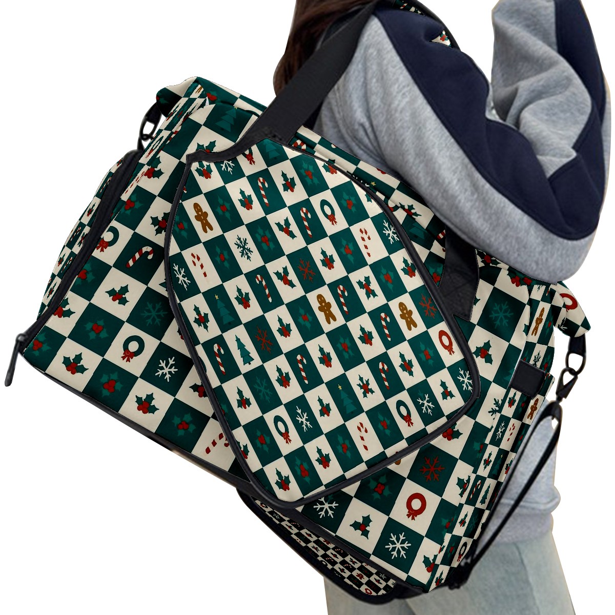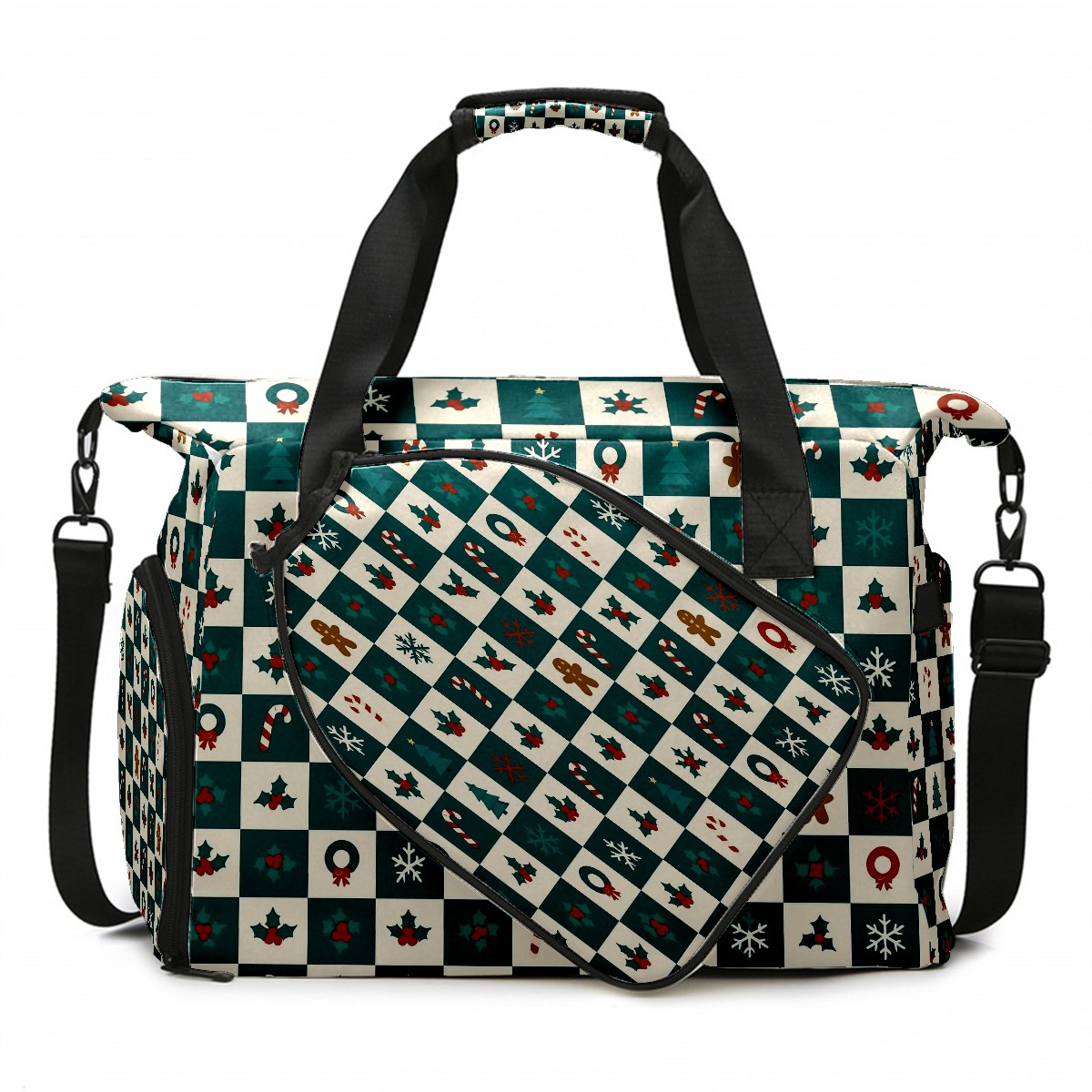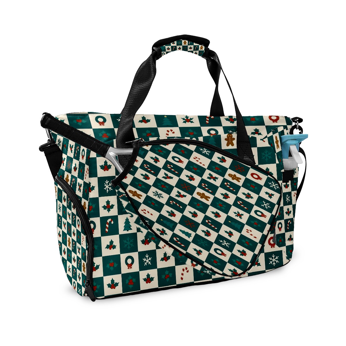 Pickleball Bag Backpack - Twill Fabric Gym Bag with Ventilated Shoe Compartment & Wet Pocket, Multiuse for Pickleball Gear, Travel, Workout Christmas Checkerboard Green White Checkered