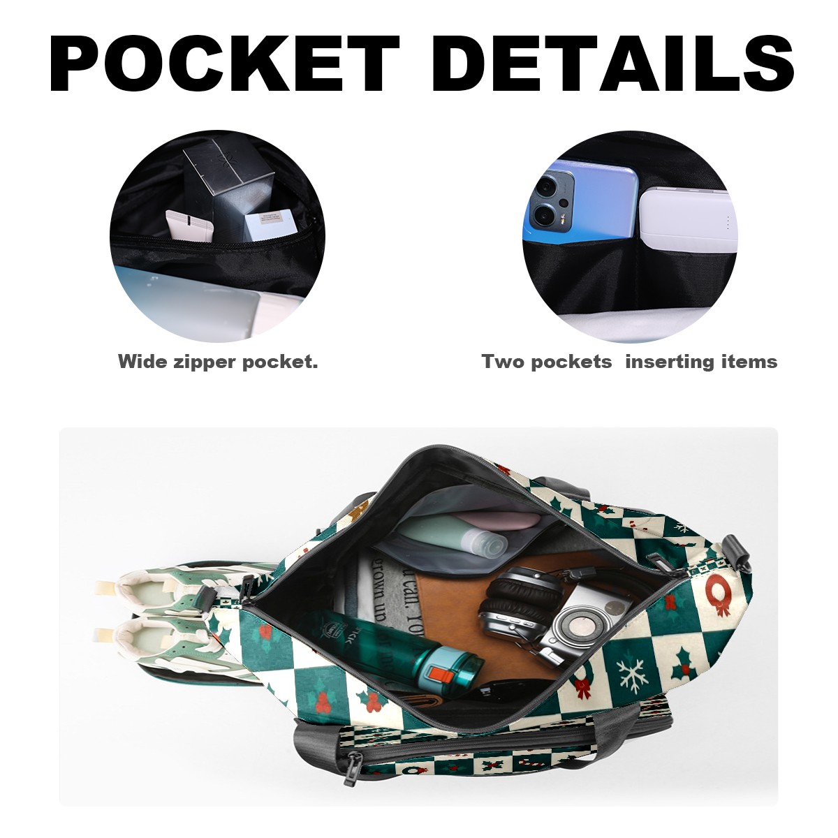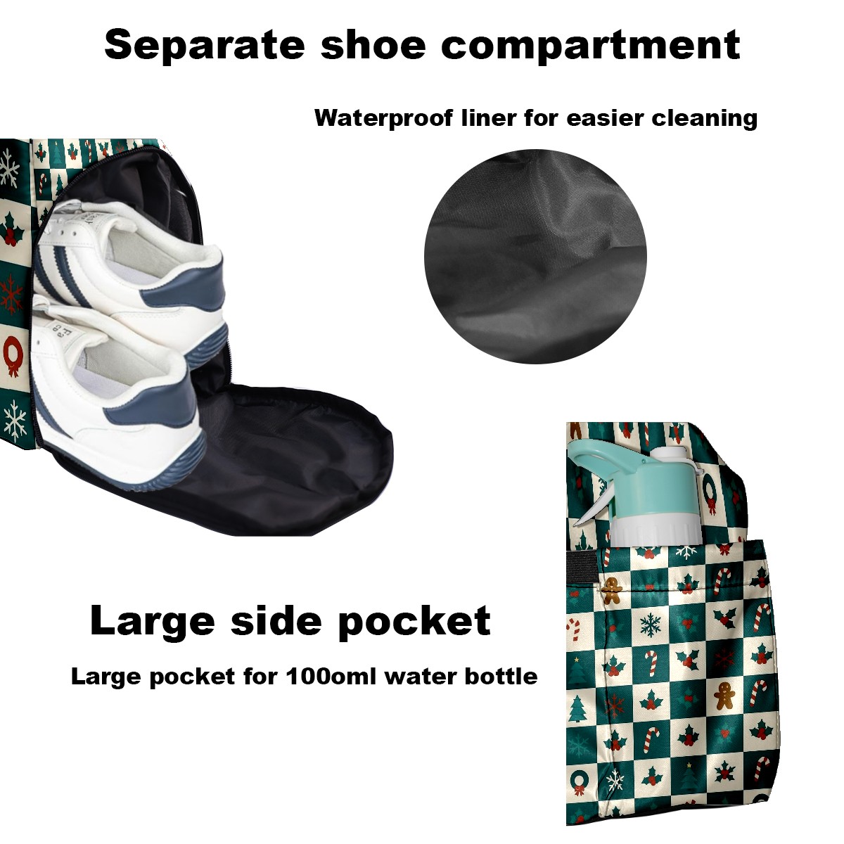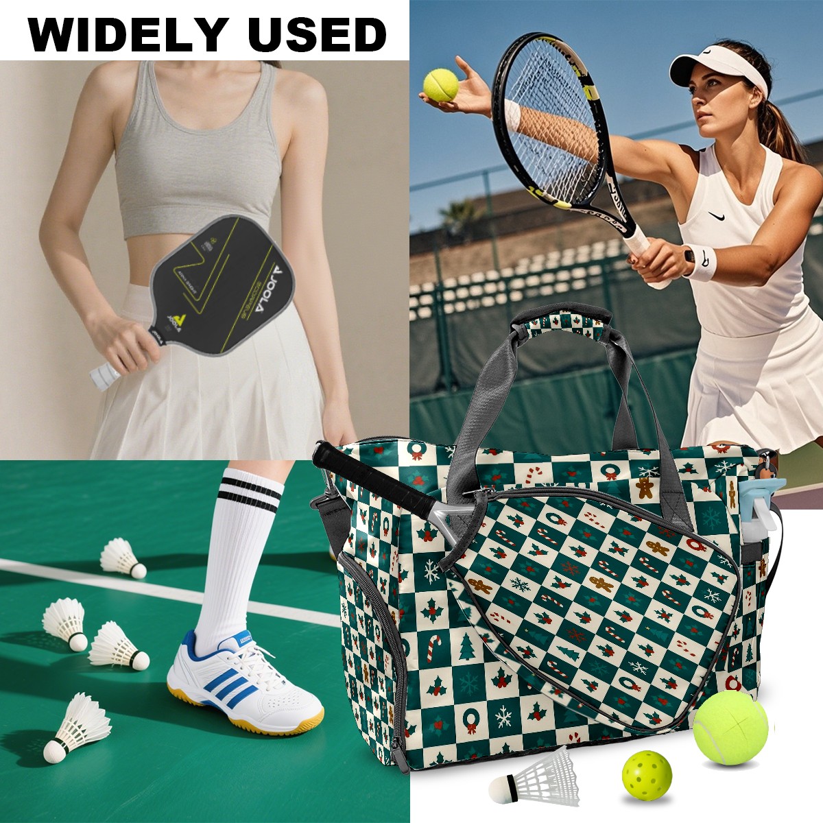 Pickleball Bag Backpack - Twill Fabric Gym Bag with Ventilated Shoe Compartment & Wet Pocket, Multiuse for Pickleball Gear, Travel, Workout Christmas Checkerboard Green White Checkered