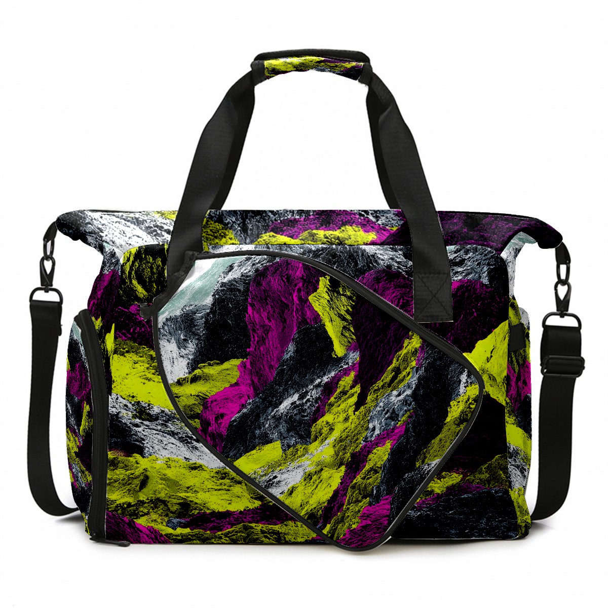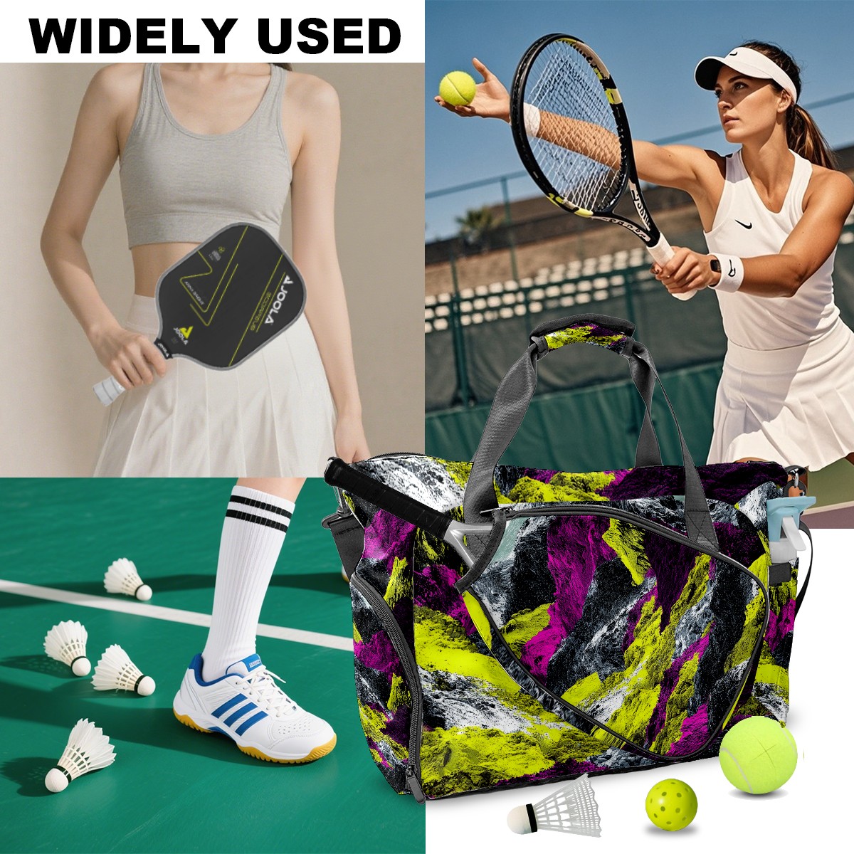 Women's Tennis Bag Large Capacity - Ventilated Shoe Compartment & Waterproof Wet Pocket, Multi-Functional Gym Duffel Bag for Tennis, Yoga, Travel (Vibrant Landscape Purple)