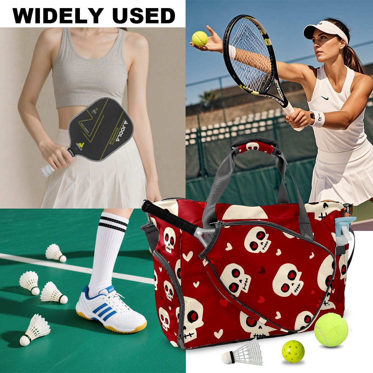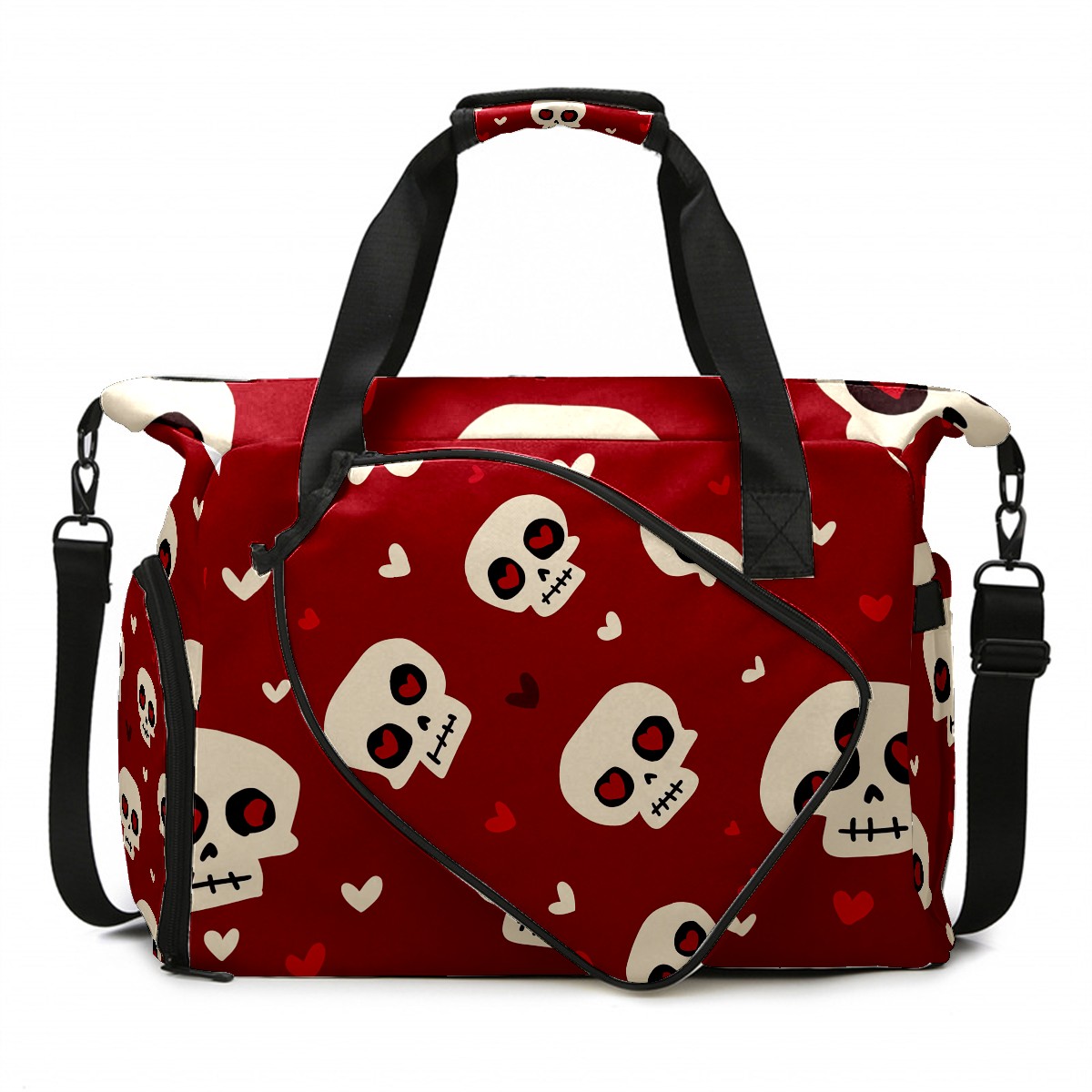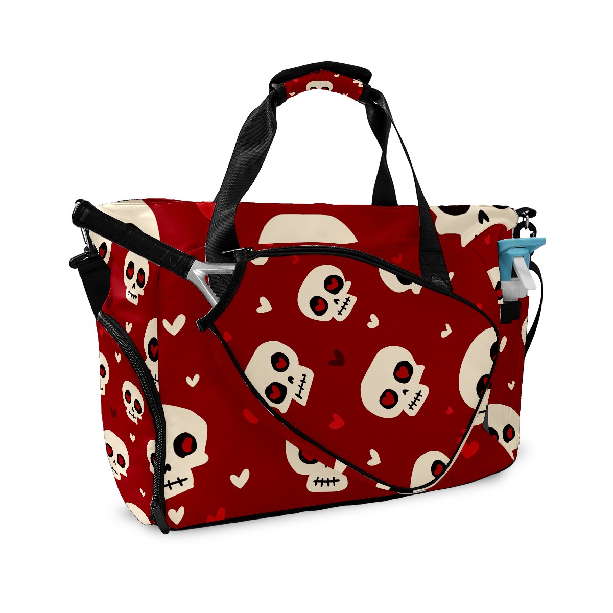 Women's Tennis Bag Large Capacity - Ventilated Shoe Compartment & Waterproof Wet Pocket, Multi-Functional Gym Duffel Bag for Tennis, Yoga, Travel (Cool Skull Red)