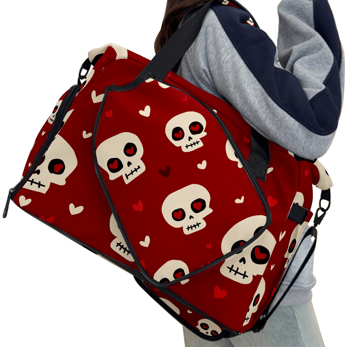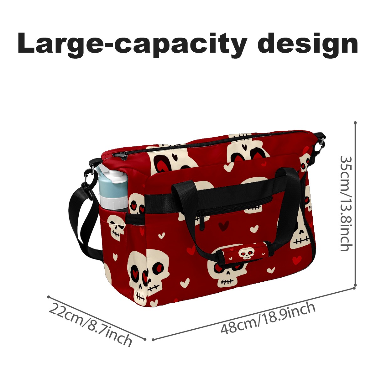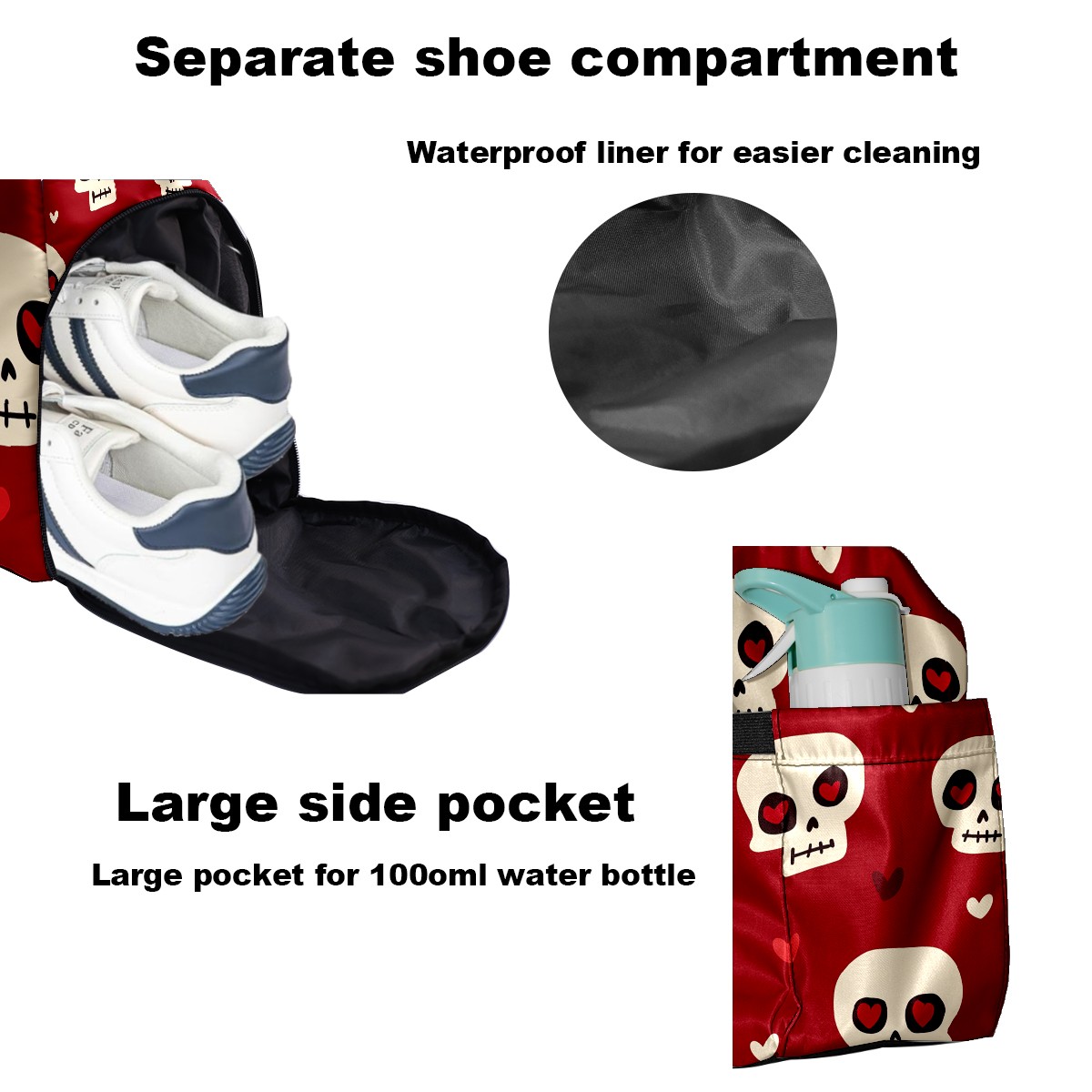 Women's Tennis Bag Large Capacity - Ventilated Shoe Compartment & Waterproof Wet Pocket, Multi-Functional Gym Duffel Bag for Tennis, Yoga, Travel (Cool Skull Red)