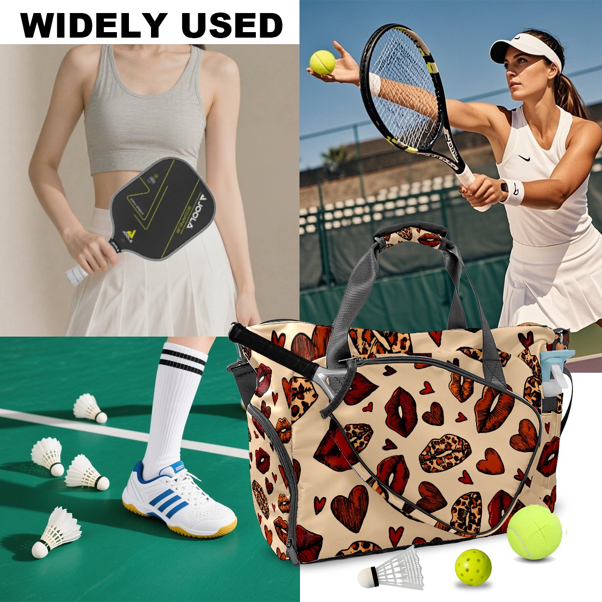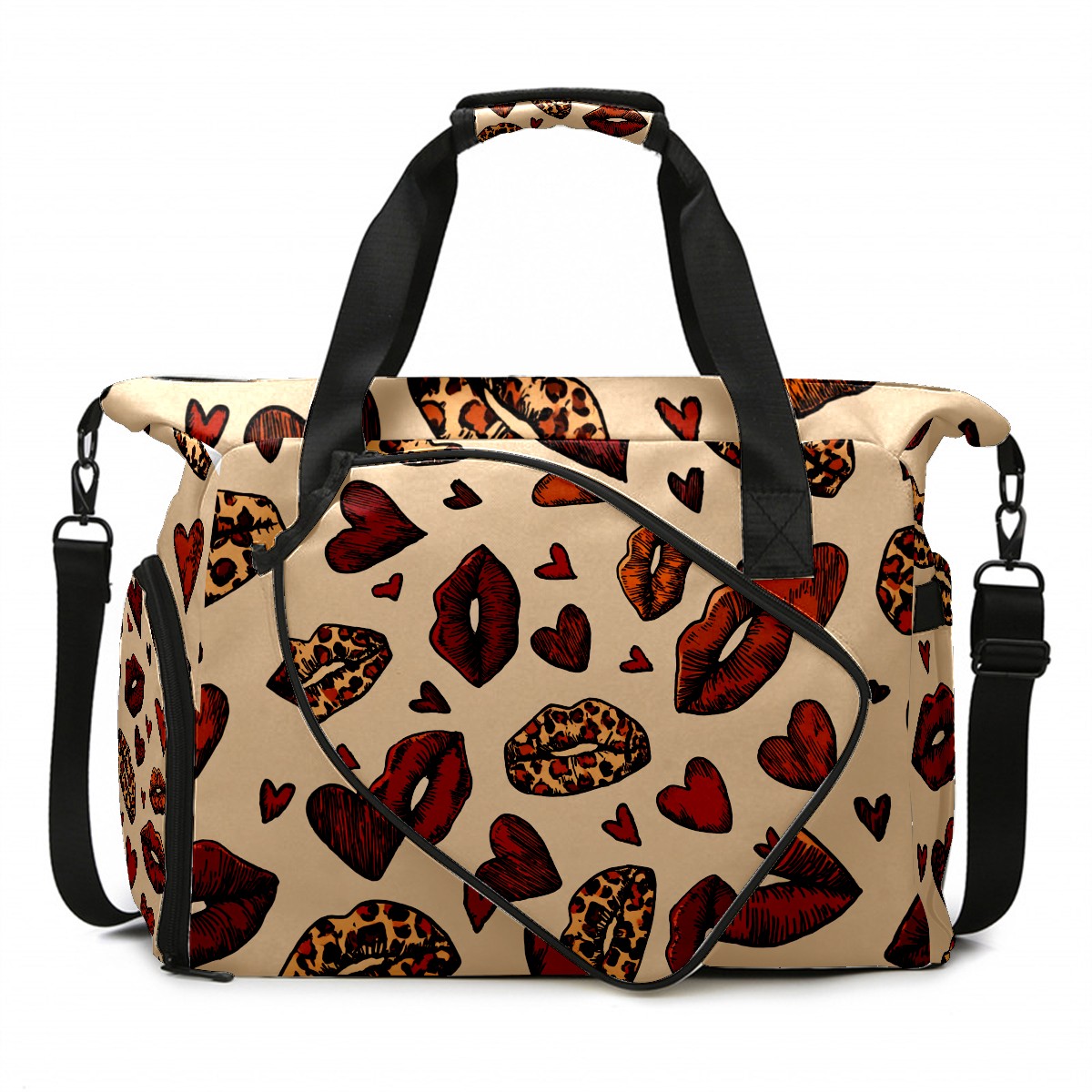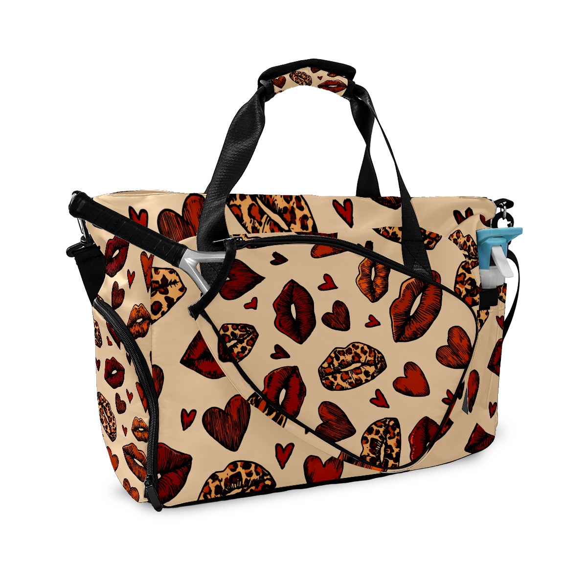 Women's Tennis Bag Large Capacity - Ventilated Shoe Compartment & Waterproof Wet Pocket, Multi-Functional Gym Duffel Bag for Tennis, Yoga, Travel (Sexy Lip Leopard Brown)