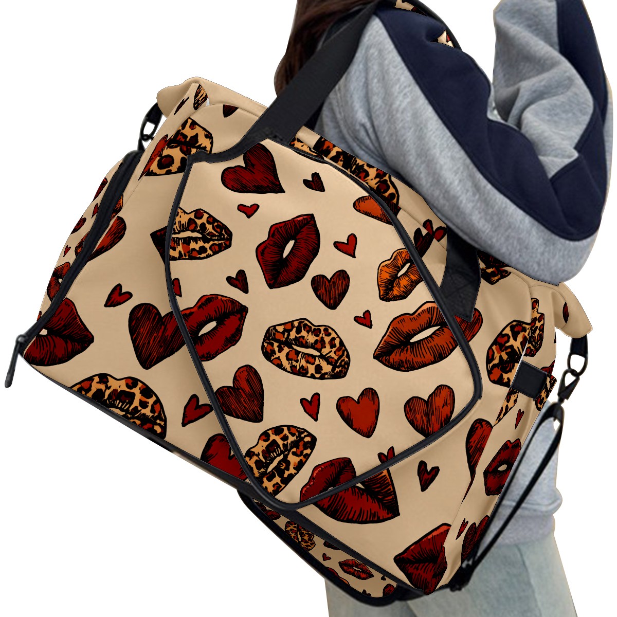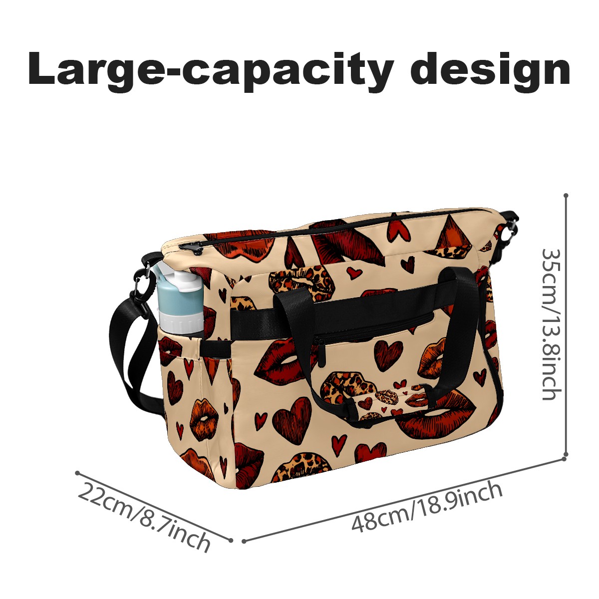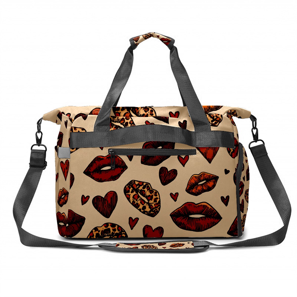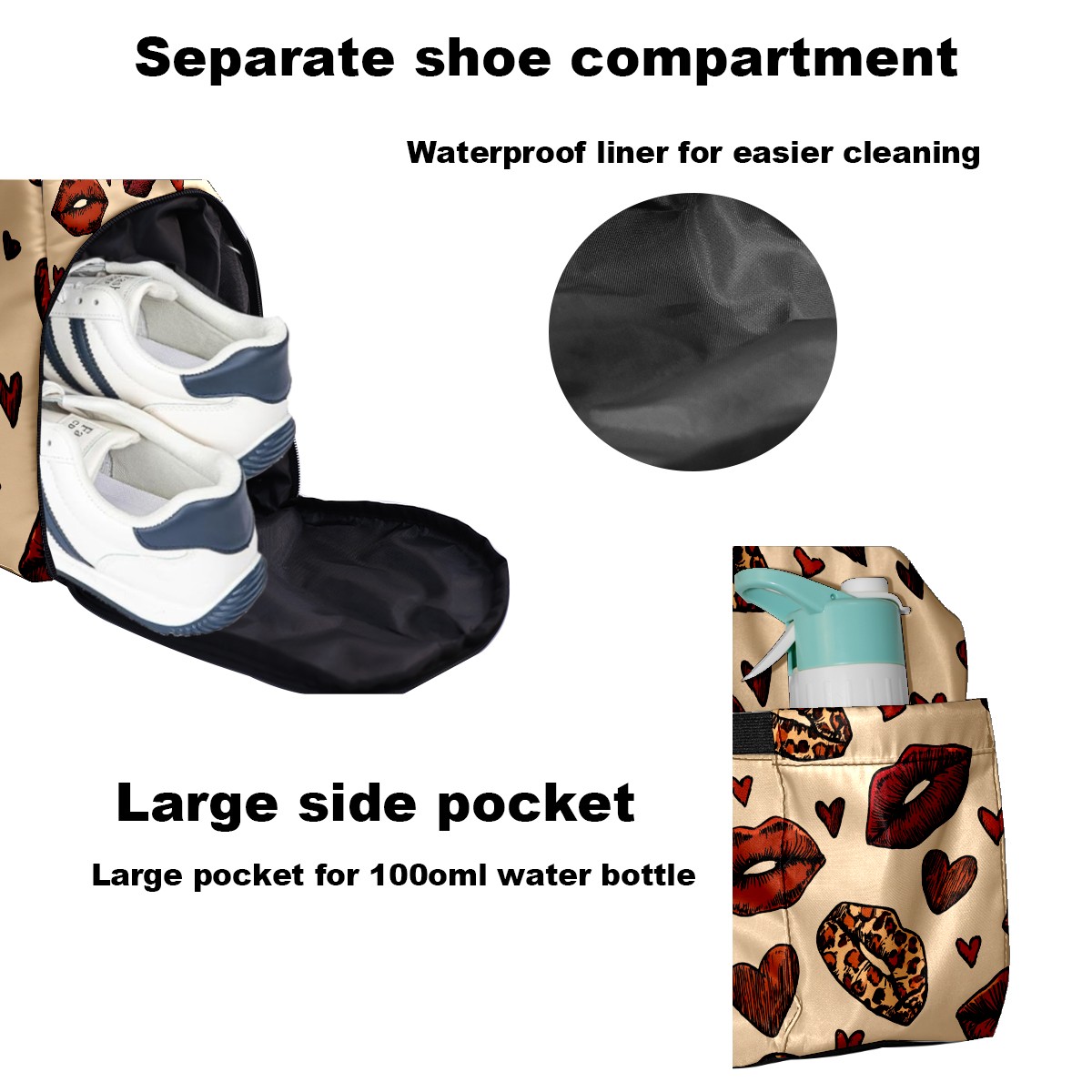 Women's Tennis Bag Large Capacity - Ventilated Shoe Compartment & Waterproof Wet Pocket, Multi-Functional Gym Duffel Bag for Tennis, Yoga, Travel (Sexy Lip Leopard Brown)