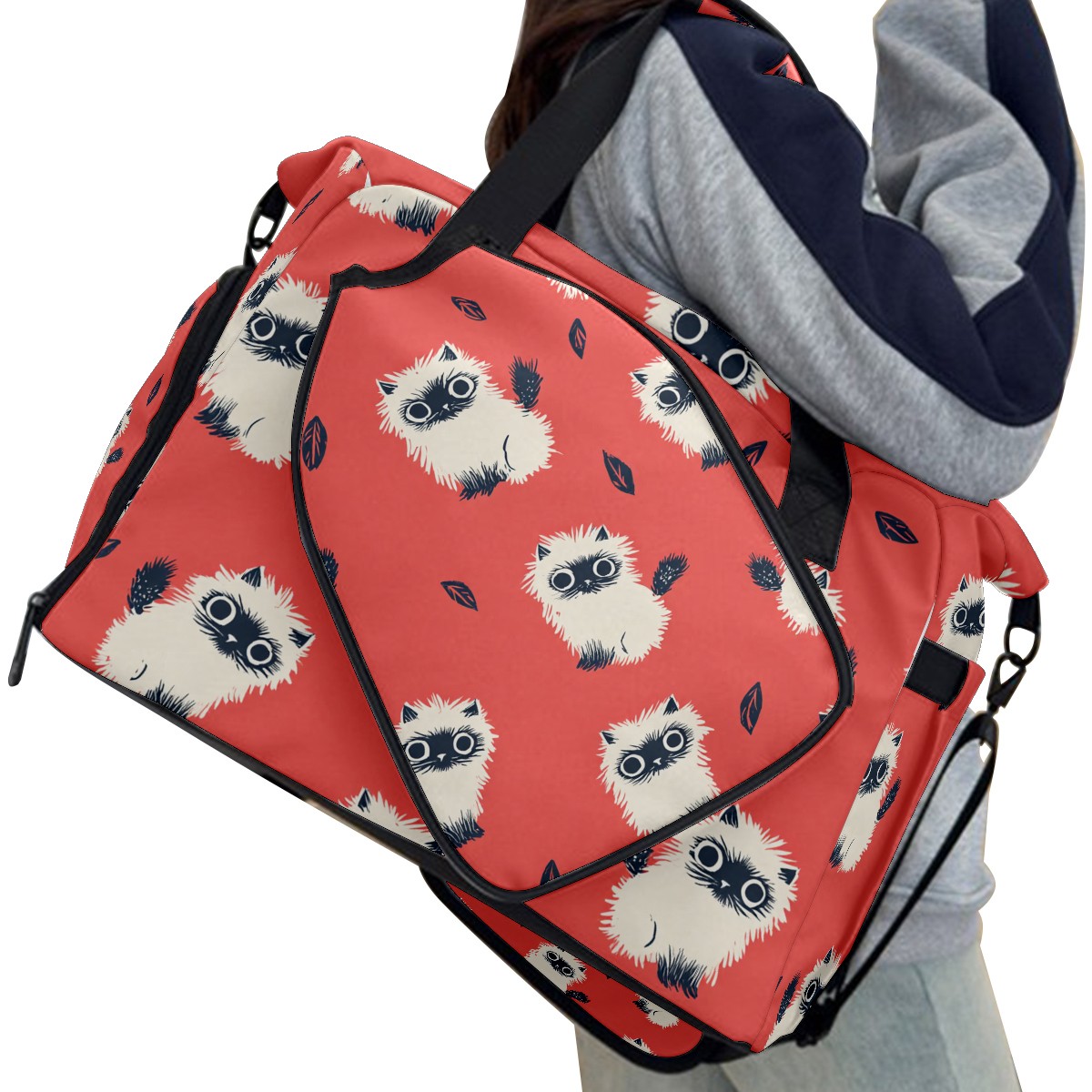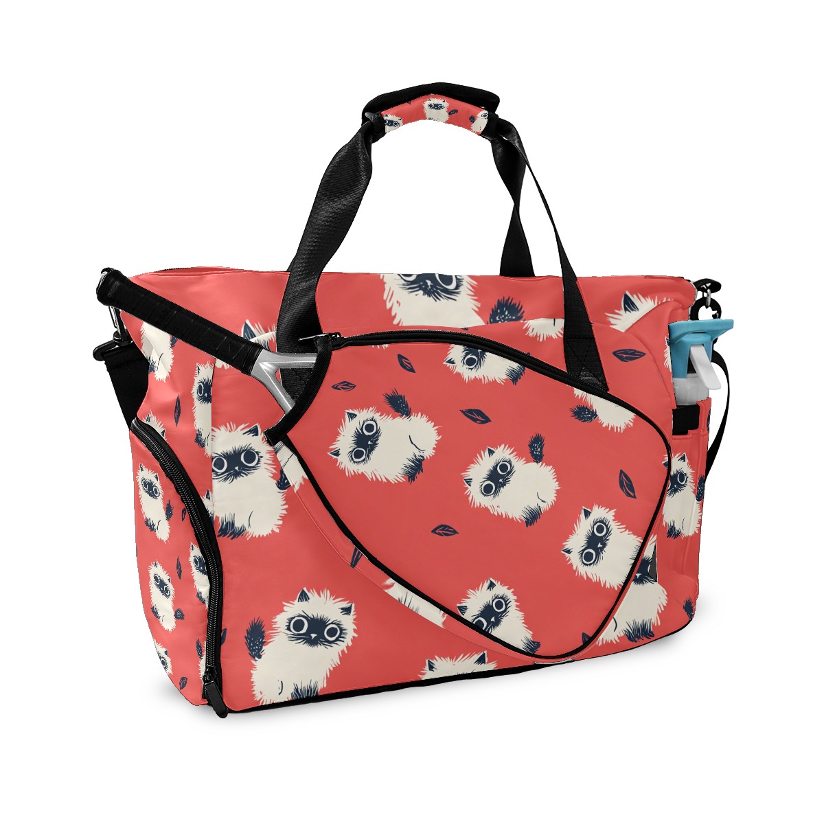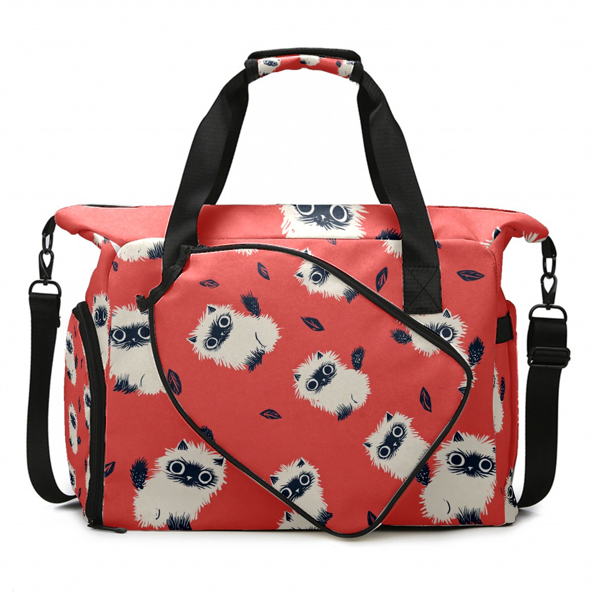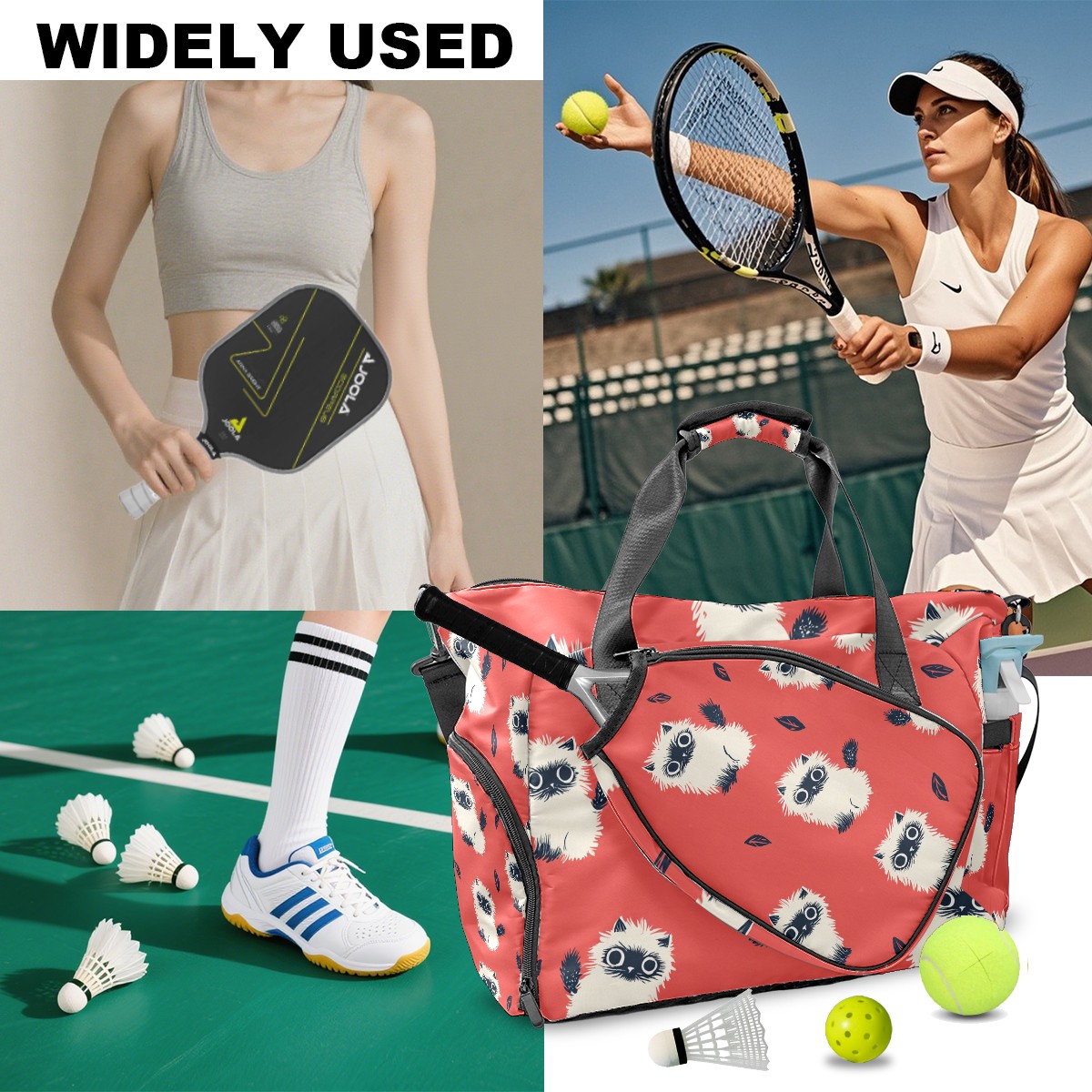 Women's Tennis Bag Large Capacity - Ventilated Shoe Compartment & Waterproof Wet Pocket, Multi-Functional Gym Duffel Bag for Tennis, Yoga, Travel (Cute Raccoon Pink)