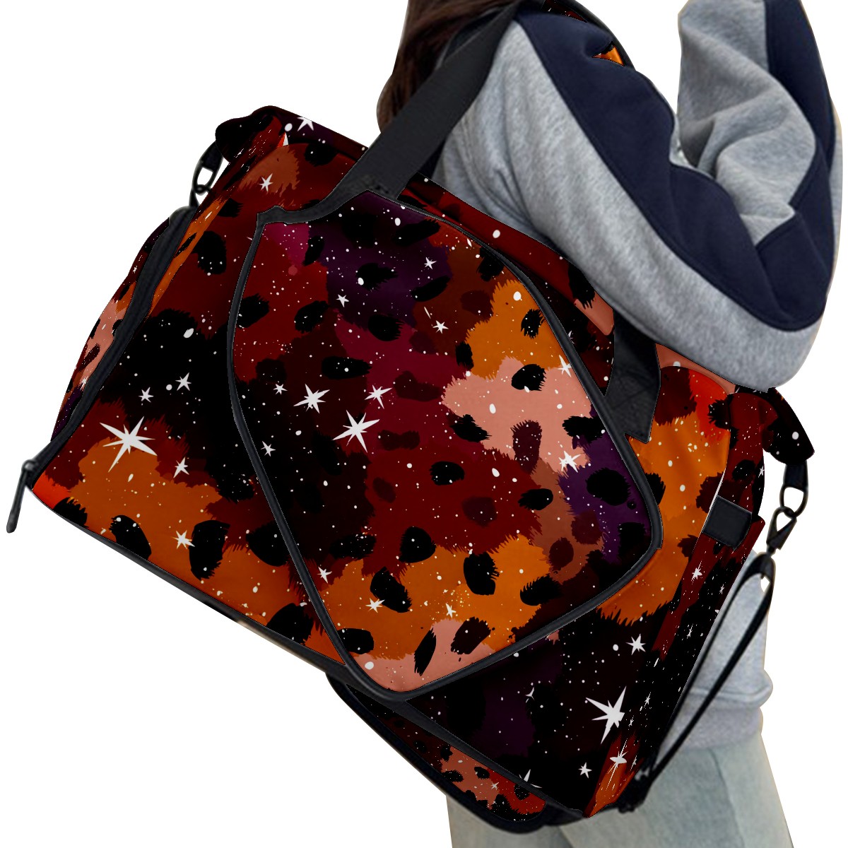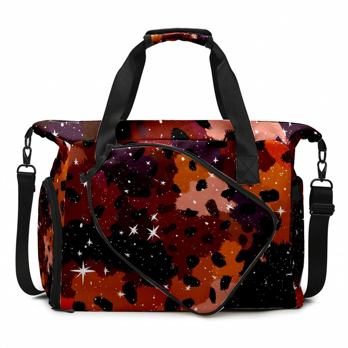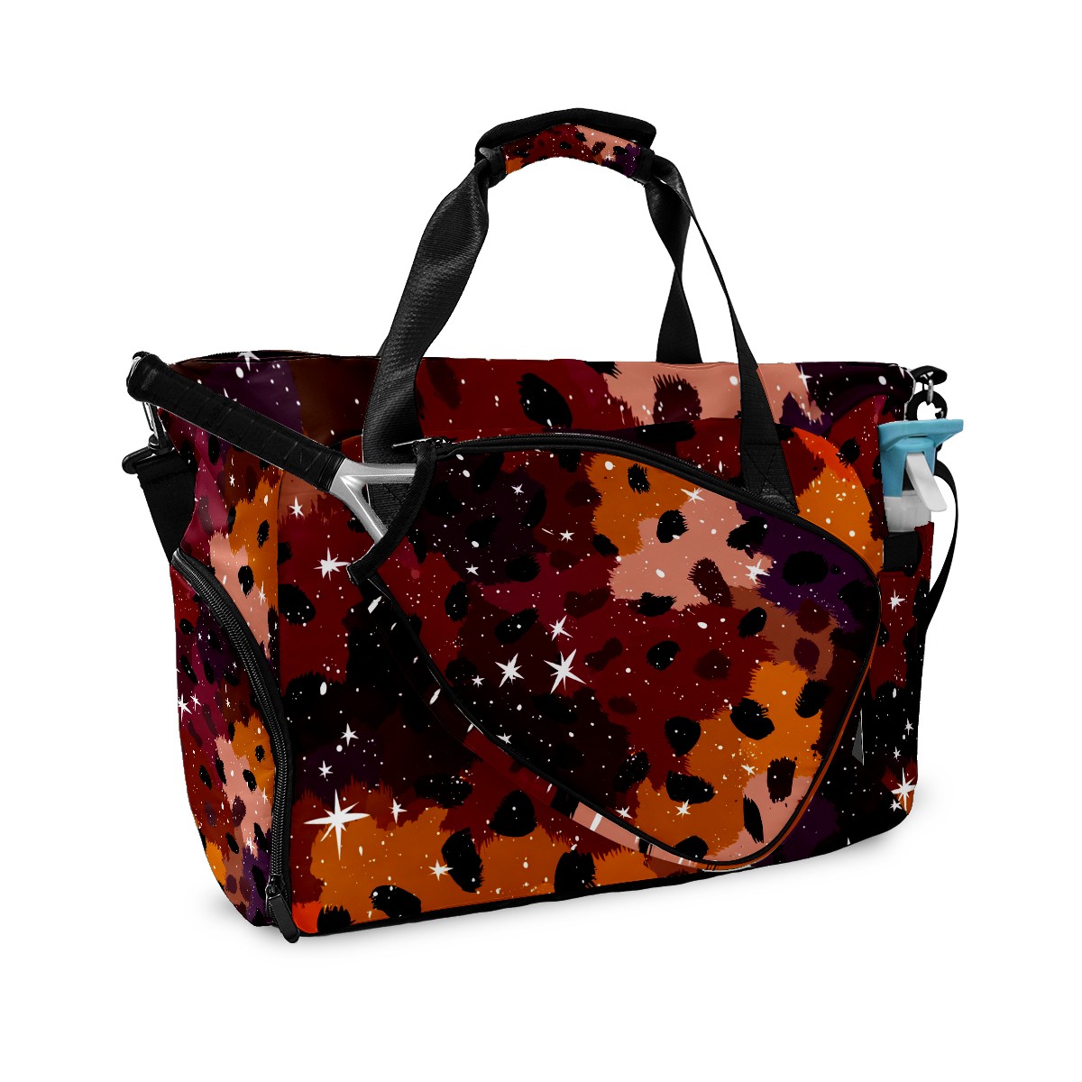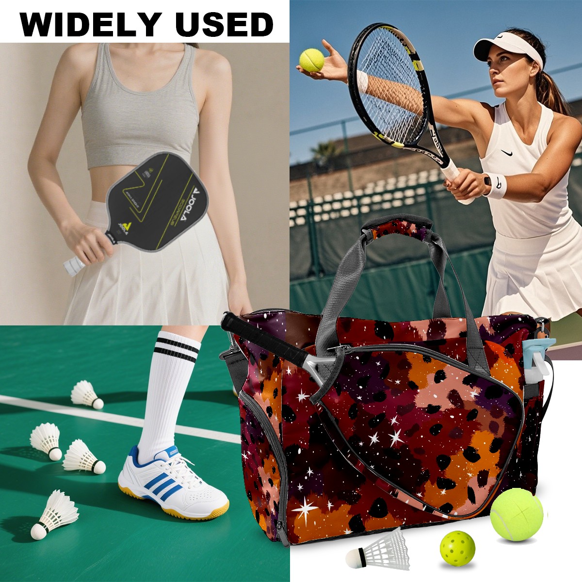 Women's Tennis Bag Large Capacity - Ventilated Shoe Compartment & Waterproof Wet Pocket, Multi-Functional Gym Duffel Bag for Tennis, Yoga, Travel (Shiny Leopard Purple)