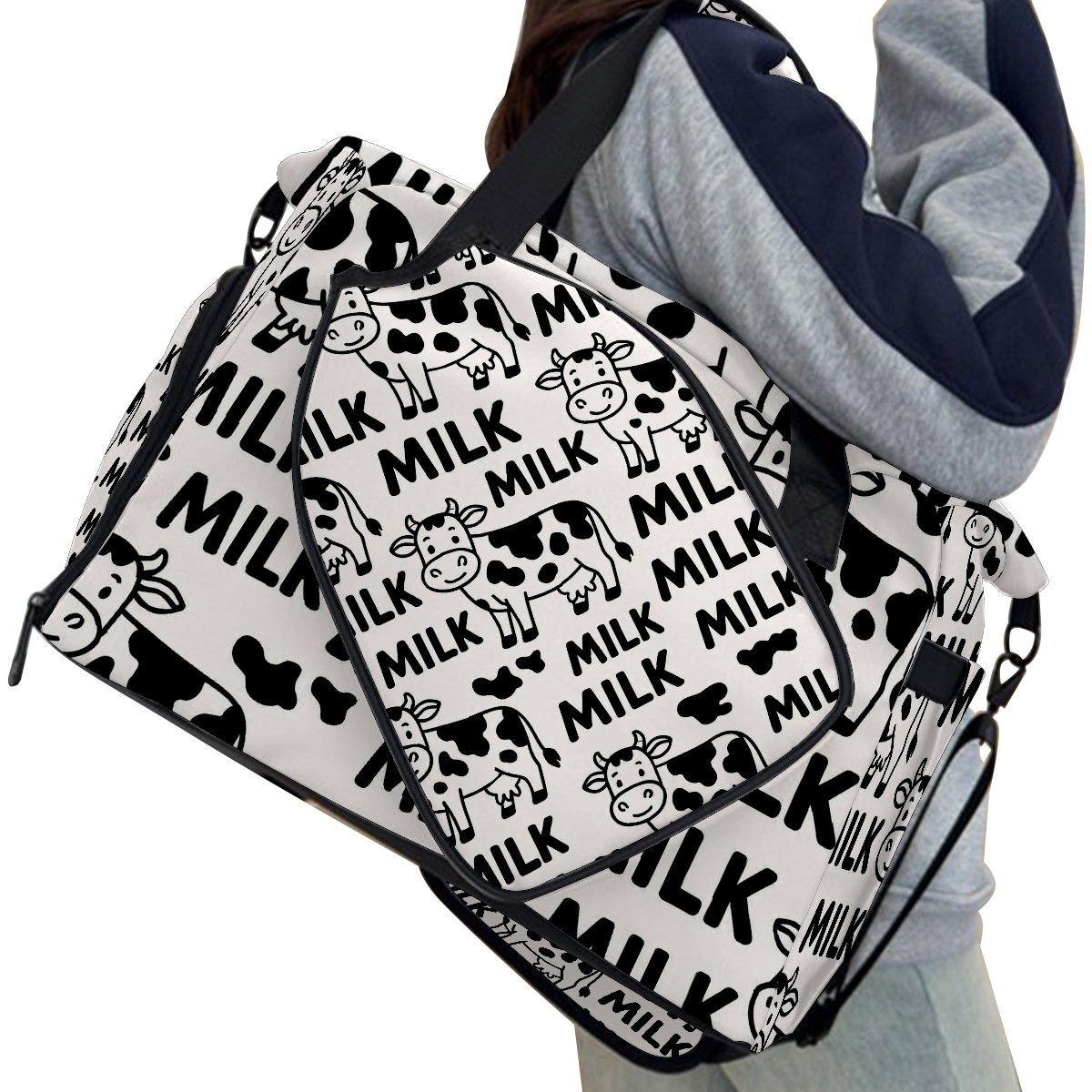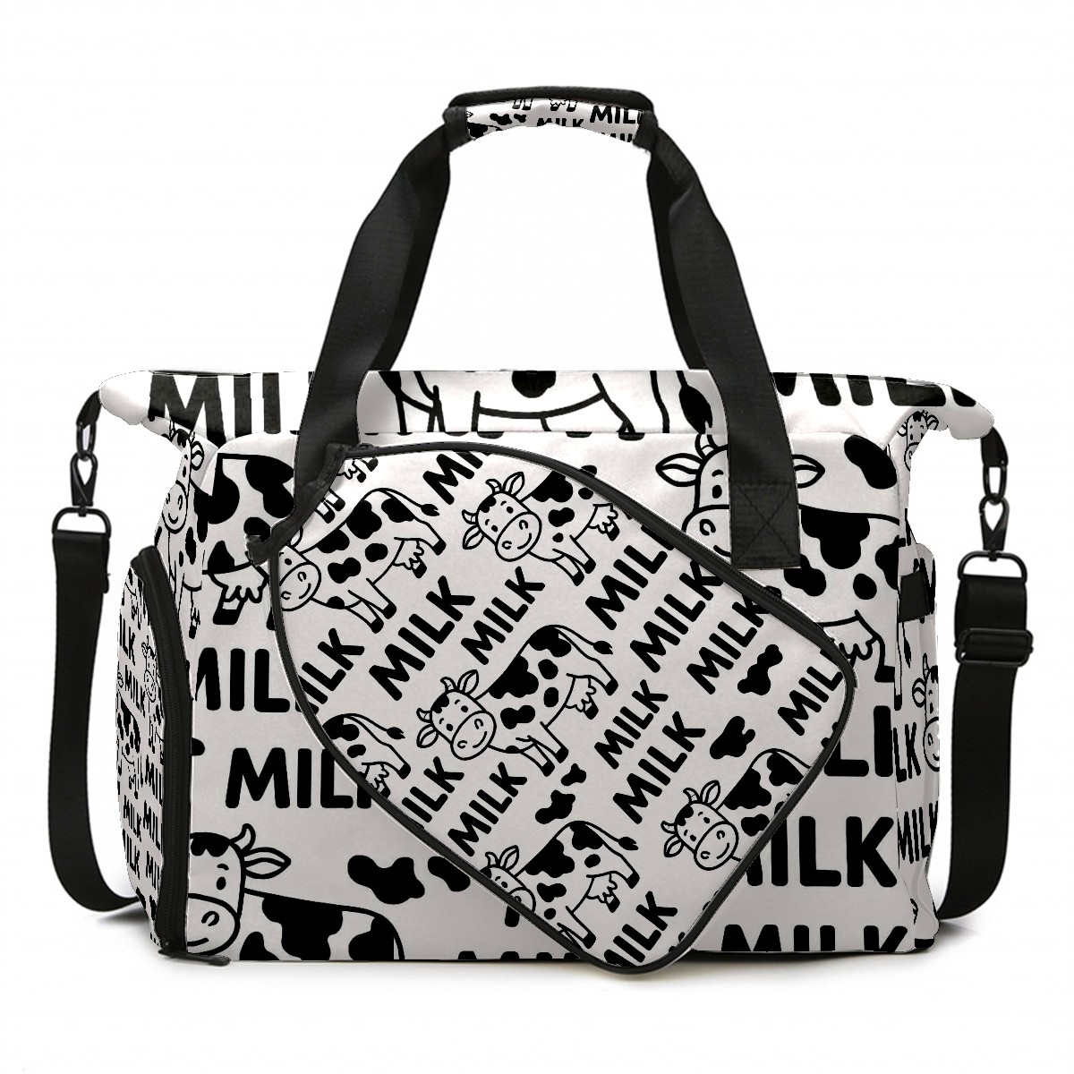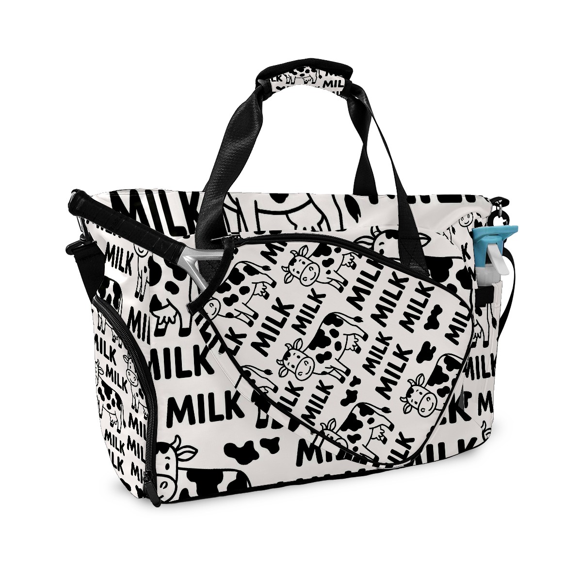 Women's Tennis Bag Large Capacity - Ventilated Shoe Compartment & Waterproof Wet Pocket, Multi-Functional Gym Duffel Bag for Tennis, Yoga, Travel (Trendy Cow Black)