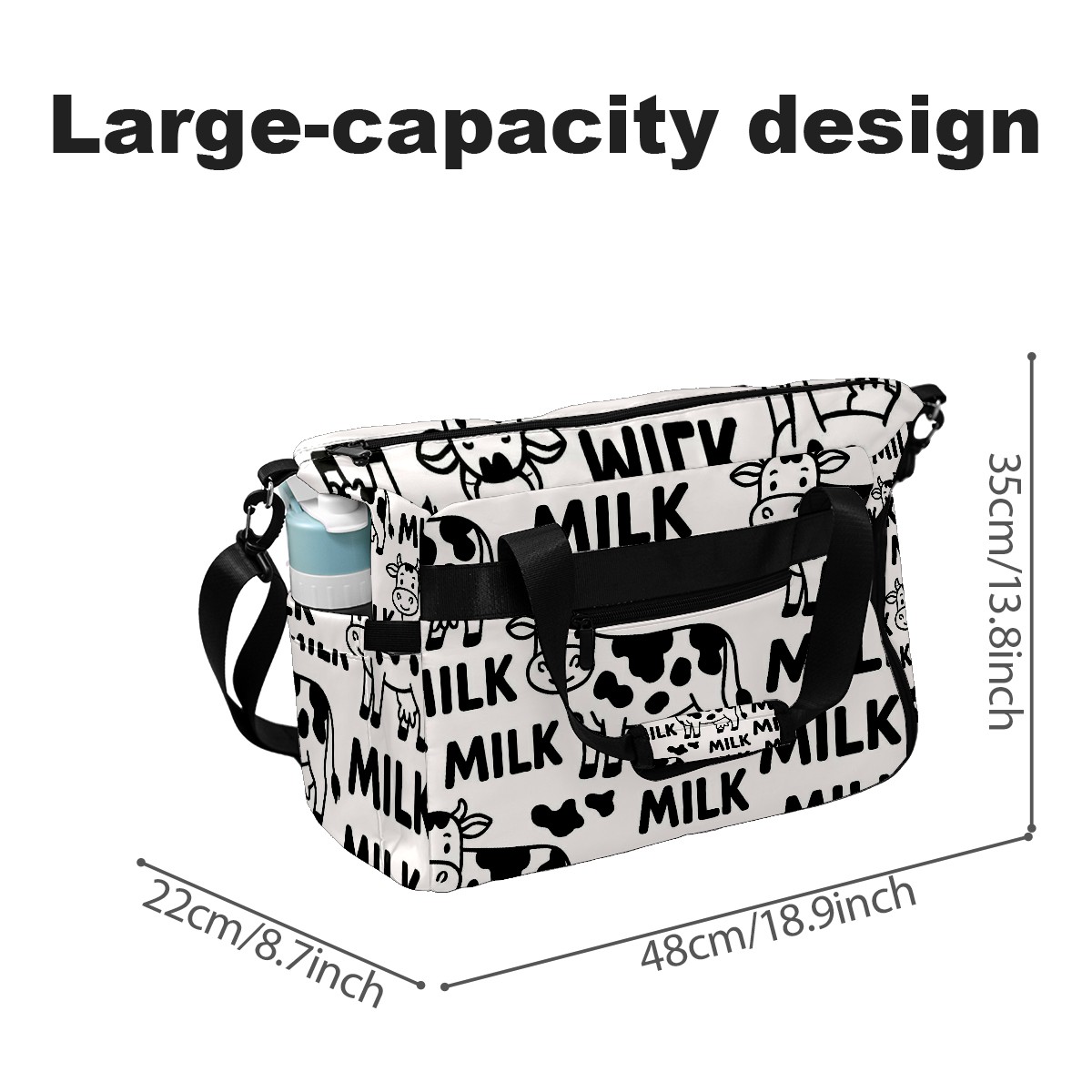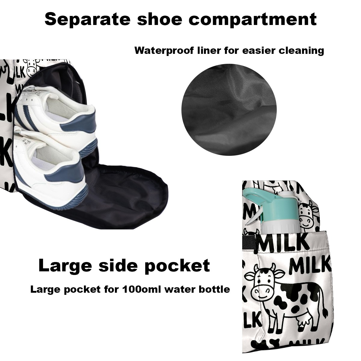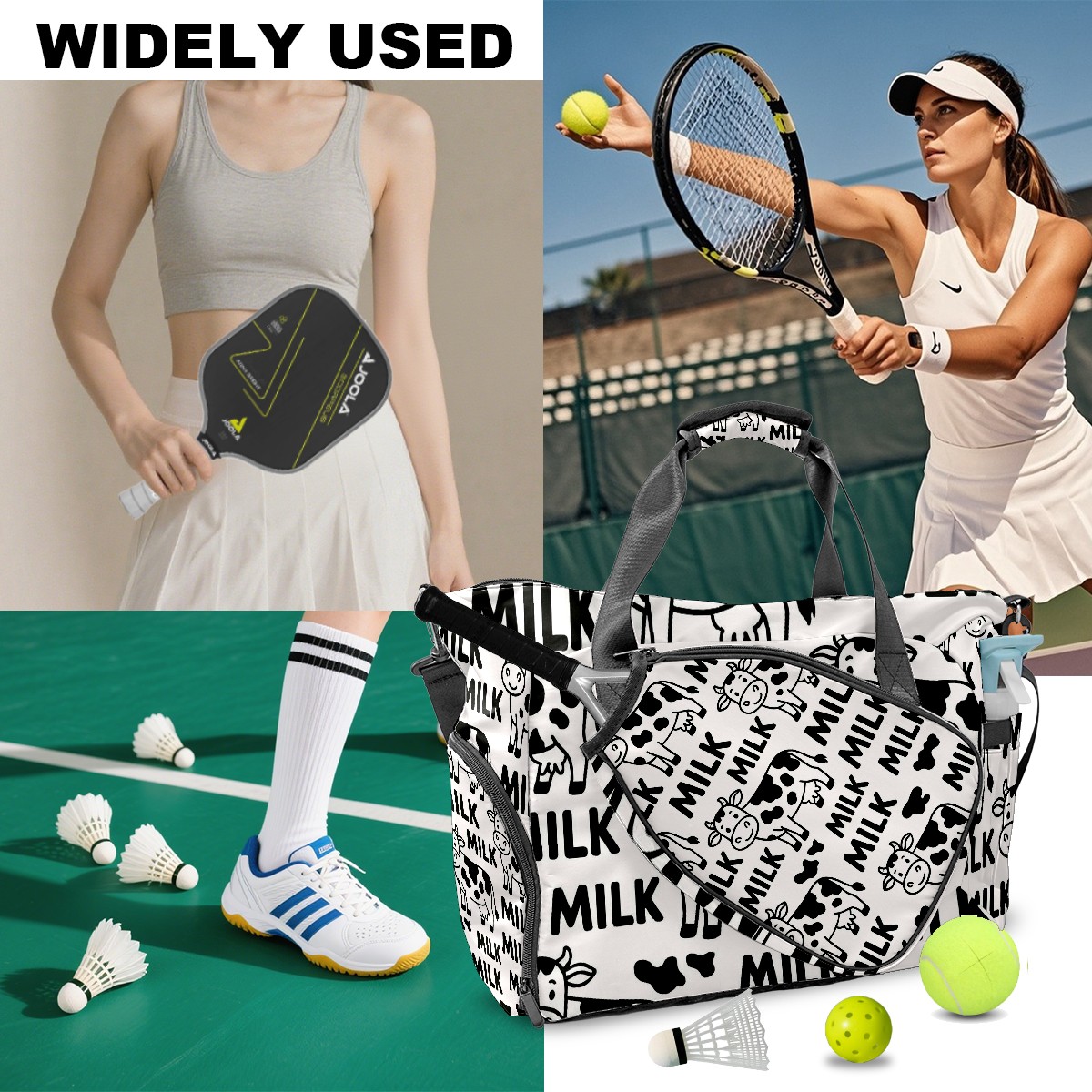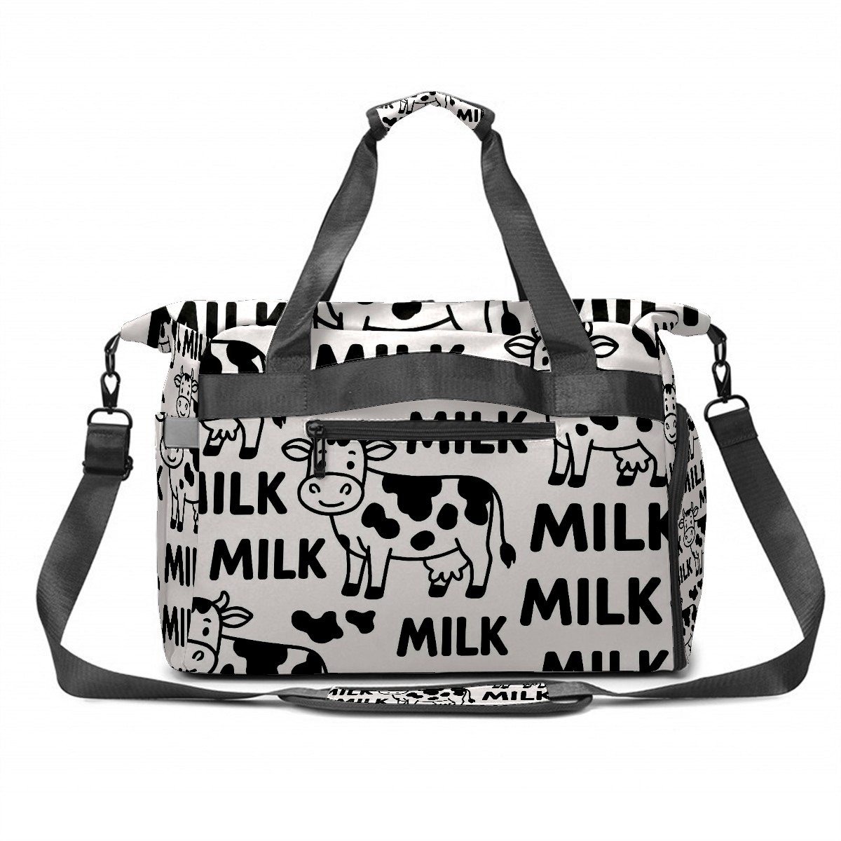 Women's Tennis Bag Large Capacity - Ventilated Shoe Compartment & Waterproof Wet Pocket, Multi-Functional Gym Duffel Bag for Tennis, Yoga, Travel (Trendy Cow Black)