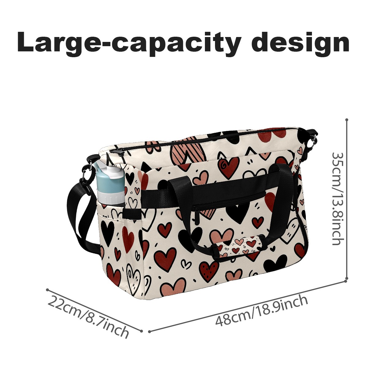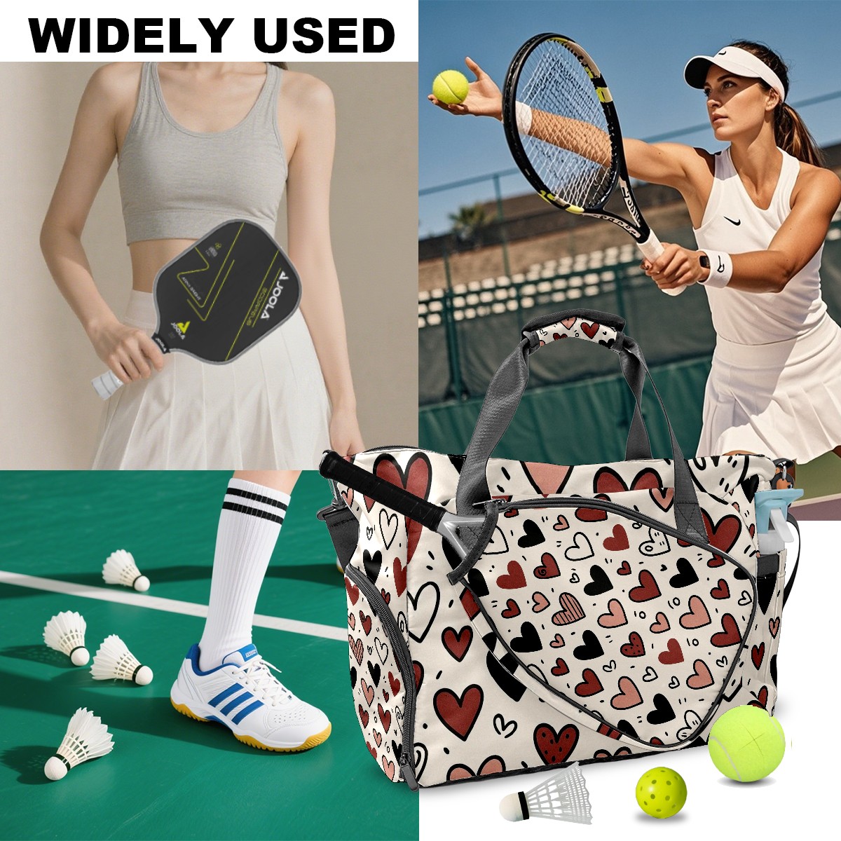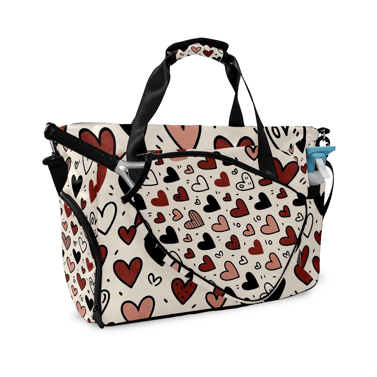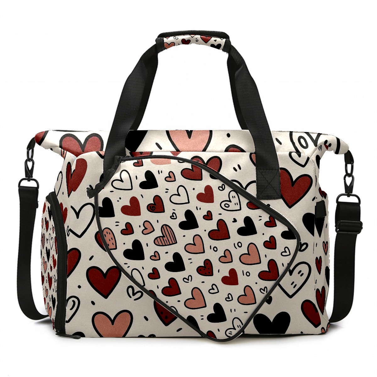 Women's Tennis Bag Large Capacity - Ventilated Shoe Compartment & Waterproof Wet Pocket, Multi-Functional Gym Duffel Bag for Tennis, Yoga, Travel (Loving Heart Black)
