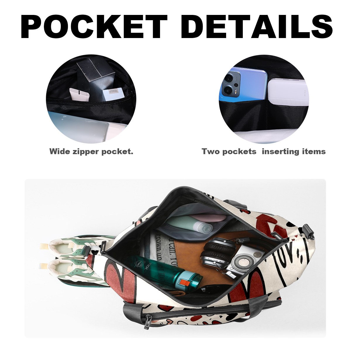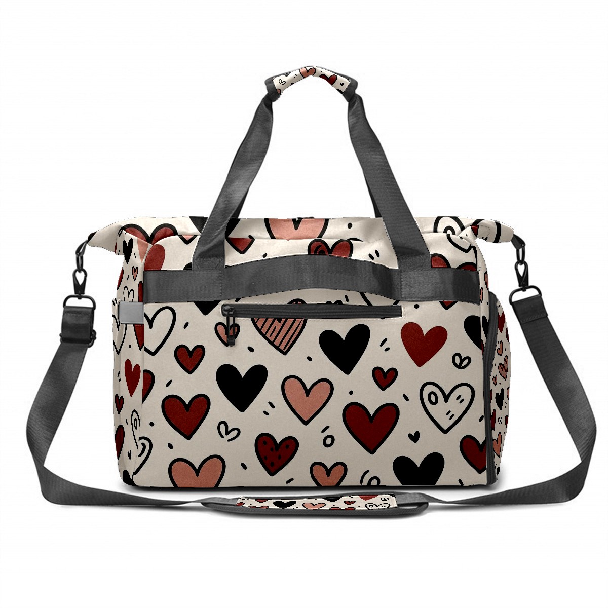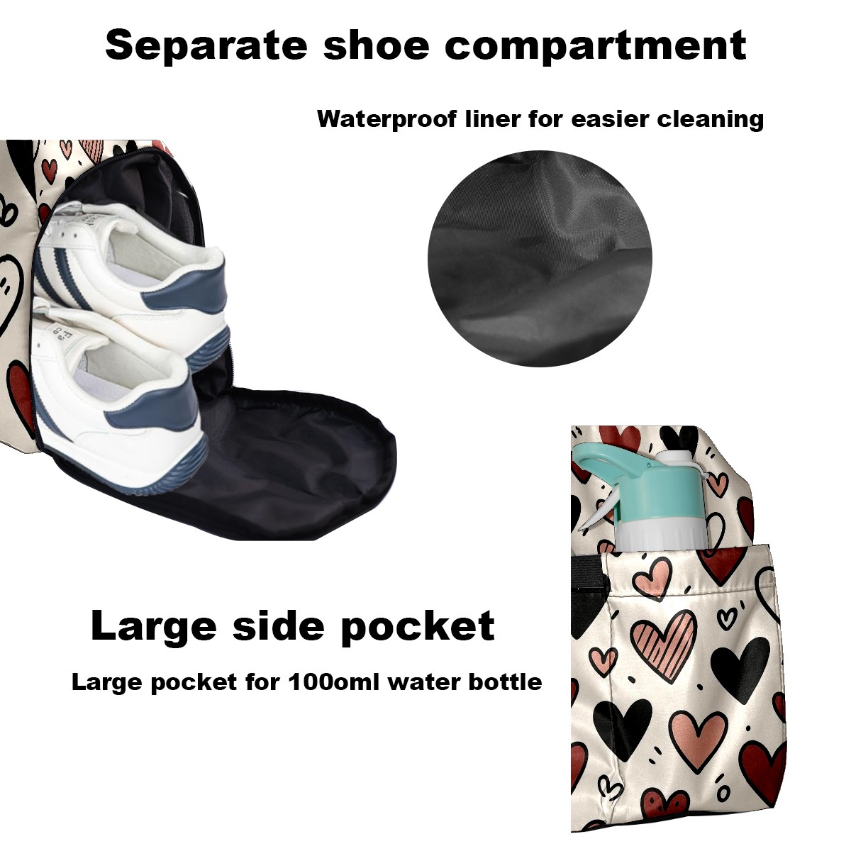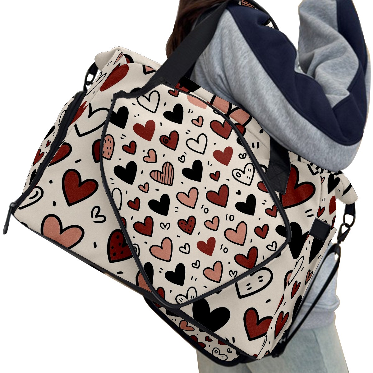 Women's Tennis Bag Large Capacity - Ventilated Shoe Compartment & Waterproof Wet Pocket, Multi-Functional Gym Duffel Bag for Tennis, Yoga, Travel (Loving Heart Black)