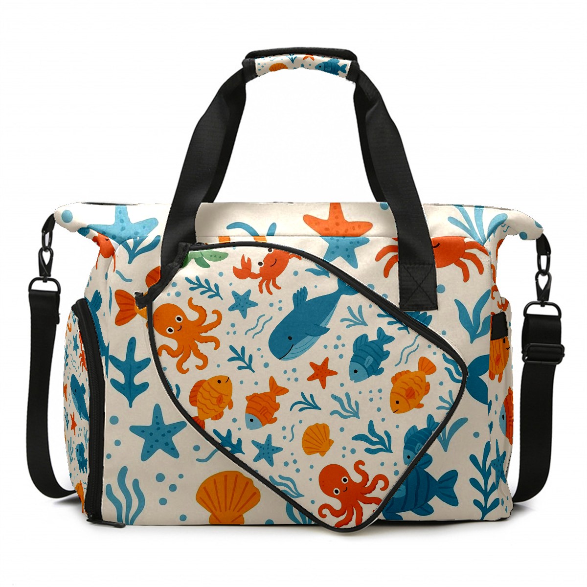 Women's Tennis Bag Large Capacity - Ventilated Shoe Compartment & Waterproof Wet Pocket, Multi-Functional Gym Duffel Bag for Tennis, Yoga, Travel (Lively Marine Beige)