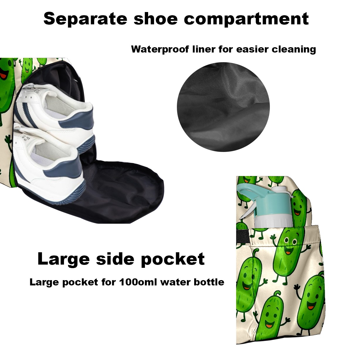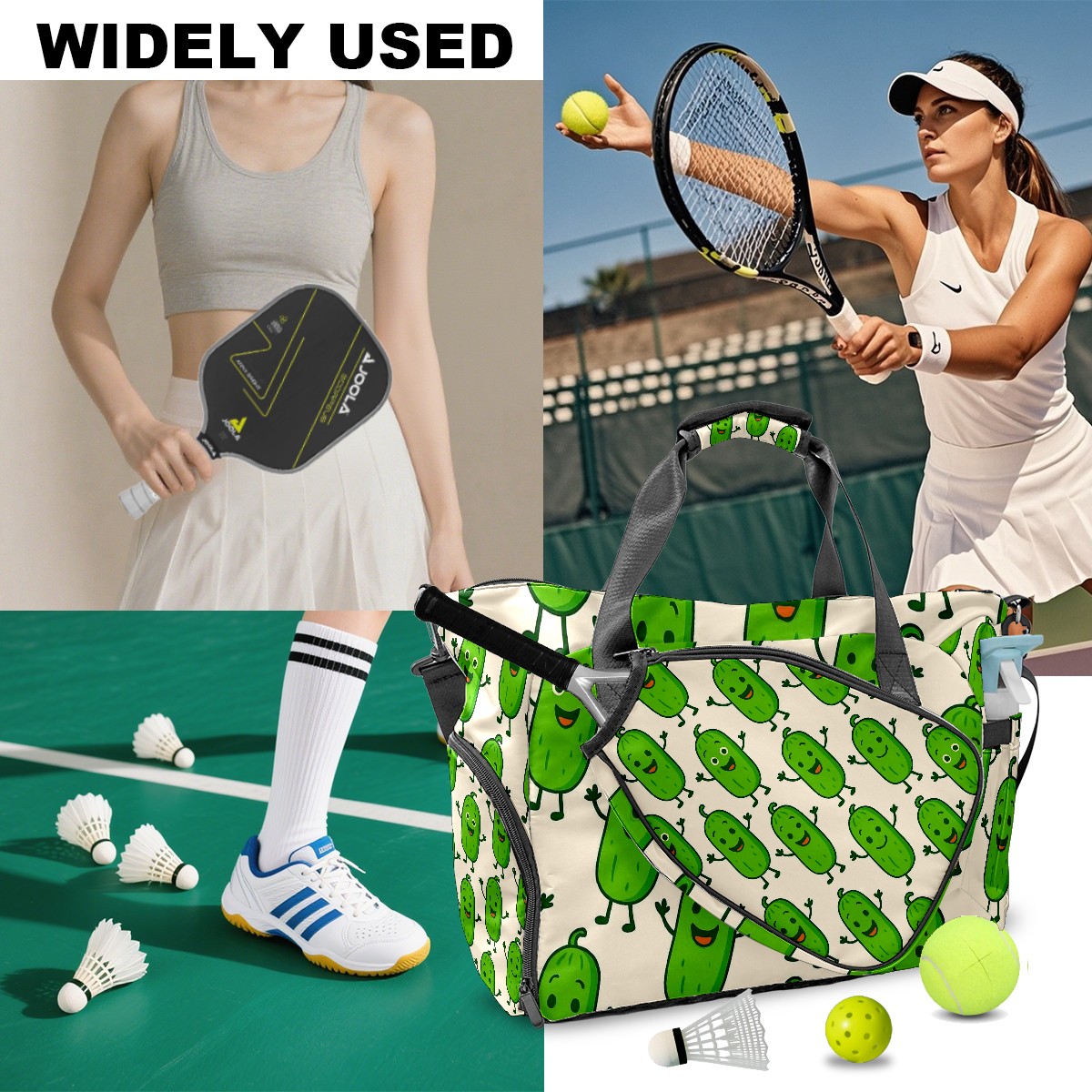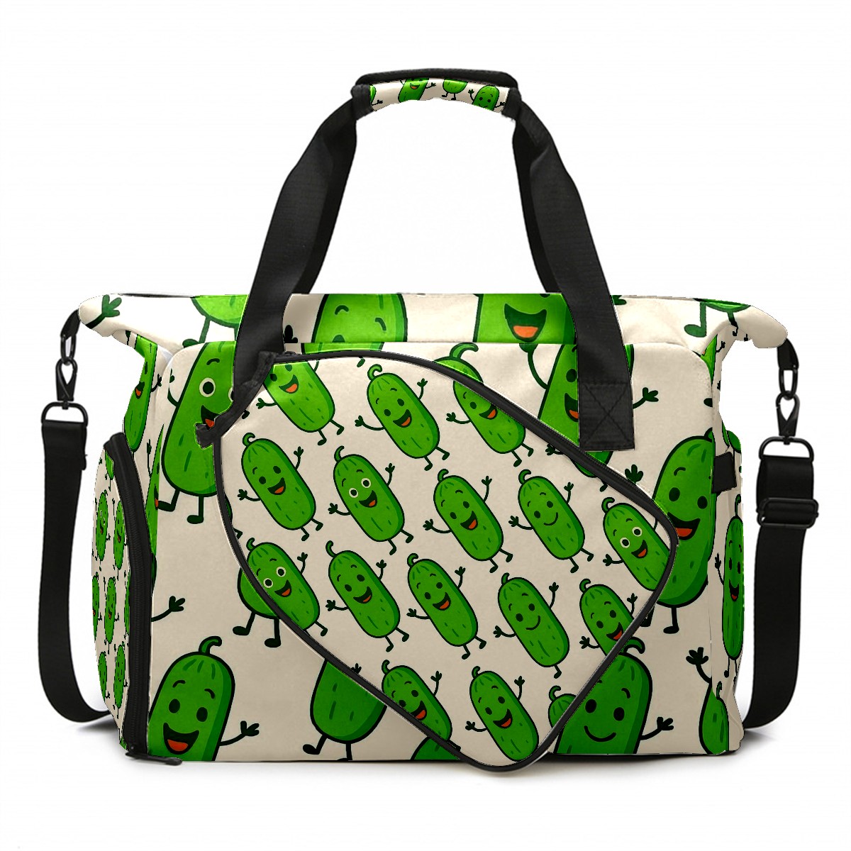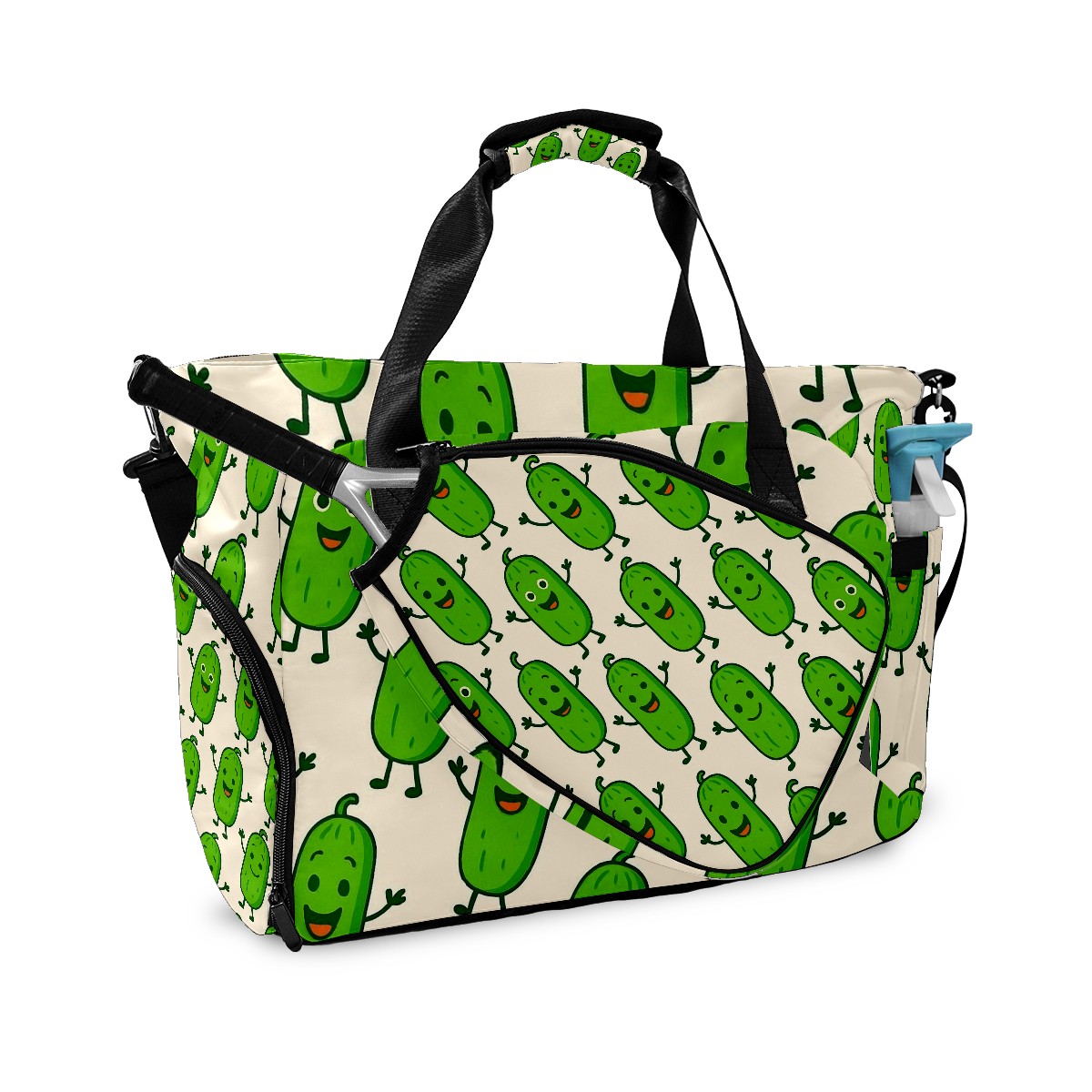 Women's Tennis Bag Large Capacity - Ventilated Shoe Compartment & Waterproof Wet Pocket, Multi-Functional Gym Duffel Bag for Tennis, Yoga, Travel (Playful Cucumber Green)