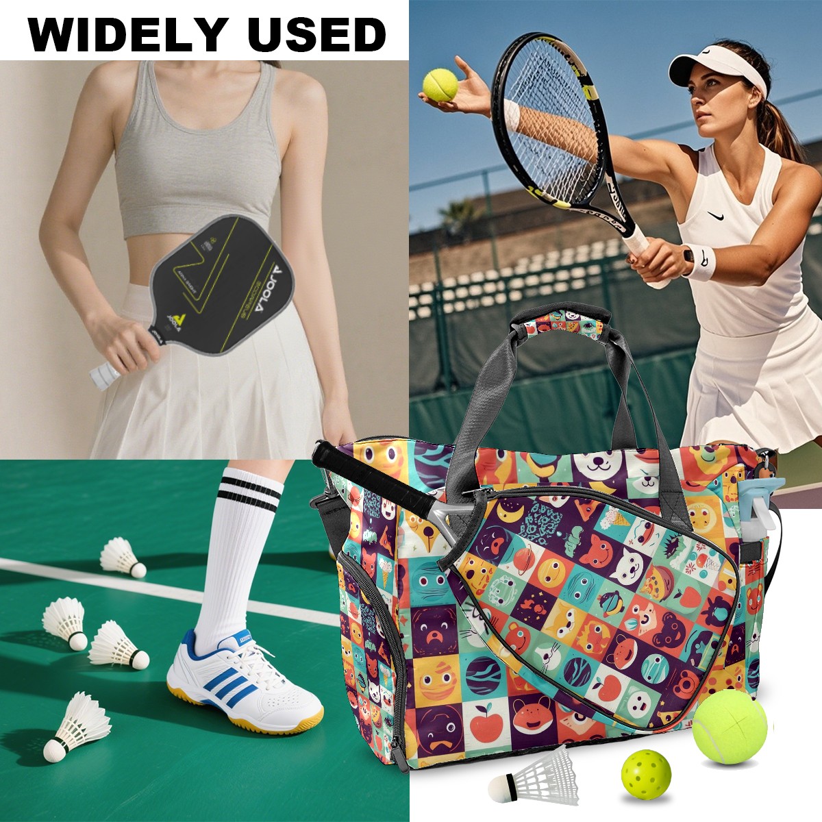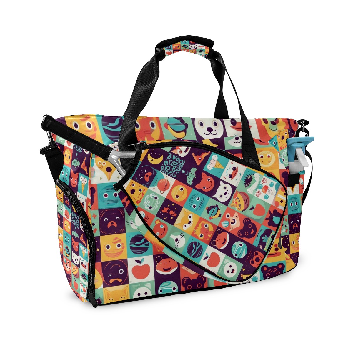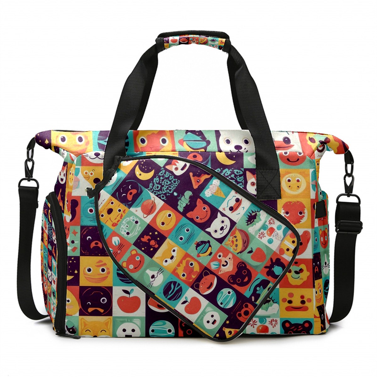 Women's Tennis Bag Large Capacity - Ventilated Shoe Compartment & Waterproof Wet Pocket, Multi-Functional Gym Duffel Bag for Tennis, Yoga, Travel (Colorful Cartoon Multi)