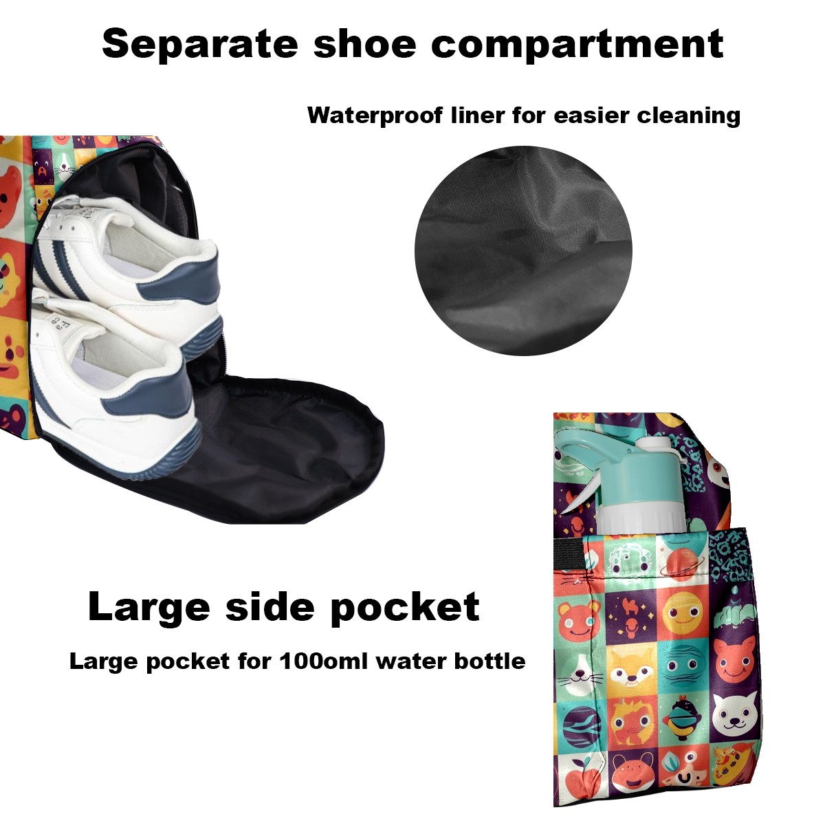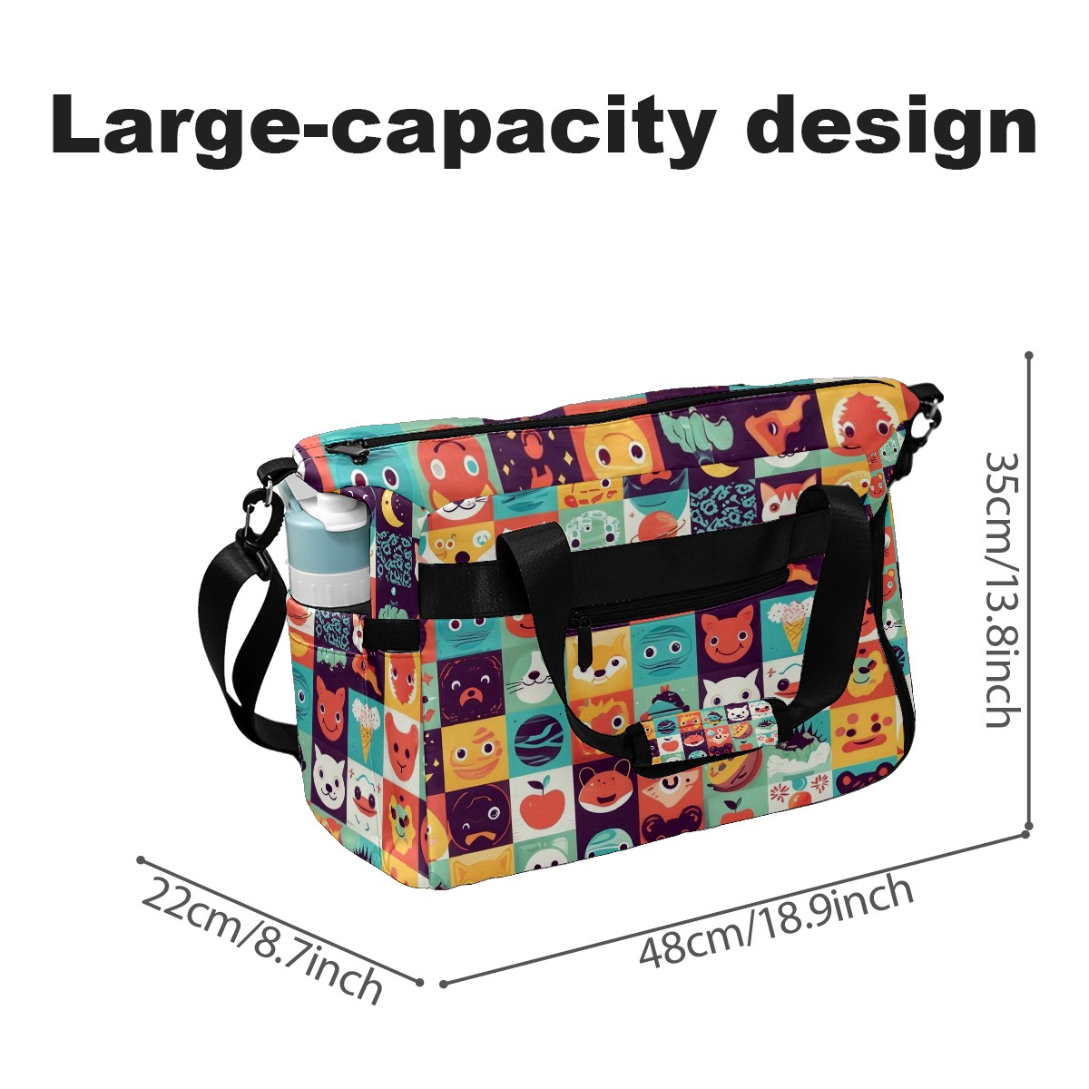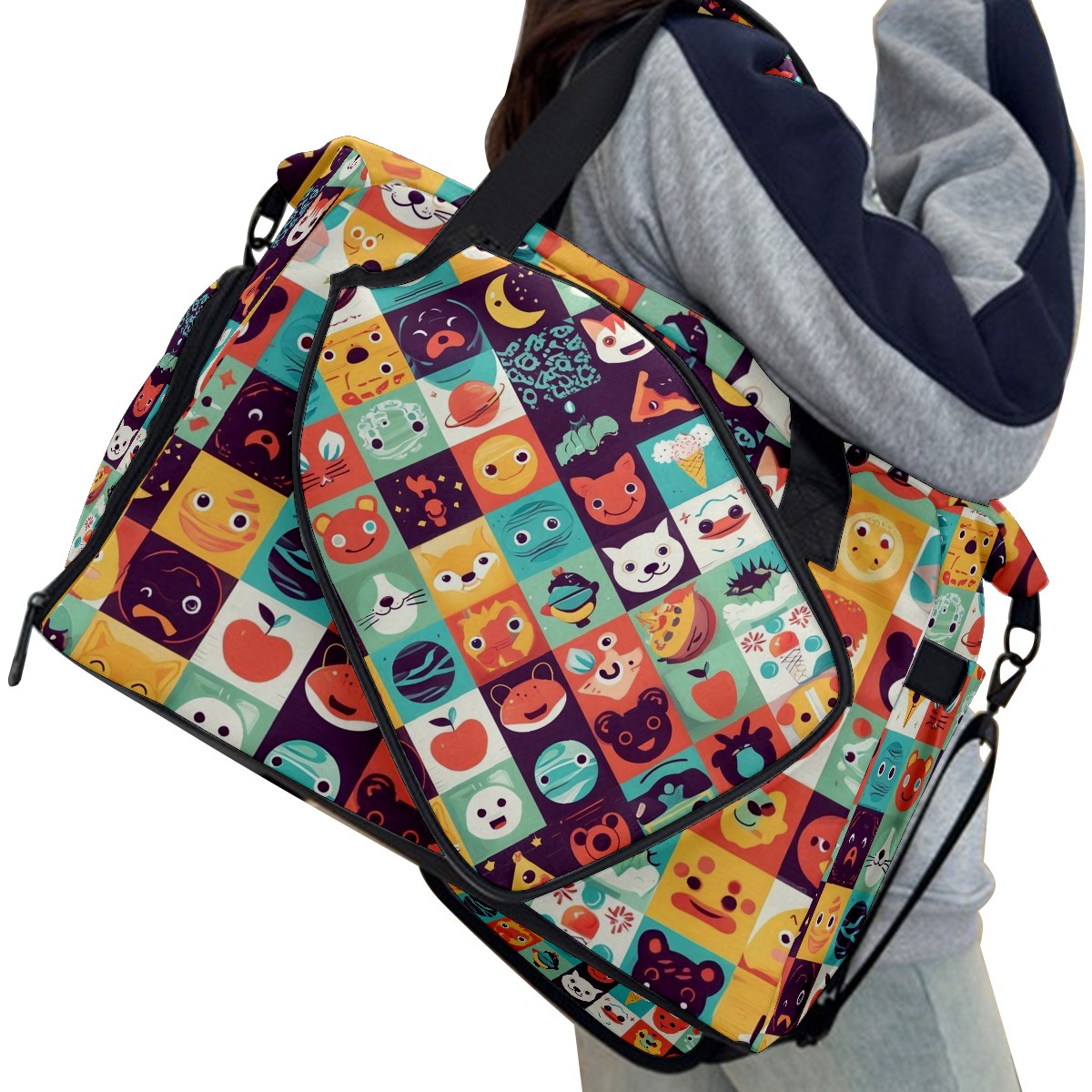 Women's Tennis Bag Large Capacity - Ventilated Shoe Compartment & Waterproof Wet Pocket, Multi-Functional Gym Duffel Bag for Tennis, Yoga, Travel (Colorful Cartoon Multi)