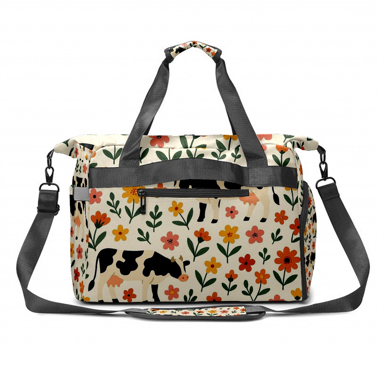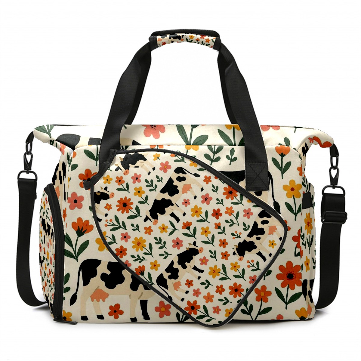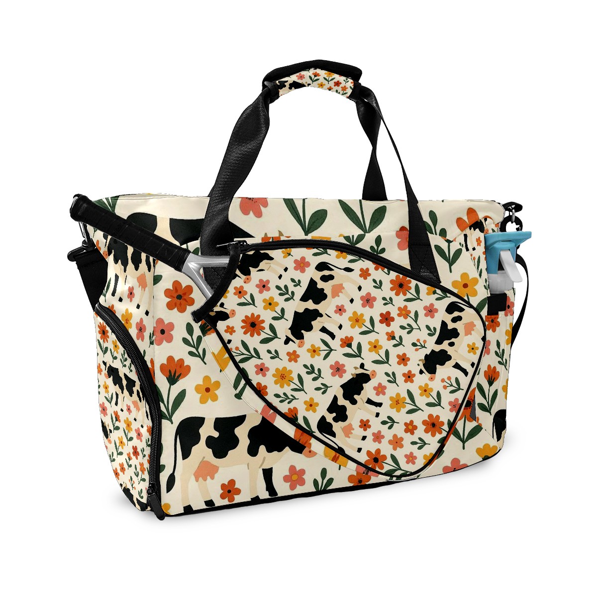 Women's Tennis Bag Large Capacity - Ventilated Shoe Compartment & Waterproof Wet Pocket, Multi-Functional Gym Duffel Bag for Tennis, Yoga, Travel (Warm Flower Cow Beige)